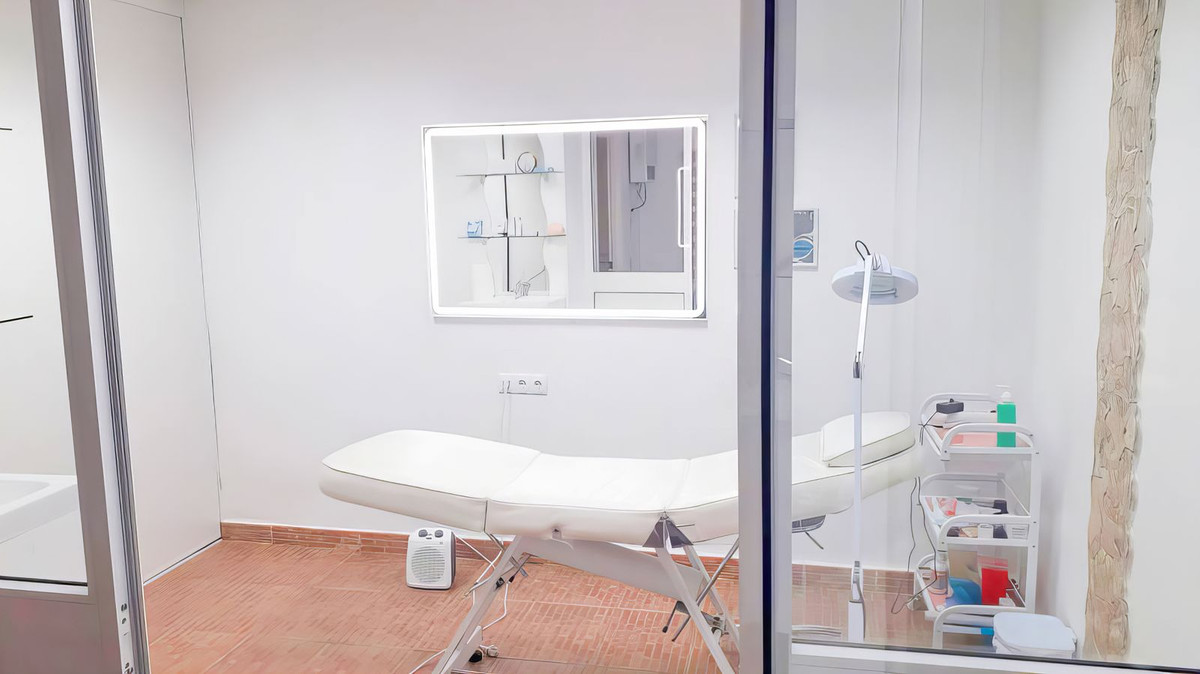 Measures 57m² and includes several different treatment rooms + separate guest toilet.