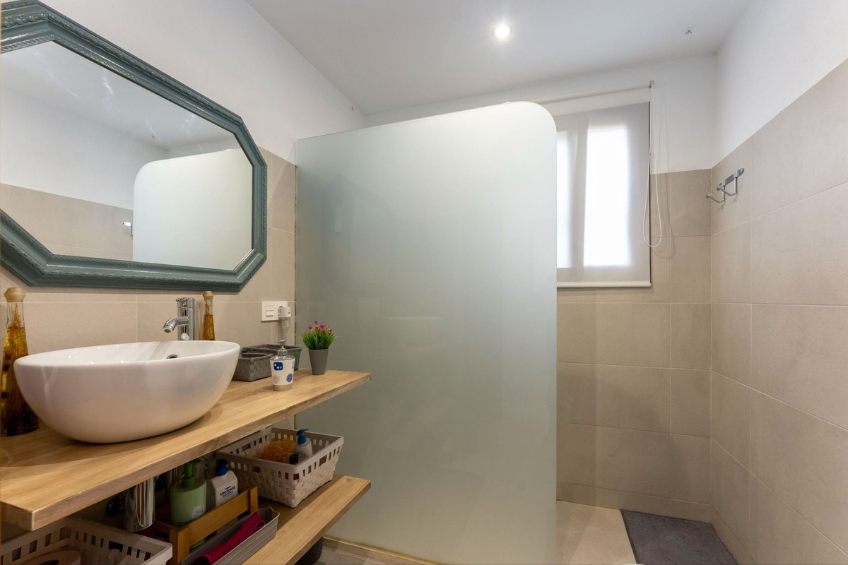 Outside, an inviting L-shaped covered terrace provides shaded areas all year round, creating the perfect space for relaxing or entertaining. This private outdoor area also includes a barbecue and an above-ground pool, ideal for enjoying the warm Andalusian climate.