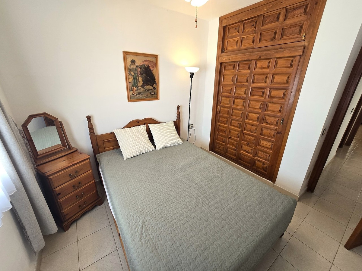 Both bedrooms are light and airy, featuring fitted wardrobes and ceiling fans.