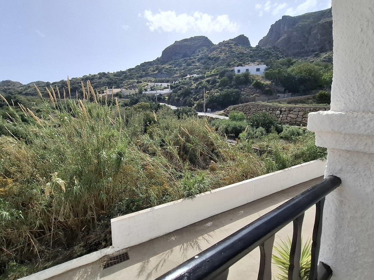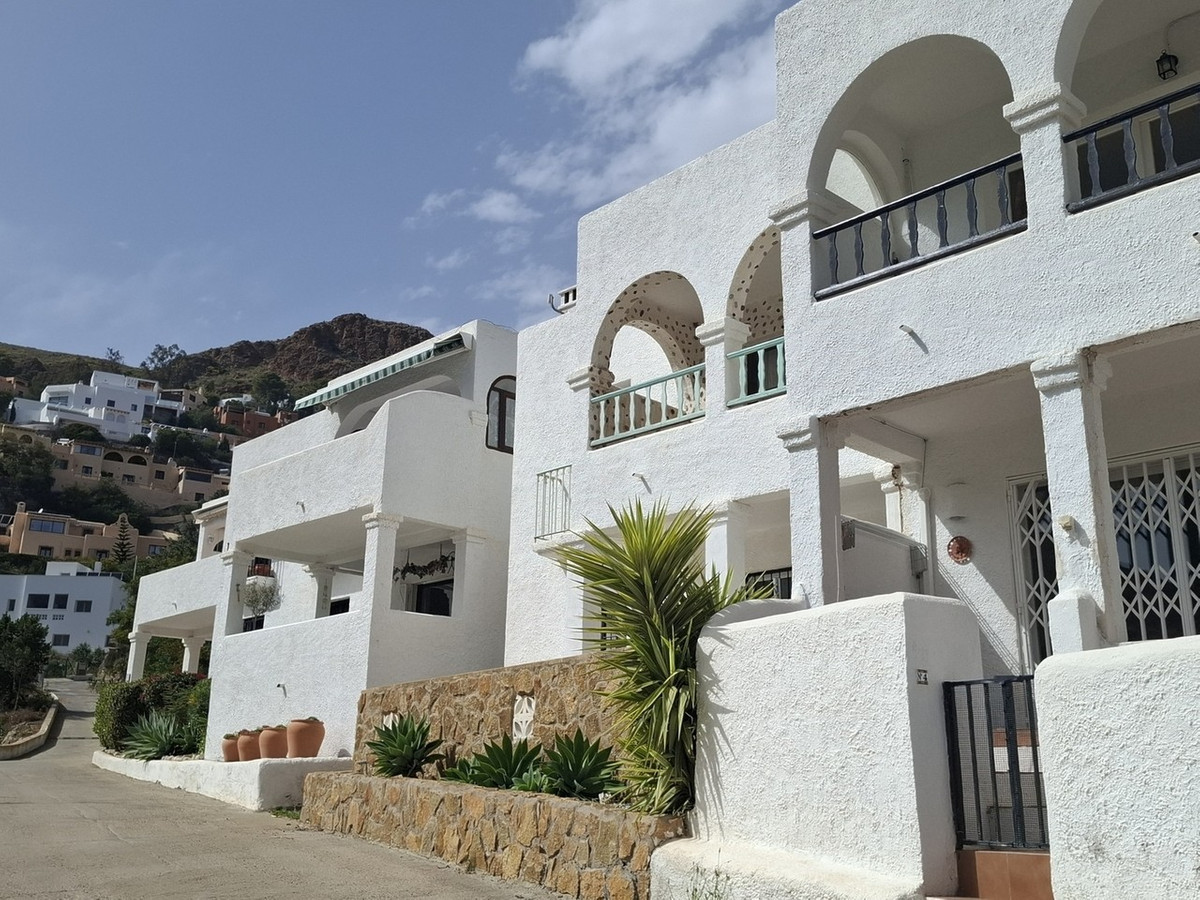 This charming two-bedroom, two-bathroom first-floor apartment is situated in the elevated La Parata area of Mojácar Playa, offering a tranquil setting within a quiet row of properties.
