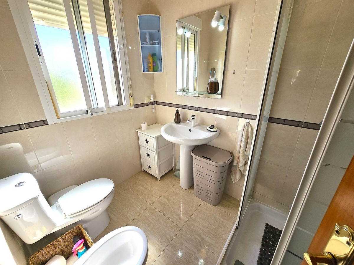 Set on a generous plot of 570 square metres, this attractive three-bedroom, two-bathroom villa is located in the charming village of Cantoria, offering a peaceful lifestyle surrounded by natural beauty. The property enjoys an elevated position above neighbouring homes, allowing for lovely open views across the countryside and towards distant mountains, creating a sense of space and tranquillity.