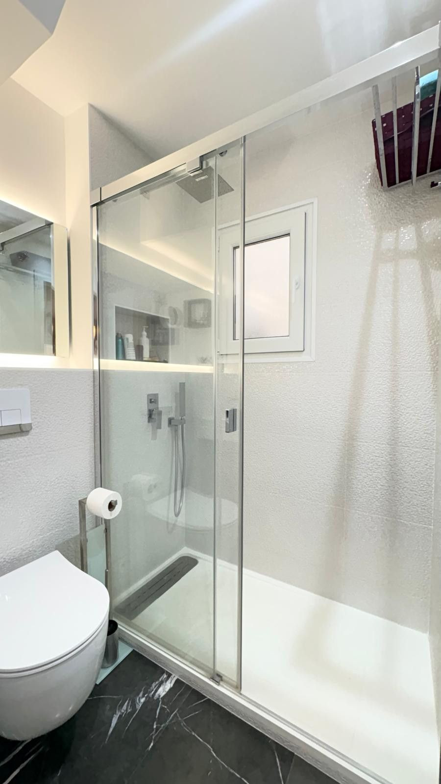 Both the upper and lower terraces have been completely renovated with new sand-coloured tiles, freshly plastered walls and additional electrical outlets — creating beautiful outdoor spaces to relax, dine and enjoy the Mediterranean sun.