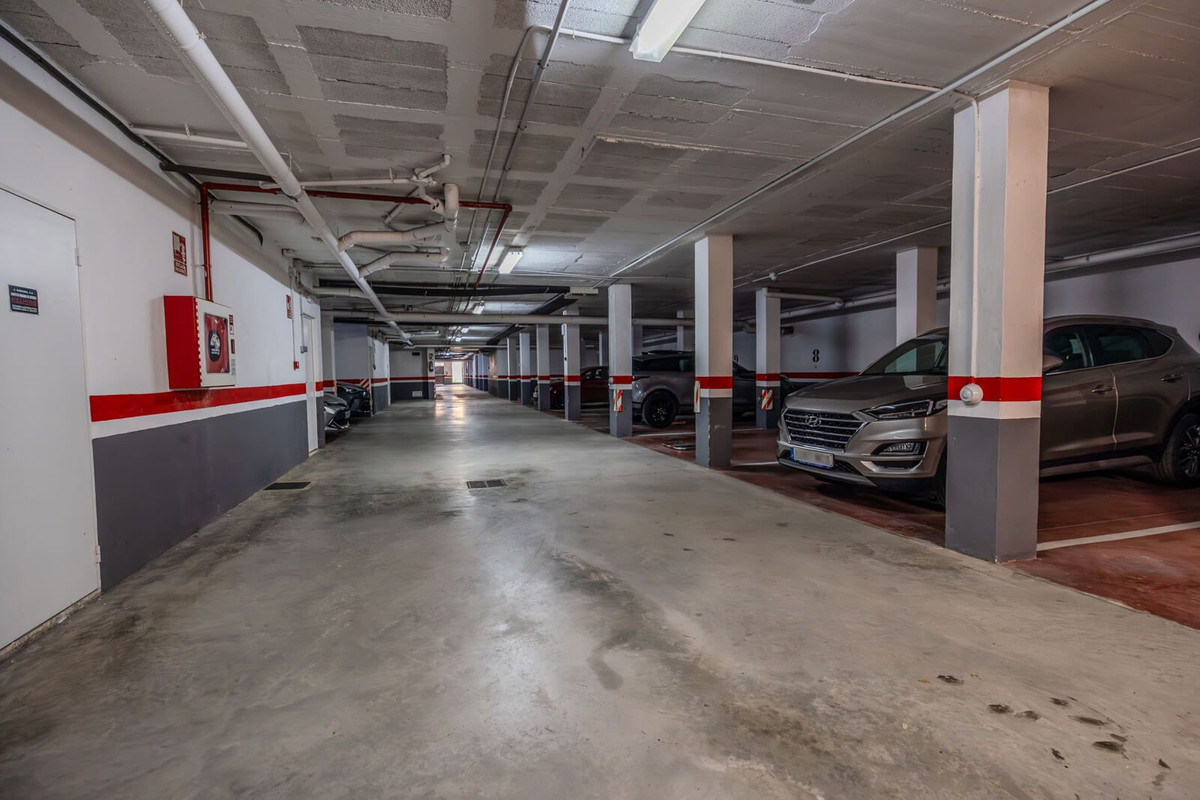 The property has a total size of 100 m² and provides two bedrooms with built-in-wardrobes, hall, living-dining room, 2 bathrooms and an open and fully equipped kitchen, and with underfloor heating in the master bathroom. The apartment has been refreshed including new bathrooms (and new airco).