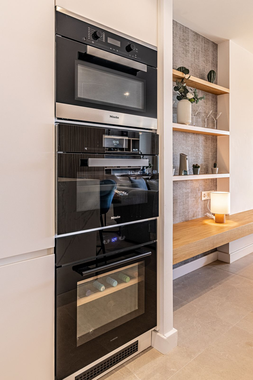 Open plan kitchen, fully equipped with Miele appliances. The comfort & elegancy of the residence has also been assured by the brand-new furniture, tastefully decoration, and the exquisite custom designed woodwork.