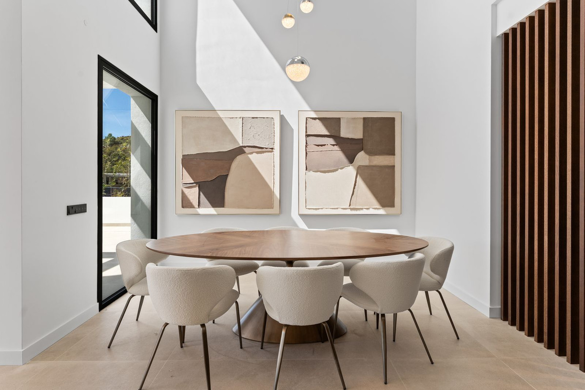 Located in the sought after Buenavista urbanisation, with private access and close proximity to all essential amenities, the villa enjoys a privileged position between the sea and the mountains. This unique setting offers a rare combination of peaceful living and easy access to leisure, services and the coastline. The design maximises light and openness, with high ceilings that enhance the sense of space and continuity throughout the interiors.