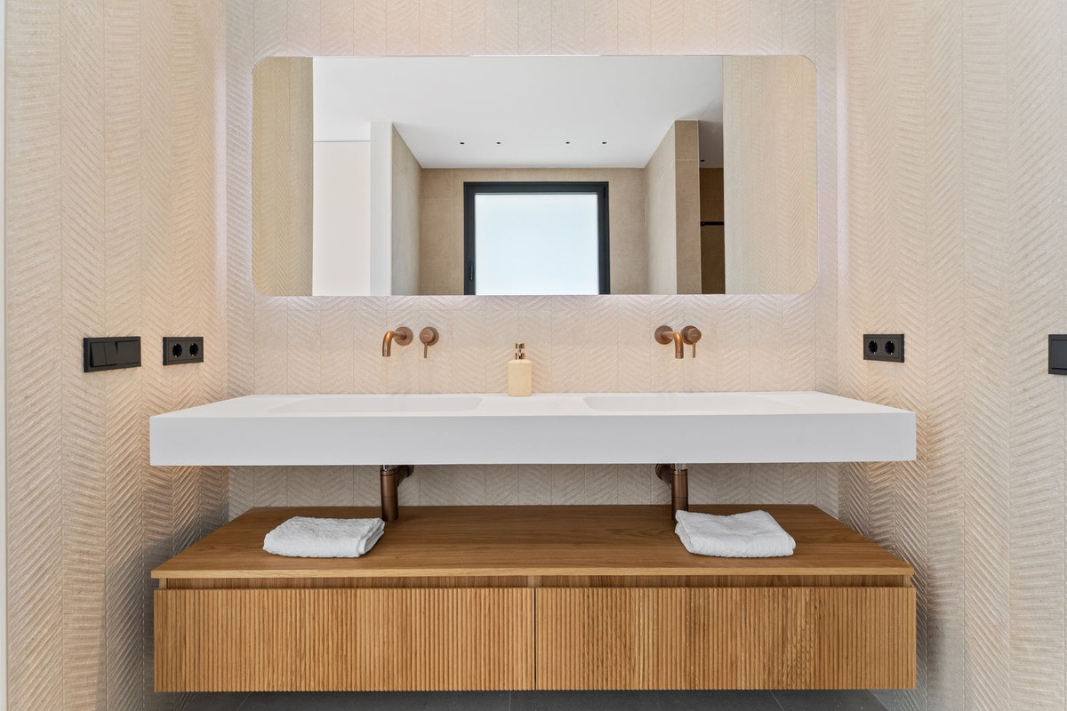 Comfort is a key feature of the villa, with water based underfloor heating installed throughout all rooms, alongside a fully integrated air conditioning system with Airzone control for precise climate management. Hot water is produced via an efficient aerothermal system. The property also includes a basic home automation system for lighting control, as well as LED lighting installed throughout, enhancing both efficiency and ambience.