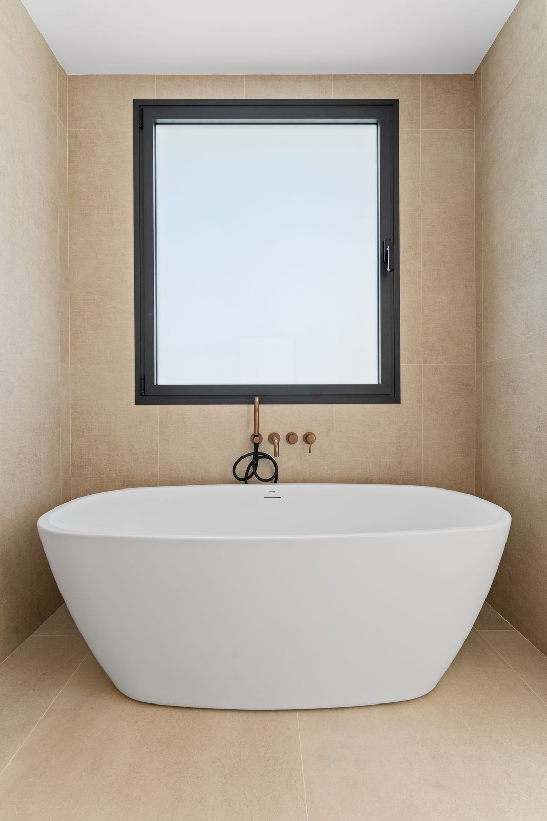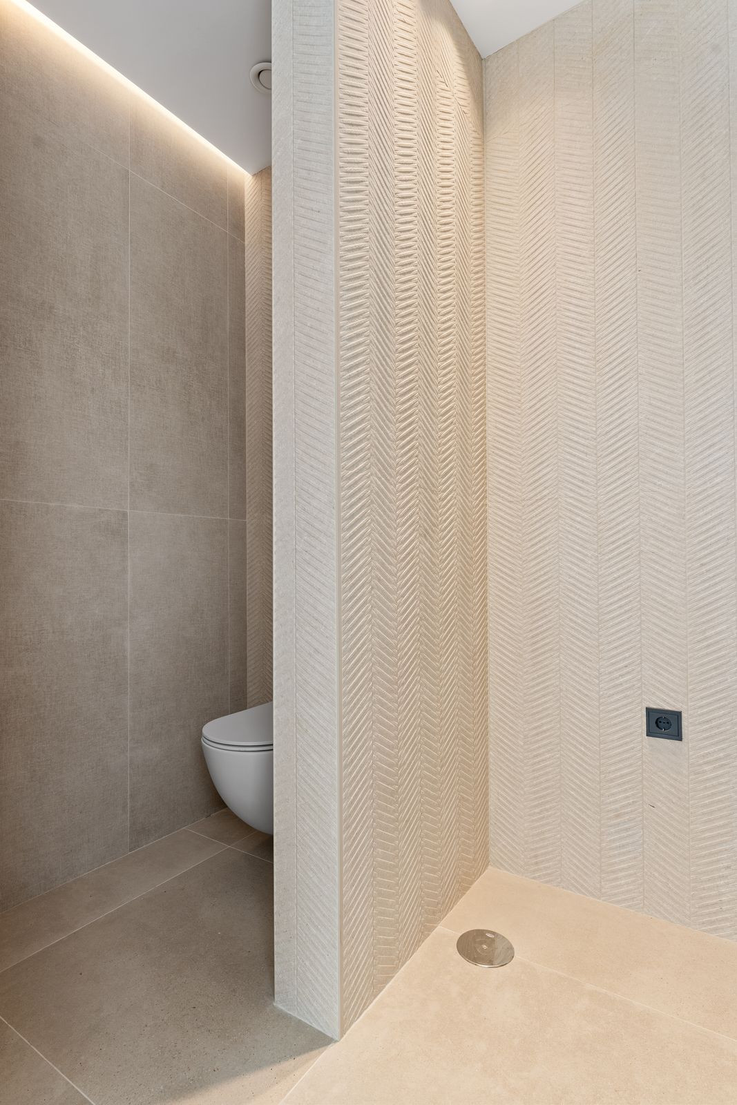 Every element of the construction has been selected with a focus on quality, durability and aesthetics. The kitchen is fitted by Porcelanosa, complemented by porcelain flooring and wall tiling from the same prestigious brand, creating a cohesive and elegant finish throughout the property. Aluminium window systems by Strugal incorporate thermal break technology, double security glazing, solar control and low emissivity glass, ensuring excellent insulation, energy efficiency and security.