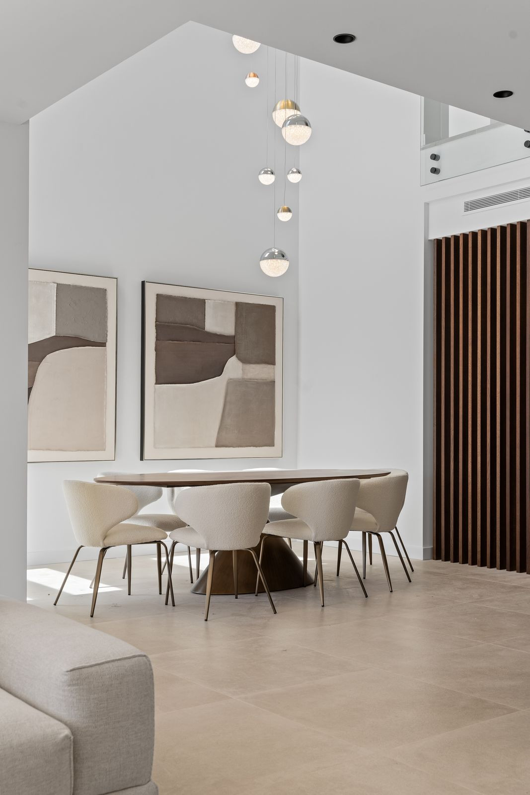 The main living areas flow effortlessly towards the outdoor spaces, where a striking infinity pool becomes a central feature, creating a natural visual connection with the surrounding landscape. The generous basement level provides a versatile area that can be adapted to suit individual lifestyles, whether as an entertainment space, gym, cinema room or additional living area, offering complete flexibility to personalise the home.