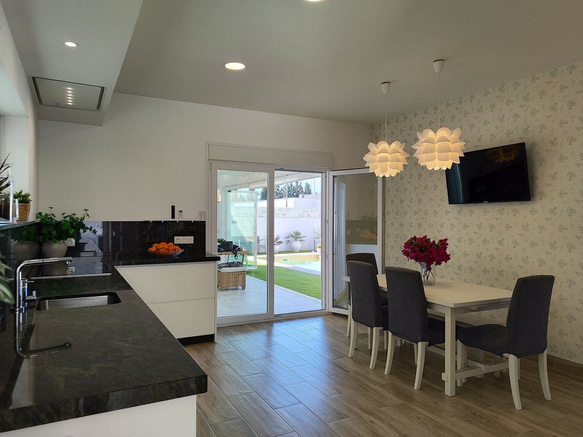 — Direct connection between the living room, kitchen, and outdoor pool area