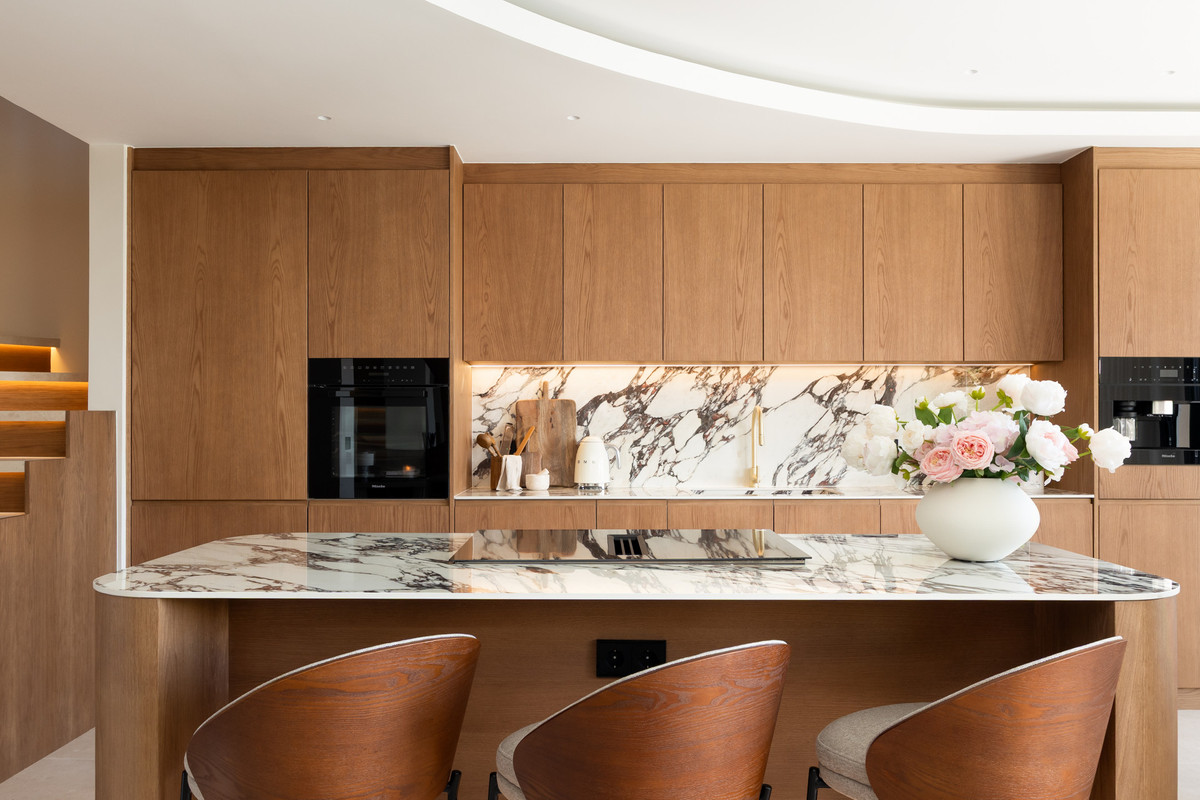 The interiors immediately impress with elegant herringbone wooden floors by renowned Norwegian brand BOEN, complemented throughout by Gunni ceramic tiles that flow seamlessly from indoors to out. Bespoke, custom-made carpentry has been thoughtfully integrated across the entire property, adding a sense of craftsmanship and individuality rarely found at this level.