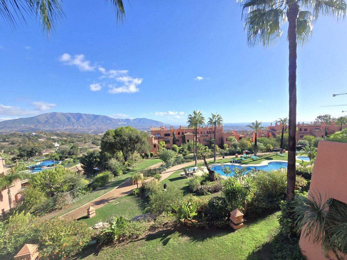 Spacious 2-bedroom first-floor apartment overlooking one of the swimming pools, with superb sea and mountain views, set within a luxury golf complex in the exclusive La Mairena area on the hills of Elviria—an area of outstanding natural beauty protected by UNESCO. The apartment offers very good-sized accommodation, which is ideal for family home, luxury holiday getaway or buy2let investment (holiday rental is permitted in the complex). The bright and spacious living room opens onto a large parrtly covered terrace, with sea views,and also views of the snow-capped Sierra Nevada mountains. The property also features a fully equipped semi open kitchen an adjacent utility room, and two large bedrooms with large fitted wardrobes. The master bedroom benefits from an en-suite luxury bathroom with a whirlpool bath and walk-in shower.The community includes extensive tropical gardens with 6 swimming pools (one of which is heated) and there is also tennis, paddle, gym, Spa and a private 9 hole golf course completely free for residents. Agreeable bar & restaurant in the on-site clubhouse. Private garage parking space and a storeroom. Brand new hot and cold air conditioning with airzone system , luxury cream marble floors and marble bathrooms, electric blinds, Mosquitos net.and "intelligent" house system… Must be seen!!!