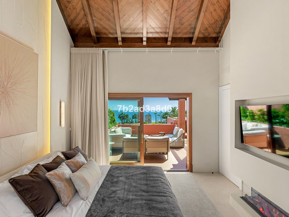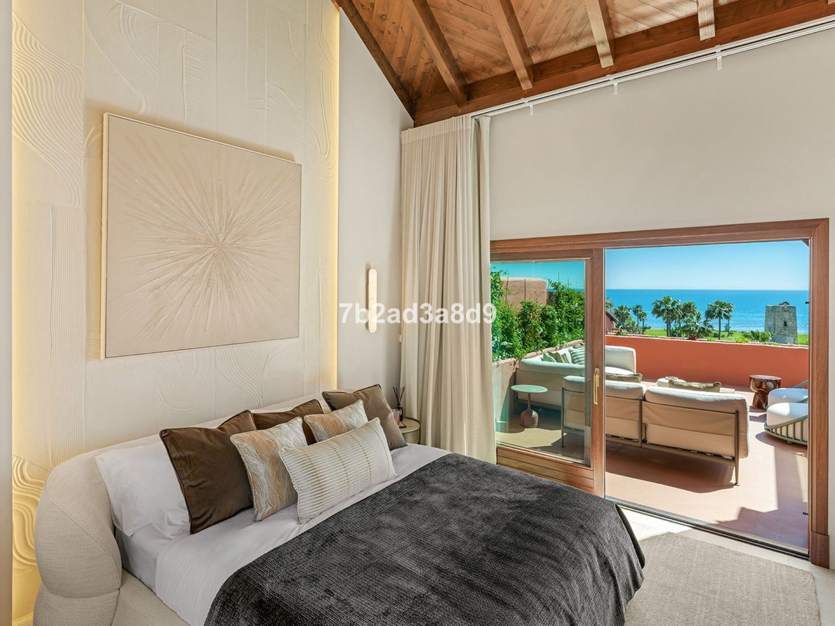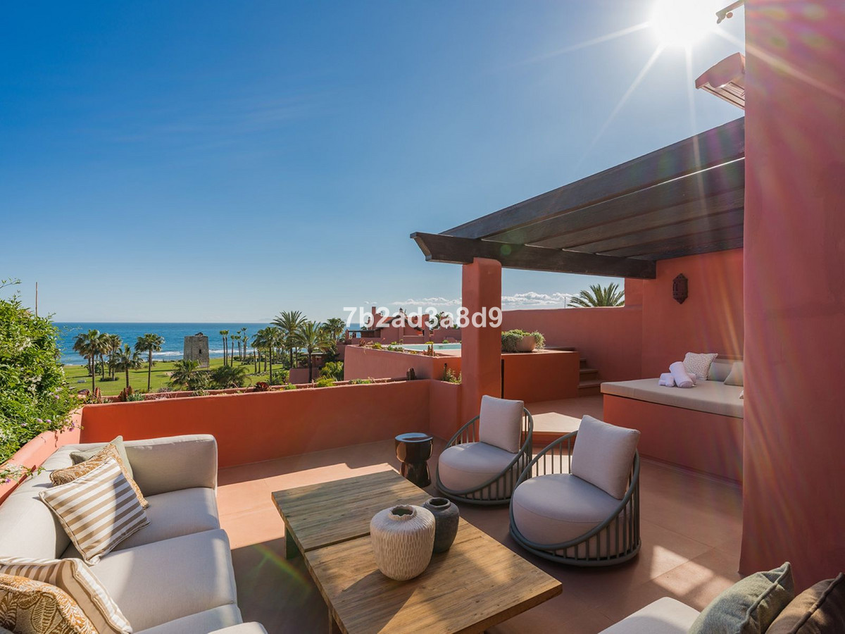 Located within the prestigious beachfront enclave of Torre Bermeja on Estepona's coveted New Golden Mile, this remarkable duplex penthouse seamlessly fuses timeless Andalusian architecture with elevated contemporary design. A rare opportunity to own a luxury home in one of the Costa del Sol's most desirable gated communities, this property is a masterclass in understated elegance and modern comfort.