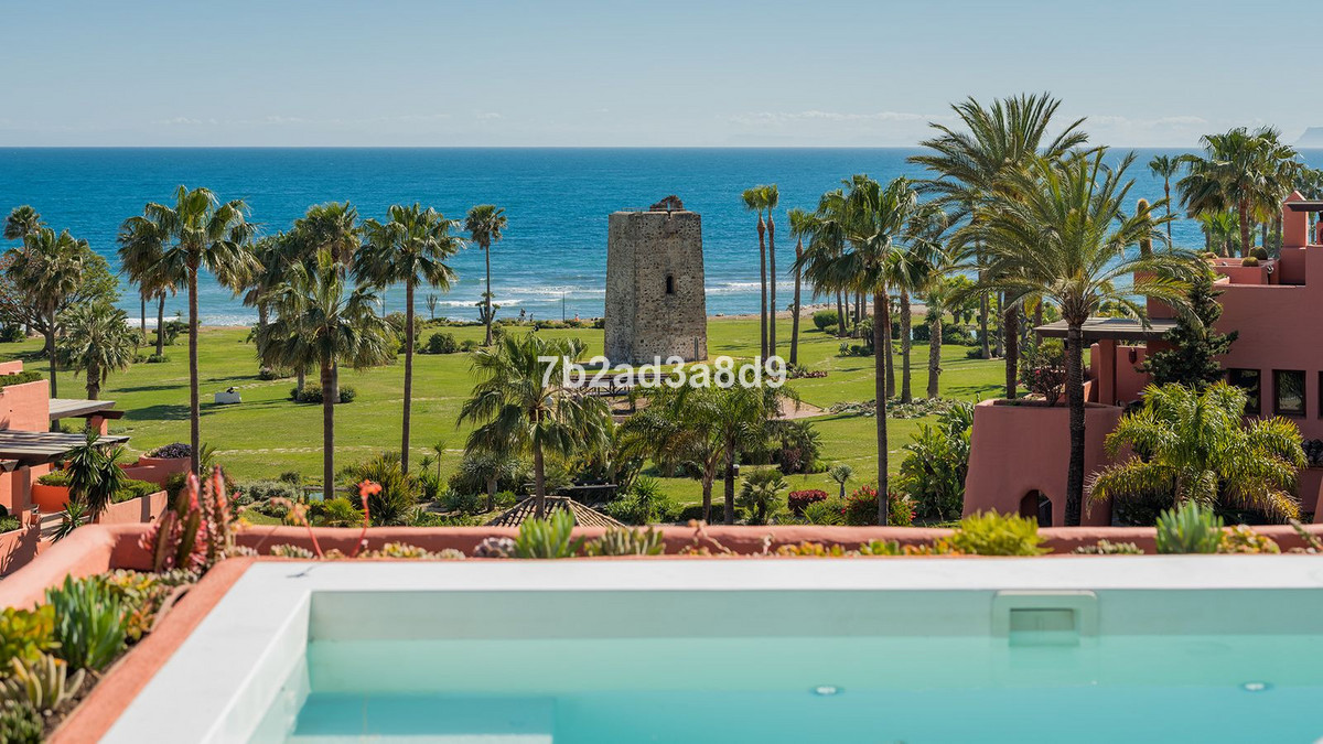 Torre Bermeja is renowned for its 24-hour security, lush tropical gardens, indoor and outdoor swimming pools, gym, and direct access to the promenade and sandy beach beyond. Just minutes from Puerto Banús, Estepona, and Marbella's Golden Mile, the location offers easy access to fine dining, elite international schools, boutique shopping, and vibrant nightlife.