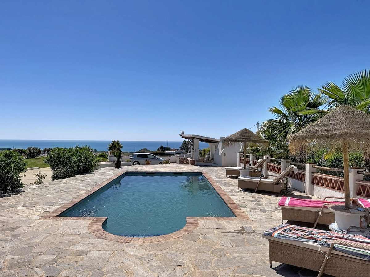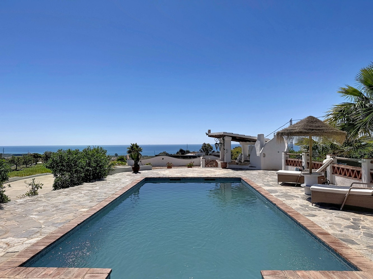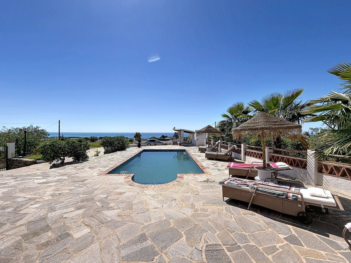 Beautiful villa for sale in Almayate, ideal for those looking for comfort, spaciousness and privileged views of the sea. The property has a main house, where we find a spacious and bright living-dining room with an open plan kitchen, creating a modern and functional space. It has 3 bedrooms, one of them with an en-suite bathroom, as well as another bathroom. In addition, the villa includes a separate apartment, perfect for guests or as a rental option, which has a living-dining room with kitchenette, a bedroom and a full bathroom. Outside, the property offers a large garden with several chill out areas, a private pool, barbecue area and part of a covered terrace, ideal for enjoying the good weather all year round. The house enjoys stunning sea views, providing added value and creating a unique and relaxing environment. A property with a lot of charm and great potential, perfect as a permanent home, holiday home or investment. We are delighted to be able to present this property to you soon, either personally or via virtual viewing. Because this world is unique - like our Axarquía. In Andalusia. On the Costa del Sol. Here, on the sunny side of life...