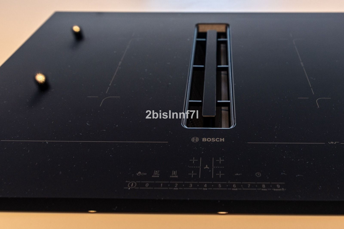 The apartment features an elegant open-plan kitchen fitted with high-end appliances from Bosch, an integrated extractor hob, and a wine cooler. The living area is cleverly designed on two levels, subtly separating the lounge and dining areas and adding character and depth to the space.