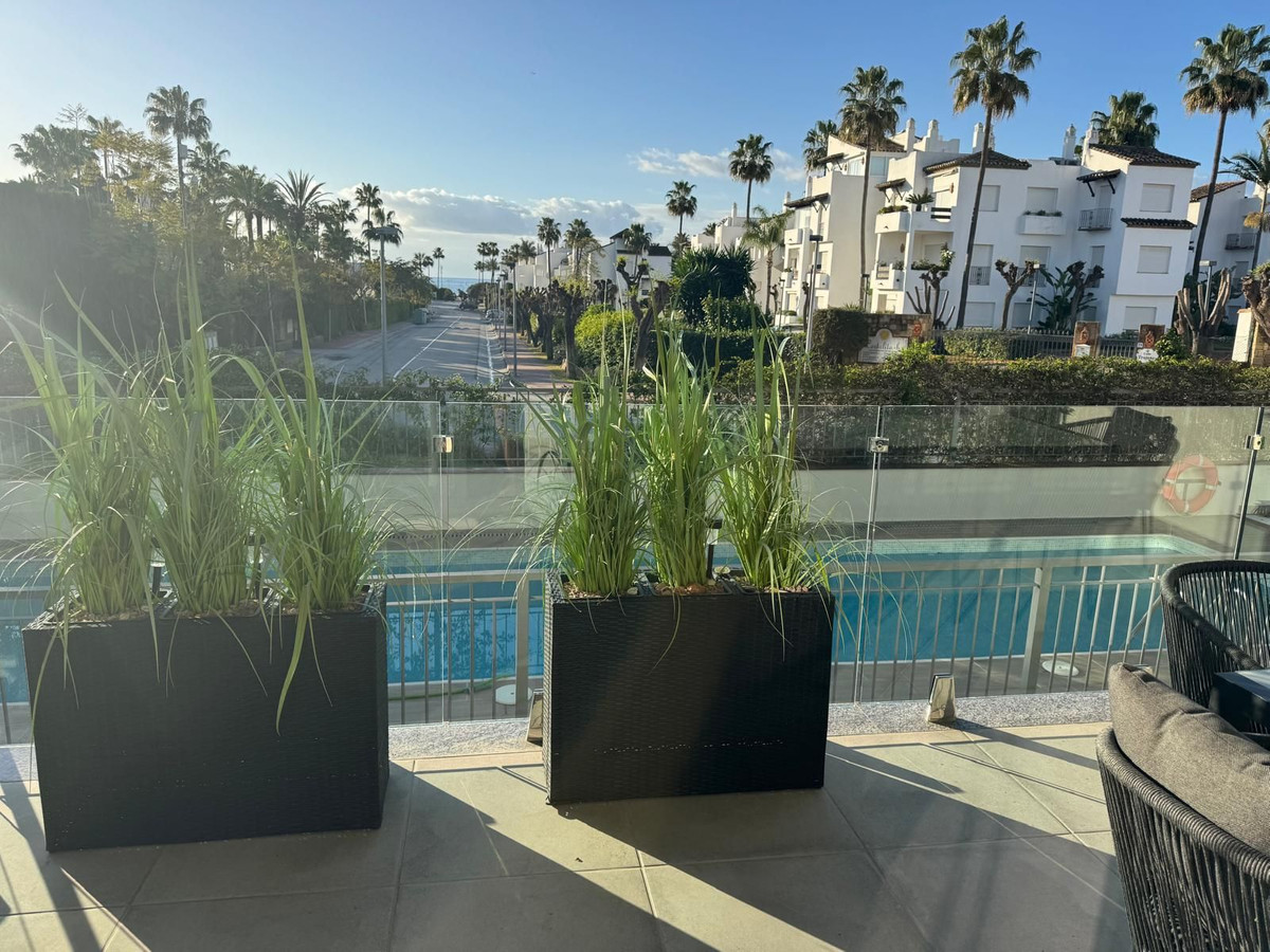 Two-bedroom apartment, fully furnished and equipped in a modern style, with furniture, appliances, and electronics. It's 250 meters from the sea and the promenade stretching all the way to Estepona. The modern building offers proximity to restaurants, a school, paddle tennis courts, Mercadona, and Lidl, all within a 300-500-meter radius. The nearest golf course, with a practice base and a driving range equipped with Trackman, is 6 km away - Atalaya Old and New Courses. A garage space with electric car charging and a storage unit is available. An outdoor swimming pool with sun loungers and a separate entrance is available. The only new, unique building in this area offers sea views, and all furniture, appliances, and accessories are included in the price. Intelligently controlled LED lighting, custom-made units, and completely updated bedroom and living room decor compared to the original build. The wardrobes, cabinets, and kitchen units have been modernized. A great base for exploring all the area's golf courses and attractions. Quiet and peaceful neighborhood