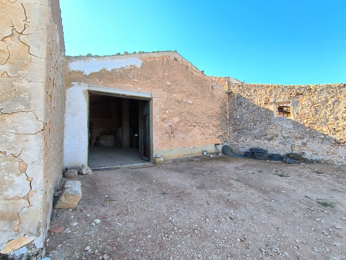 Attached country house with authentic rustic spirit, surprisingly spacious on the inside, offering approximately 125 years of history. Solid, thick stone walls and a sound roof provide a reliable structure. Traditional features include exposed wooden beams, stone pillars, and a large fireplace, creating a warm and characterful atmosphere. The property comprises a two-floor living unit, a patio with storage and a water deposit, rooms for animals, and a large garage, offering plenty of potential for various uses.The house is not currently habitable and requires renovation, presenting an opportunity to design and restore a unique countryside home while preserving its original charm. The walls remain structurally sound.The property also includes land, just a few metres from the house: olives grove of 1500 m2 with century old trees in full production, and a garden with fruit trees of 1200 m2, perfect for enjoying outdoor living and a self-sufficient lifestyle. Convenient access via a tarmac road ensures easy year-round reach.Located just 10 km, 10 minutes from town, in a peaceful and tranquil countryside setting with open surroundings. Contact us for a commented walkthrough video.We offer more lands in the same area, and also the adjacent country house. Contact us for more info!About the area: Yecla is a charming and historic town of app. 35000 inhabitants, located in the region of Murcia. It is renowned for its award-winning wines, historical landmarks, and vibrant local culture. The surrounding natural landscapes of scenic mountains, vineyards and almond groves provide opportunities for outdoor activities, while the town itself offers all necessary services, including hospital, schools, shops, restaurants, and other services. With a friendly local community, lively markets, excellent gastronomy, and easy access to nature, Yecla is an ideal location for those seeking authentic Spanish lifestyle - just about an hour from the coast and Alicante airport.About us: We have a large portfolio of properties in the Costa Blanca and Costa Calida areas, specialising in country properties, villas, fincas, building plots and design and build options in the Alicante and Murcia regions with a particular emphasis on Yecla, Novelda, Elda, Monovar, Pinoso, Sax, Villena, Aspe, Fortuna, Jumilla, Abanilla, and many more surrounding areas. We have been established since 2004 and have decades of experience between the team which we bring to bear to help you find and secure your new dream home. We help you every step of the way to make sure your purchase in Spain is safe and hassle free. We are not here to sell you a property, we are here to help you realise your dream and find what is right for you. With us you are in the safest hands. Contact us now to have a no obligation chat about how you too can realise your dreams.