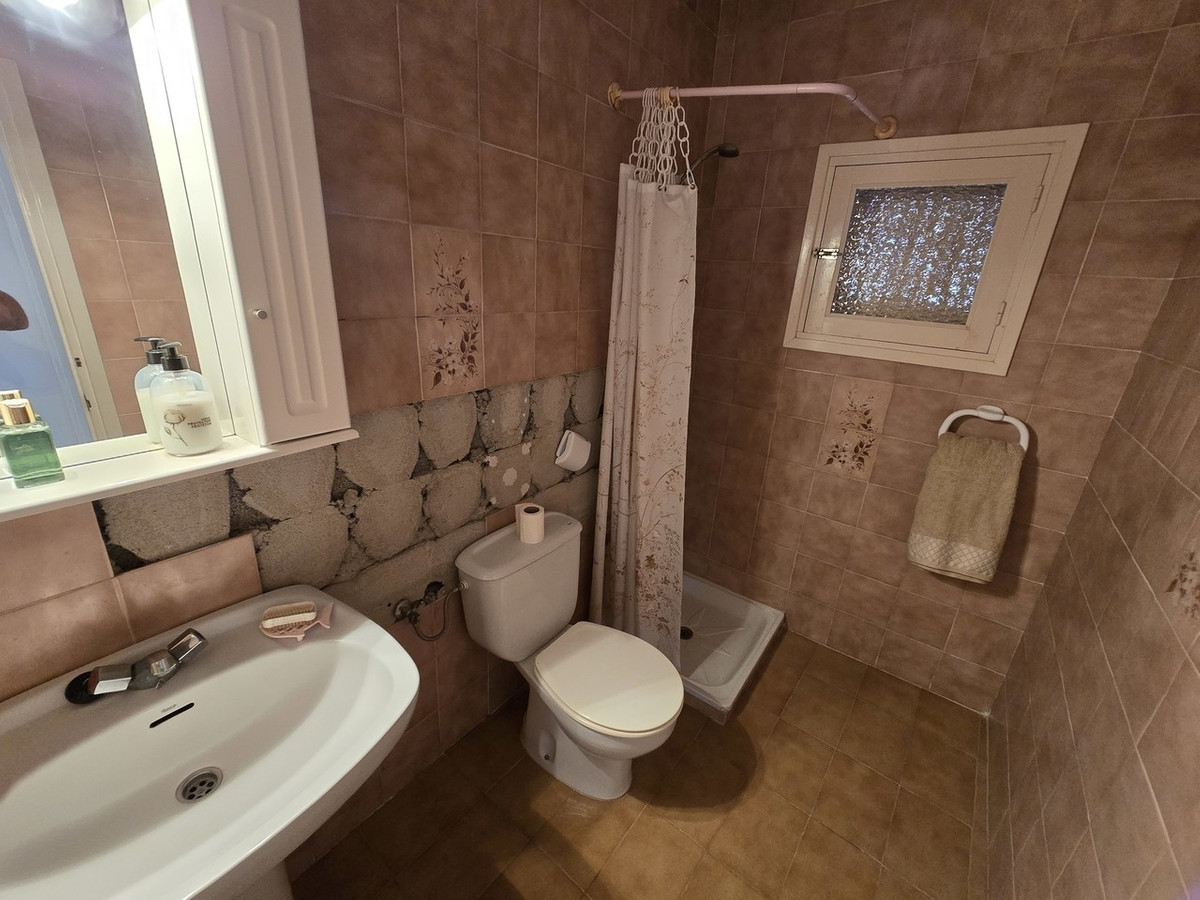 Upstairs, the property continues to impress with two further bedrooms. One is another twin room, also equipped with built-in wardrobes, making it ideal for guests or family members. The main bedroom is a generous double, offering direct access to a private balcony. This outdoor space comfortably accommodates a table and chairs, making it an ideal place to enjoy morning coffee or evening sunsets. From here, the views are particularly attractive, stretching from the sparkling sea across to the surrounding mountains.