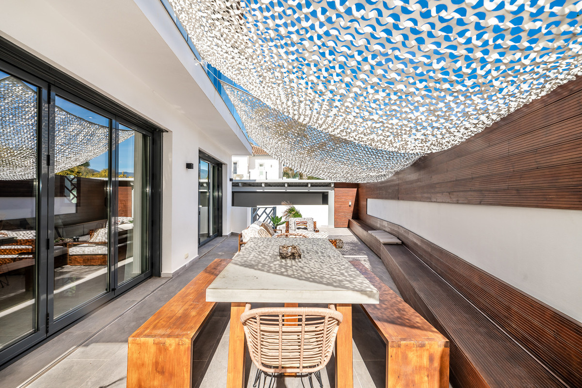 The main features of Villa Banús can be found on the exteriors. From the chill-out areas to the outdoor kitchen, you will spend quality time in the exteriors of this property. The private swimming pool and sunbeds. In front of the pool, there's a chiringuito area equipped with a barbeque, TV and WiFi. Next to the chiringuito, there's a large jacuzzi. The villa comes with private parking for 2-3 cars.