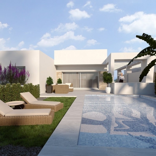 NEW BUILD RESIDENTIAL COMPLEX IN ALGORFA New Build residential complex of independent or semi-detached villas and apartments with amazing communal pool and green areas in La Finca Golf course, Algorfa. New Build semi-detached villas with 3 bedrooms, 2 bathrooms, a spacious lounge area with patio doors leading out into the garden, off road parking, an open plan fitted kitchen with dining area. Each property comes complete with private swimming pool. Residential complex located in La Finca Golf resort, in the municipality of Algorfa, in the Vega Baja area of the Costa Blanca South. Only 15 minutes drive from the sandy beaches of Guardamar del Segura, and only 35 minutes from Alicante airport. The larger towns of Almoradi, Benijófar and Ciudad Quesada are a short drive away. Torrevieja and Orihuela Costa, with their large shopping centres, are 15 minutes away.