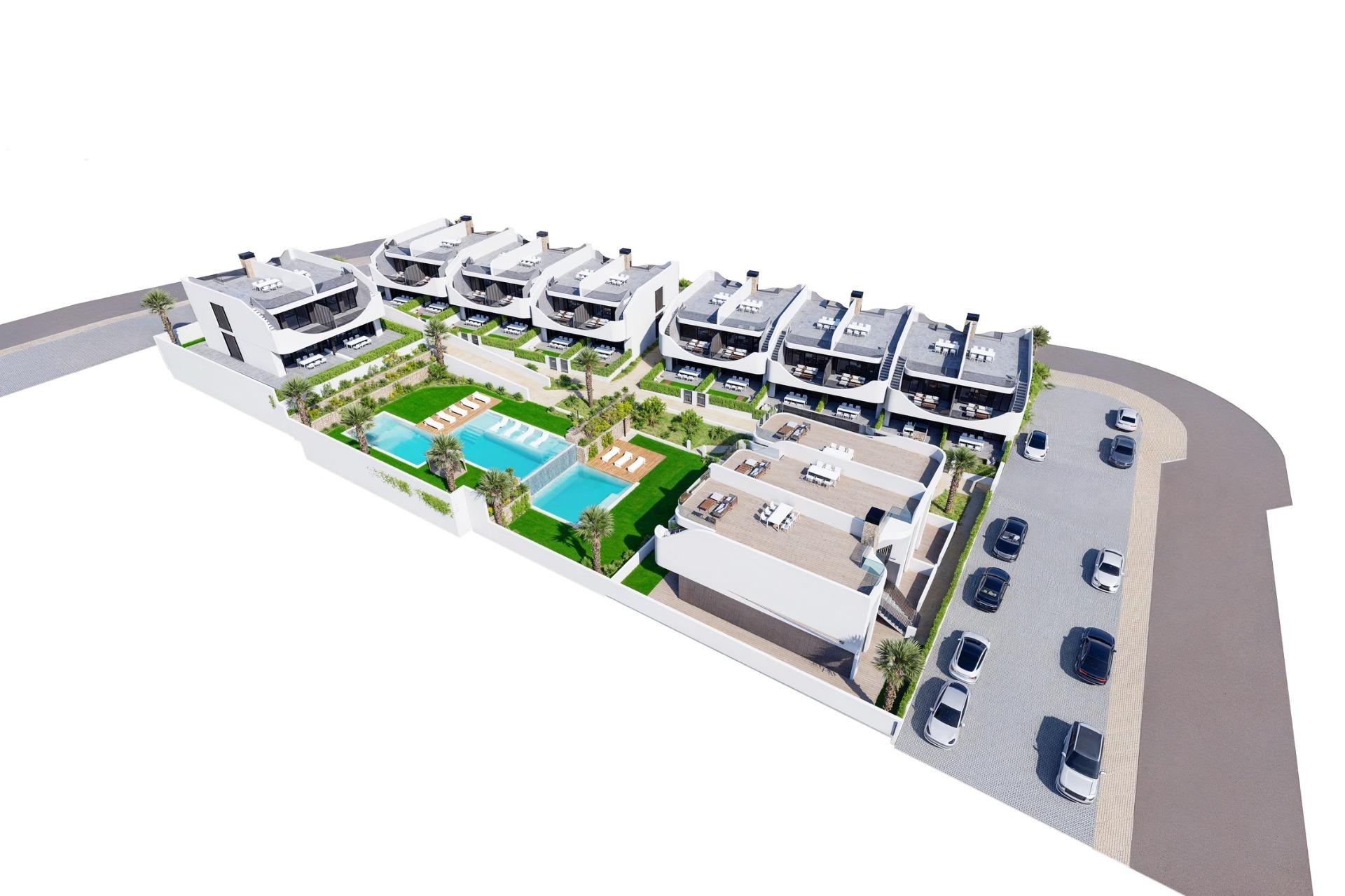 Bungalows of New Construction in San Miguel de Salinas - Nature, Golf and Comfort Privileged Location in a Natural Environment This exclusive residential of newly built bungalows is located less than 3 km from San Miguel de Salinas, in a quiet area surrounded by nature and with impressive unobstructed views. Its excellent location allows you to enjoy the tranquillity without renouncing to the proximity of all the services. Just 7 km away are the beaches of Orihuela Costa and the city of Torrevieja, where you can enjoy a wide range of leisure, gastronomy and shops. Modern Design and Unobstructed Views The properties are designed in a modern style and have high quality interior and exterior finishes. You can choose between: Ground floors with private garden, ideal for those looking to enjoy the outdoors. Top floors with private solarium, perfect for sunbathing and relaxing with panoramic views. In addition, all homes include allocated parking space. Communal Areas for Maximum Comfort The development offers a beautiful communal swimming pool, surrounded by green areas, perfect for enjoying the Mediterranean climate. The natural environment encourages a healthy lifestyle, away from stress and pollution, in an enclave that resembles a true paradise. Proximity to the Best Golf Courses San Miguel de Salinas is an ideal destination for golf lovers. Less than 4 km away are three of the most prestigious courses on the Costa Blanca: Villamartin Golf - 3.5 km. Las Colinas Golf & Country Club - 4 km. Campoamor Golf - 4 km. Connected to the Main Points of Interest This residential is in a strategic location with easy access to: San Miguel de Salinas - 3 km. Orihuela Costa Beaches - 7 km. Torrevieja - 7 km. La Zenia Boulevard Shopping Centre - 10 km. Alicante Airport - 55 km. Murcia Airport (Corvera) - 50 km. Secure your home in San Miguel de Salinas If you are looking for a home on the Costa Blanca where you can enjoy tranquillity, nature and golf, this residential is your best option. Contact us today for more information and to arrange a viewing.