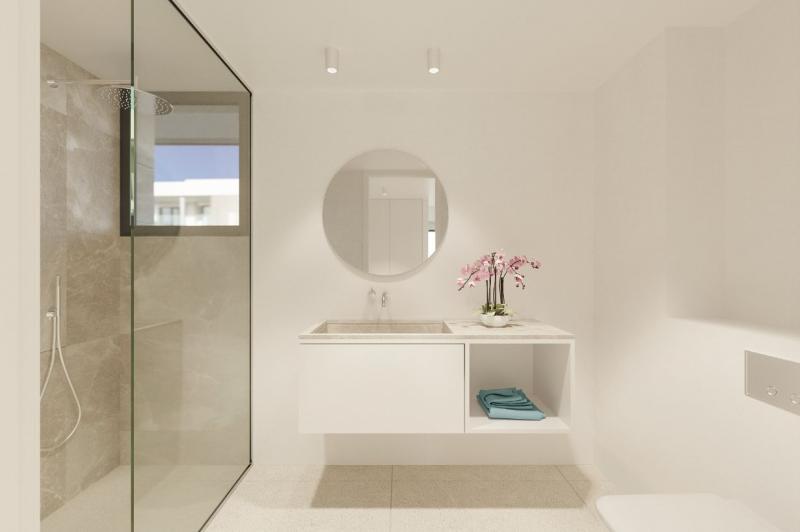 It is a modern and exclusive complex of 9 buildings, Ground Floors with garden, Penthouses with direct access to the roof terrace. The apartments have 2 and 3 bedrooms, from 94 m2 to 115 m2, all apartments have a terrace and porch and the penthouses have a 70 m2 or 115 m2 roof terrace. Apartments apartments have an equipped kitchen, 2 bathrooms (1 en suite), air conditioning (hot + cold), underfloor heating in the bathrooms. Each apartment is assigned a parking space and a storage room. Ab 490.000 euro
