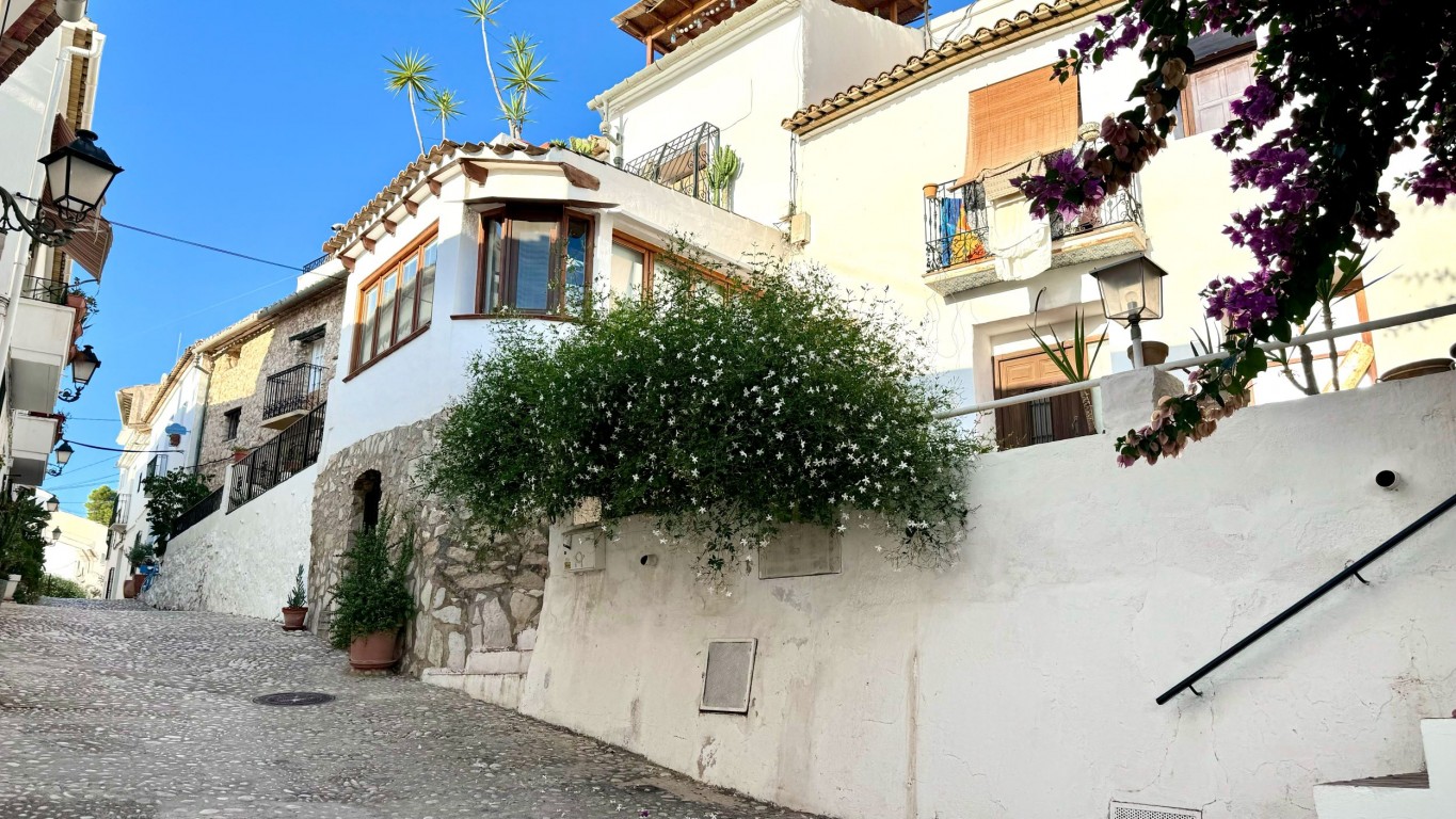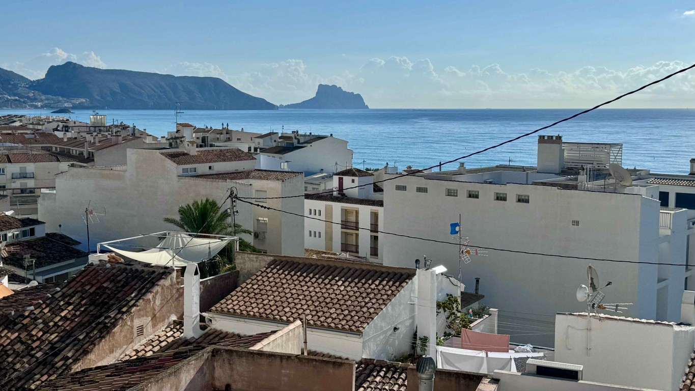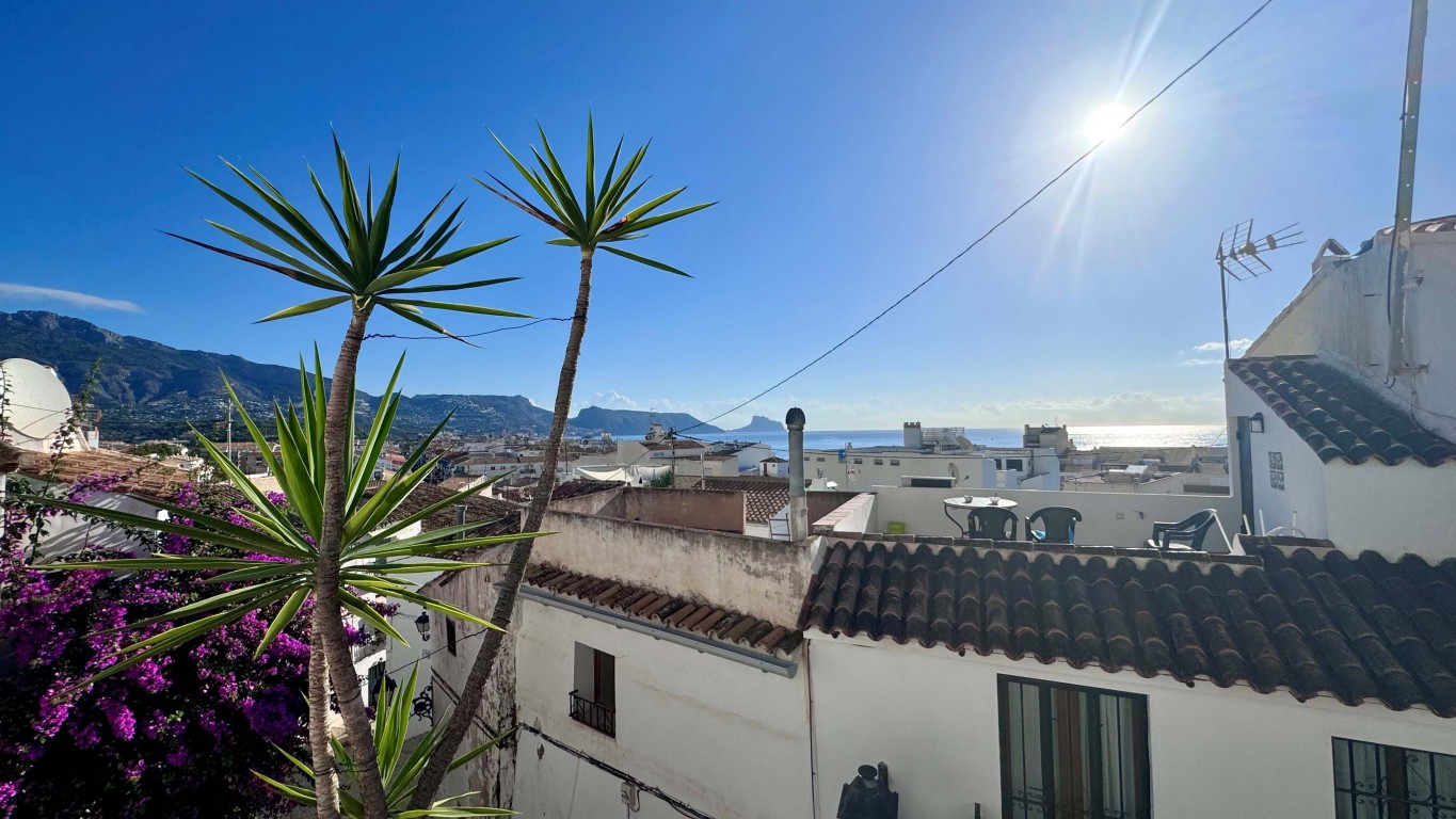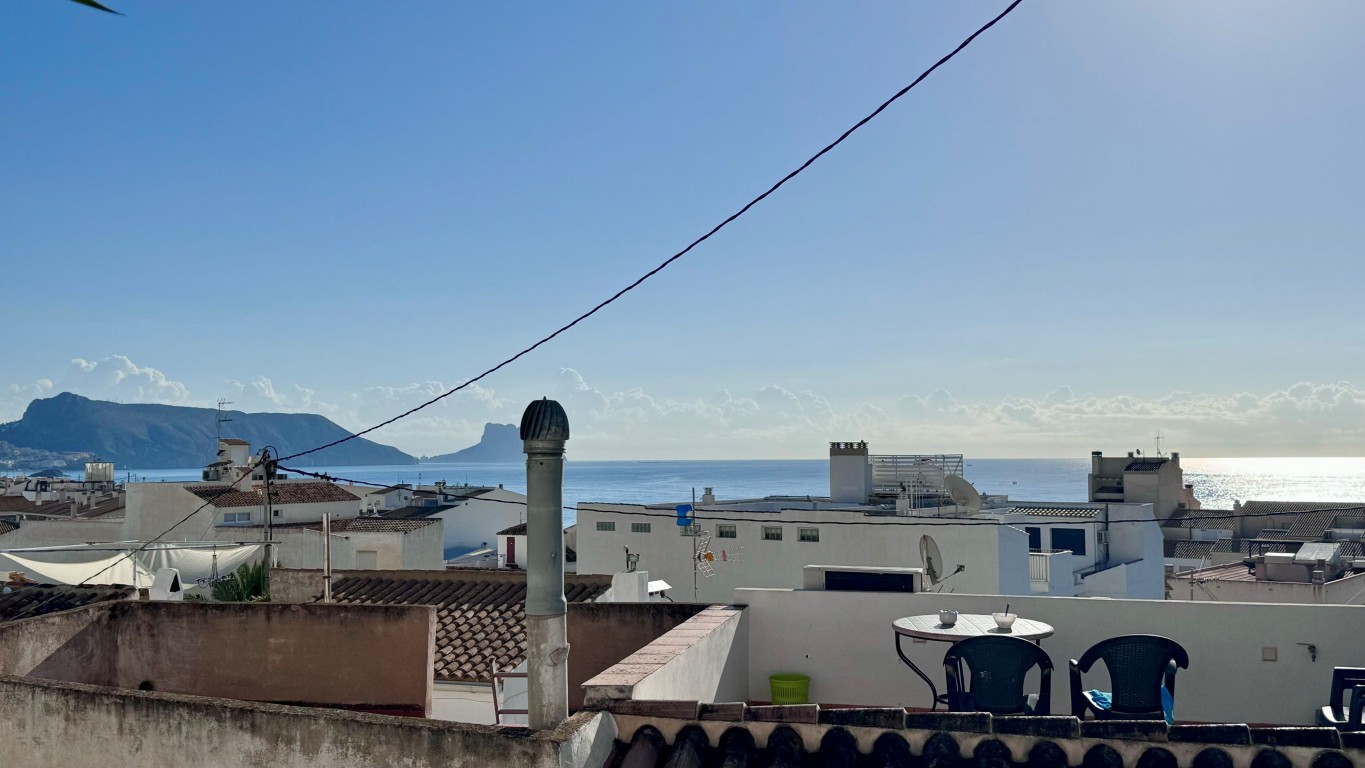 FEEL THE ATMOSPHERE OF OLD ALTEA WITH THIS  CHARMING RUSTIC  PROPERTY LOCATED IN THE CENTRE OF OLD TOWN ALTEA CLOSE TO THE MAIN SHOPPING AREA. This is  house has  fantastic sea and mountain views from the two  upper terraces so there is good outsize space. There are 3 floors, 2 upstairs and one downstairs. The entrance floor las a lounge area with windows that open fully and  an open kitchen and small area for dining. Down the stairs at street level is the large rustic bathroom with shower and bath and the original characteristic rock wall.  On the 1 first floor, there are 2 bedrooms, with the master bedroom leading out to a terrace with views to the sea and the town. On the 2nd floor is the loft area with a another multipurpose room, used as a bedroom, kitchenette with a water connection and sink. The terrace on the this floor has superb views towards the bay and Calpe and ideal  to enjoy outdoor living. Also included is air conditioning on the ground floor, a fireplace and  electric heaters. In addition, not connected to the main house, is an entrance to a storage area . The walls are very thick so maintains the  heat in winter and is kept cool in summer. If you love the charm of old Altea, this may be the property for you and is one of the most photographed streets in Altea, with the centre just 3 minutes walk away.