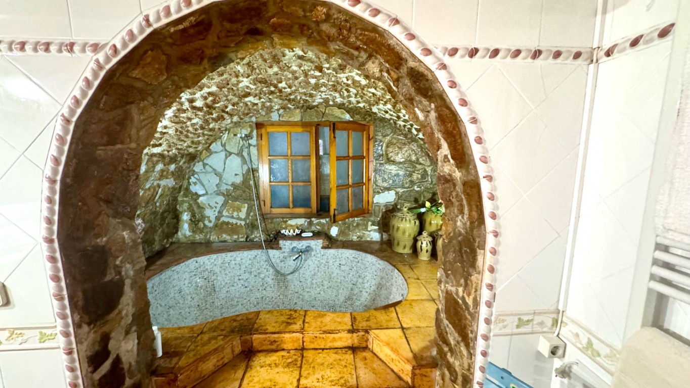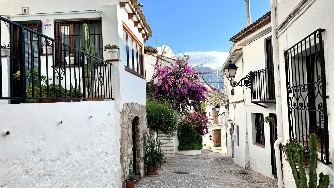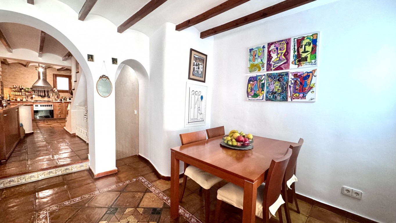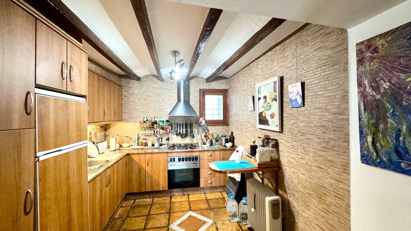 FEEL THE ATMOSPHERE OF OLD ALTEA WITH THIS  CHARMING RUSTIC  PROPERTY LOCATED IN THE CENTRE OF OLD TOWN ALTEA CLOSE TO THE MAIN SHOPPING AREA. This is  house has  fantastic sea and mountain views from the two  upper terraces so there is good outsize space. There are 3 floors, 2 upstairs and one downstairs. The entrance floor las a lounge area with windows that open fully and  an open kitchen and small area for dining. Down the stairs at street level is the large rustic bathroom with shower and bath and the original characteristic rock wall.  On the 1 first floor, there are 2 bedrooms, with the master bedroom leading out to a terrace with views to the sea and the town. On the 2nd floor is the loft area with a another multipurpose room, used as a bedroom, kitchenette with a water connection and sink. The terrace on the this floor has superb views towards the bay and Calpe and ideal  to enjoy outdoor living. Also included is air conditioning on the ground floor, a fireplace and  electric heaters. In addition, not connected to the main house, is an entrance to a storage area . The walls are very thick so maintains the  heat in winter and is kept cool in summer. If you love the charm of old Altea, this may be the property for you and is one of the most photographed streets in Altea, with the centre just 3 minutes walk away.