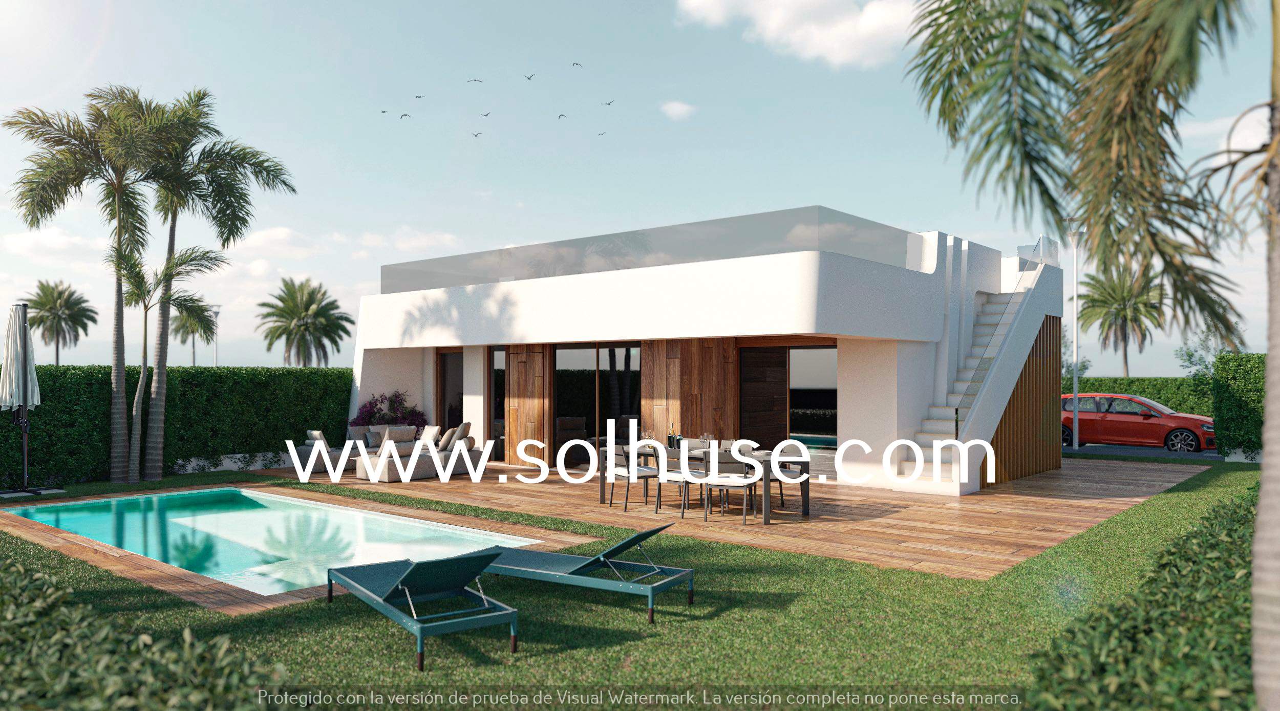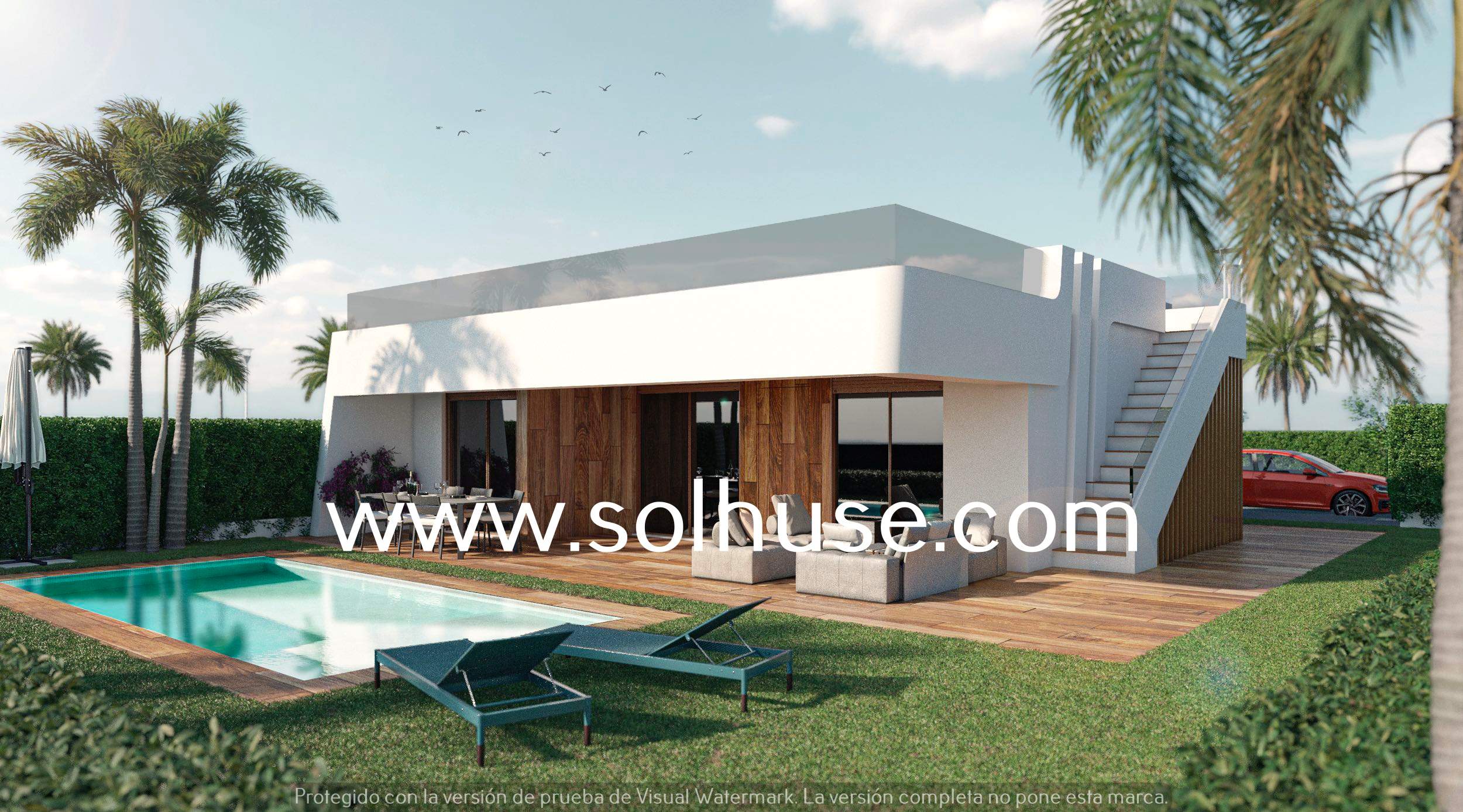 These villas are ultra-modern new builds with 2, 3 or 4 bedrooms and 2 or 3 bathrooms with underfloor heating. Open plan living, garden, solarium and swimming pool. Private parking with an electric charging point and solar panels included. 30 mins from Corvera airport, 40 mins from Murcia city and 30 mins from Cartagena. To be completed in Sept 2023.  The villas range in price depending on plot size and the number of bedrooms. 2 bedrooms on a plot of 217sqm €230,00.00 3 bedrooms on a plot of 240sqm €270,00.00 3 bedrooms on a plot of 285sqm €385,000.00 3 bedrooms on a plot of 340sqm €418,000.00