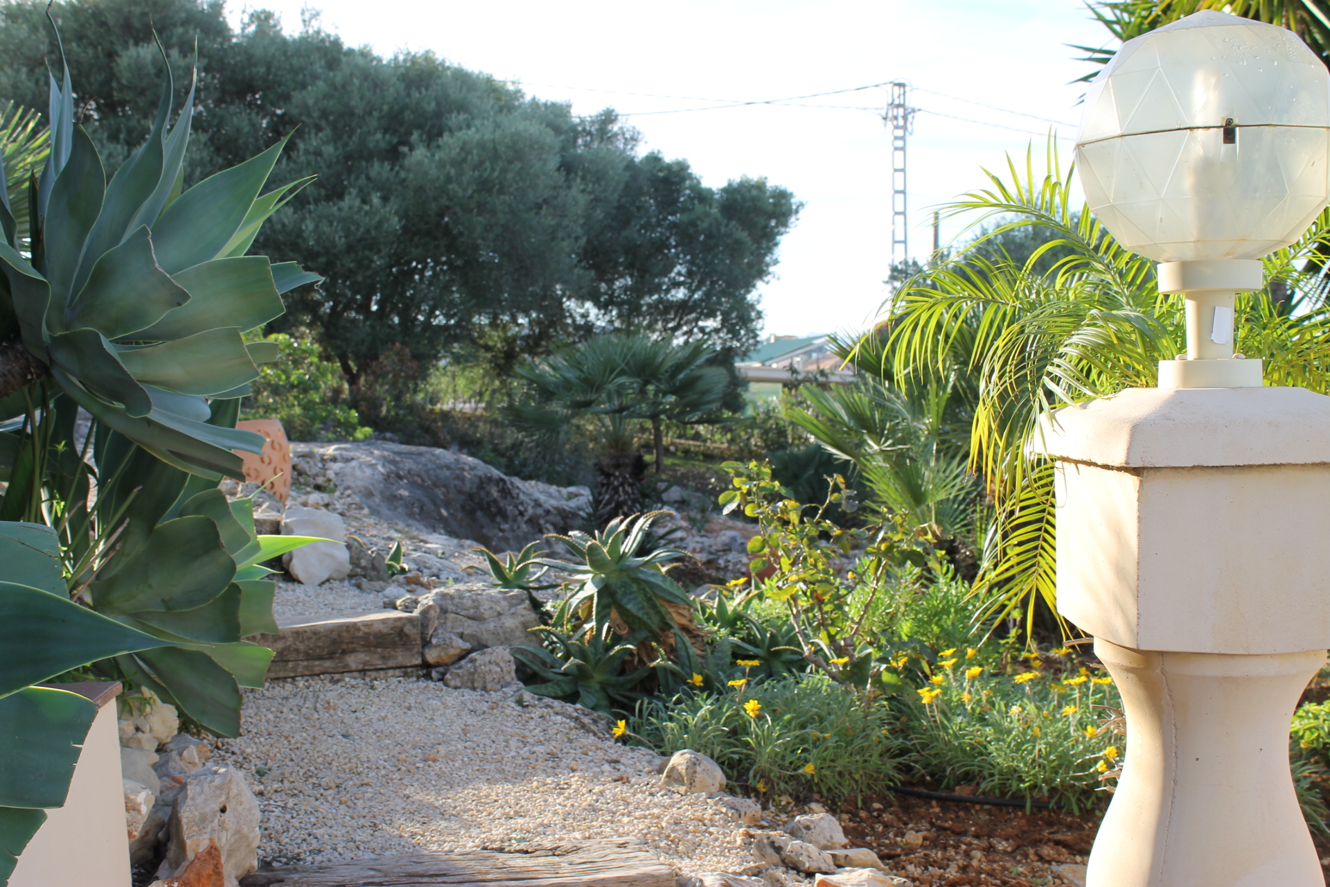 From the middle level you have access to a nice pool area where you also have sea views. Beside of the pool there is a nice garden/plot of 400m2 with olive trees and nice places to enjoy the sun set. The complete outside area is easy to maintain and has been landscaped with Mediterranean plants. Comfortable patio areas are located all around the house. A inside garage and a carport, and off road parking for several cars are available for your vehicles.