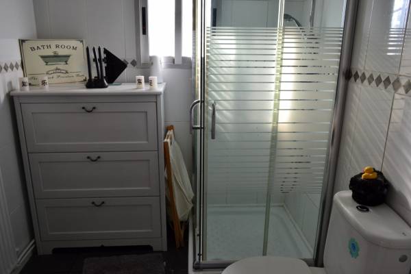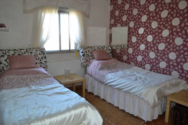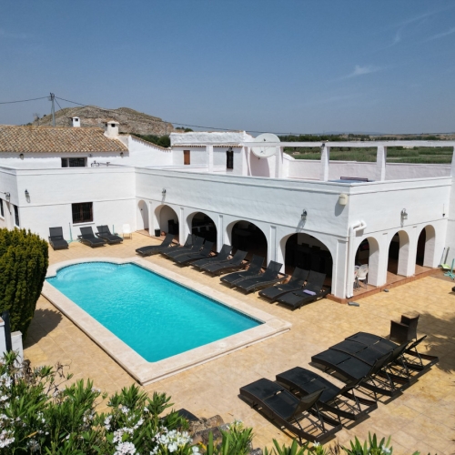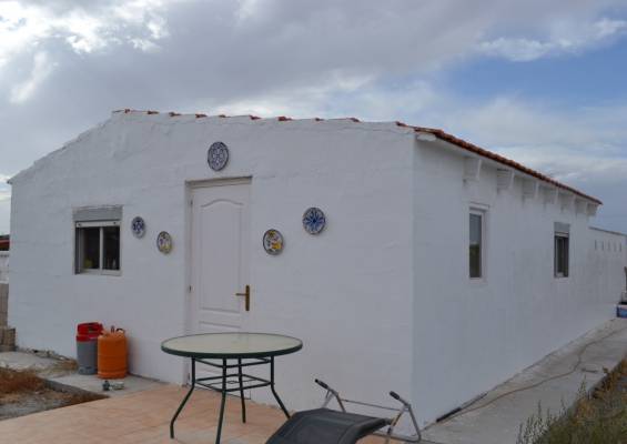 The casita is entered from either a door from the pool or a back door leading onto a small patio area, Entering the casita from the pool area you go into a large bedroom, leading onto an open plan small lounge area , kitchen with gas hob, and sink with fitted cupboards underneath and a small dining area, you then enter a wet room which has a toilet, sink and walk in shower. Hot water is supplied by a boiler in the pump house. Villena is a large Spanish city with all year round amenities, 2 trains; high speed national and local, buses, taxis, hospital and supermarkets.