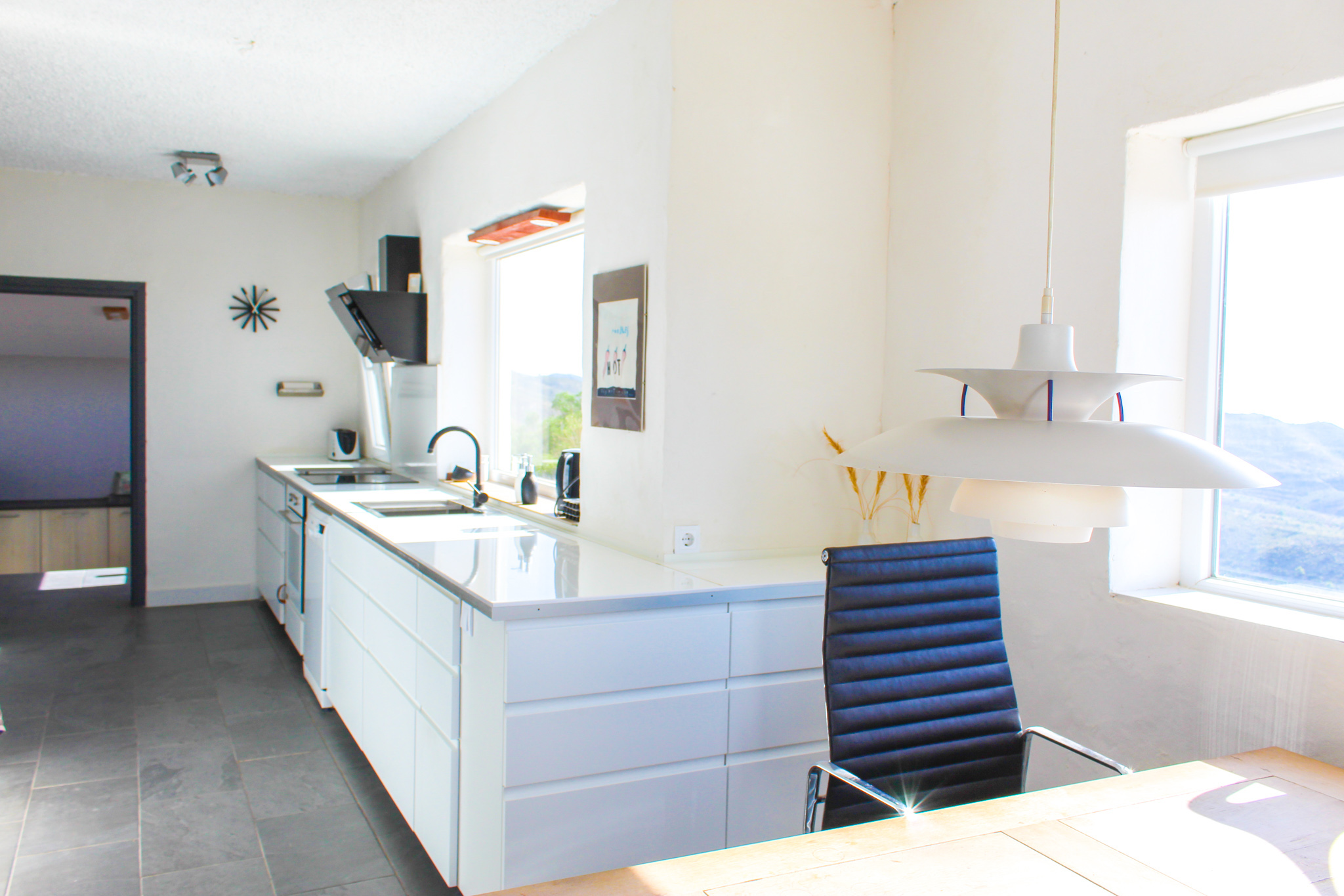 The home consists of a separate garage, 5 rooms of which 2 of them currently function as bedrooms with bathrooms en-suite and 3 additional rooms, which are used as studios, office / storage and a 'meeting room' which will be ideal to use as office if you want to do business from here, as there is a direct entrance from the driveway. There are 3 bathrooms in the residence, 2 of which are connected to the bedrooms. The fifth room, which currently is used as a ‘meeting room’, can easily be integrated with access from the second bedroom and can possibly be used as a large walk-in closet.