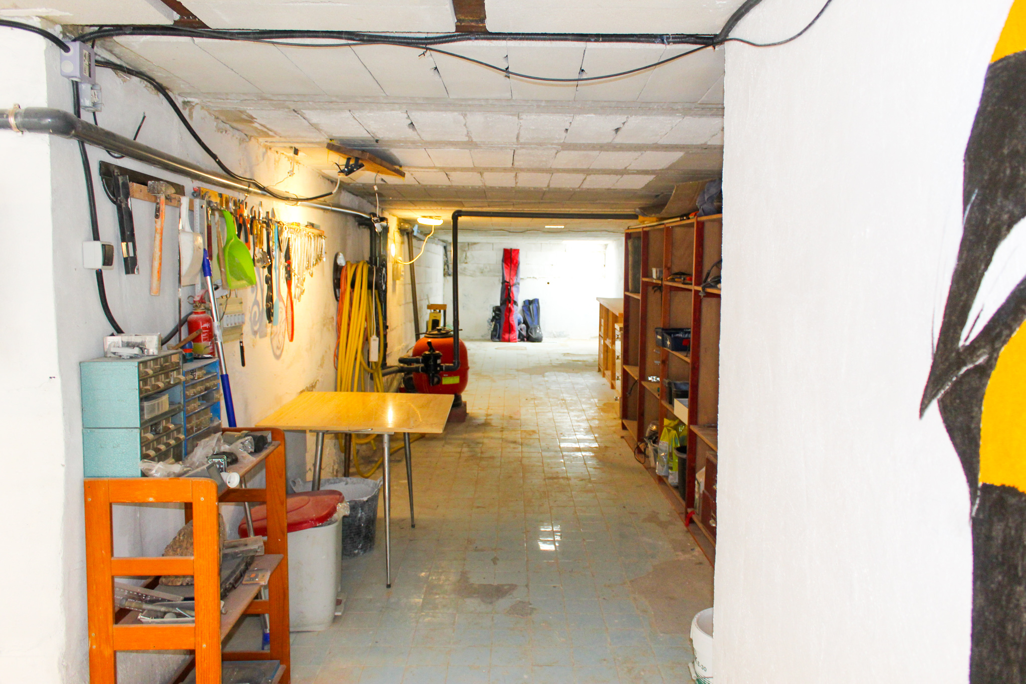 From the home's main entrance, you enter a large, bright entrance hall with entrance to the guest bathroom and entrance to a studio which can also be used as a bedroom. From the entrance there is also access to the kitchen, dining room and living room. From the large, bright kitchen there is also access to the utility room and a large, covered terrace. The dining room with open connection to the house's cozy living room, is super bright thanks to the large window with sliding doors, which leads out to another large terrace with access to the pool area. From the entrance hall and the living room you have access to the lower floor of the house, which consists of 3 spacious rooms, 2 of which have a bathroom en-suite. There is also a basement with a large storage room, workshop and leisure room. From the basement there is also access to the 5th room, which has its own entrance from the driveway.