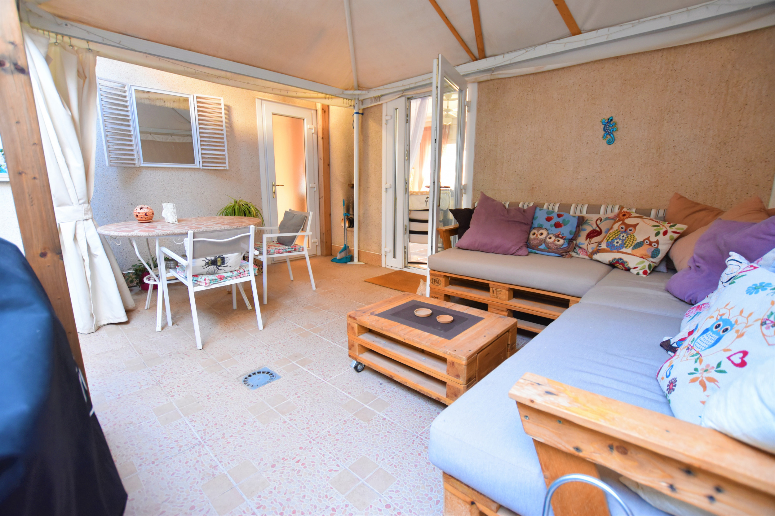 The main entrance to the property is via a few steps and leads onto a bright and modernized kitchen area with additional worktop and cupboard space has been added by the current owners which also boasts filtered drinking water, this kitchen overlooks the living and dining room area and then leads down a corridor onto a walk-in shower room and 2 good-sized bedrooms with fitted wardrobes.
