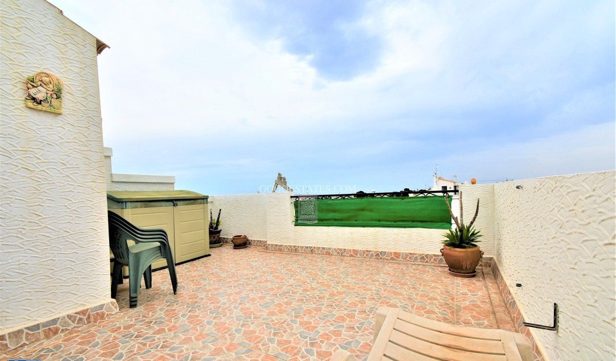 A Quad 3 bedroom, 2 bathroom house with a private rooftop solarium located in Dream Hills, Los Altos, Costa Blanca. This beautiful property is offered for sale in good condition, it is being sold furnished. It is a quiet location and benefits from the option of two different community pools. There are also several bars and restaurants within a short walk.