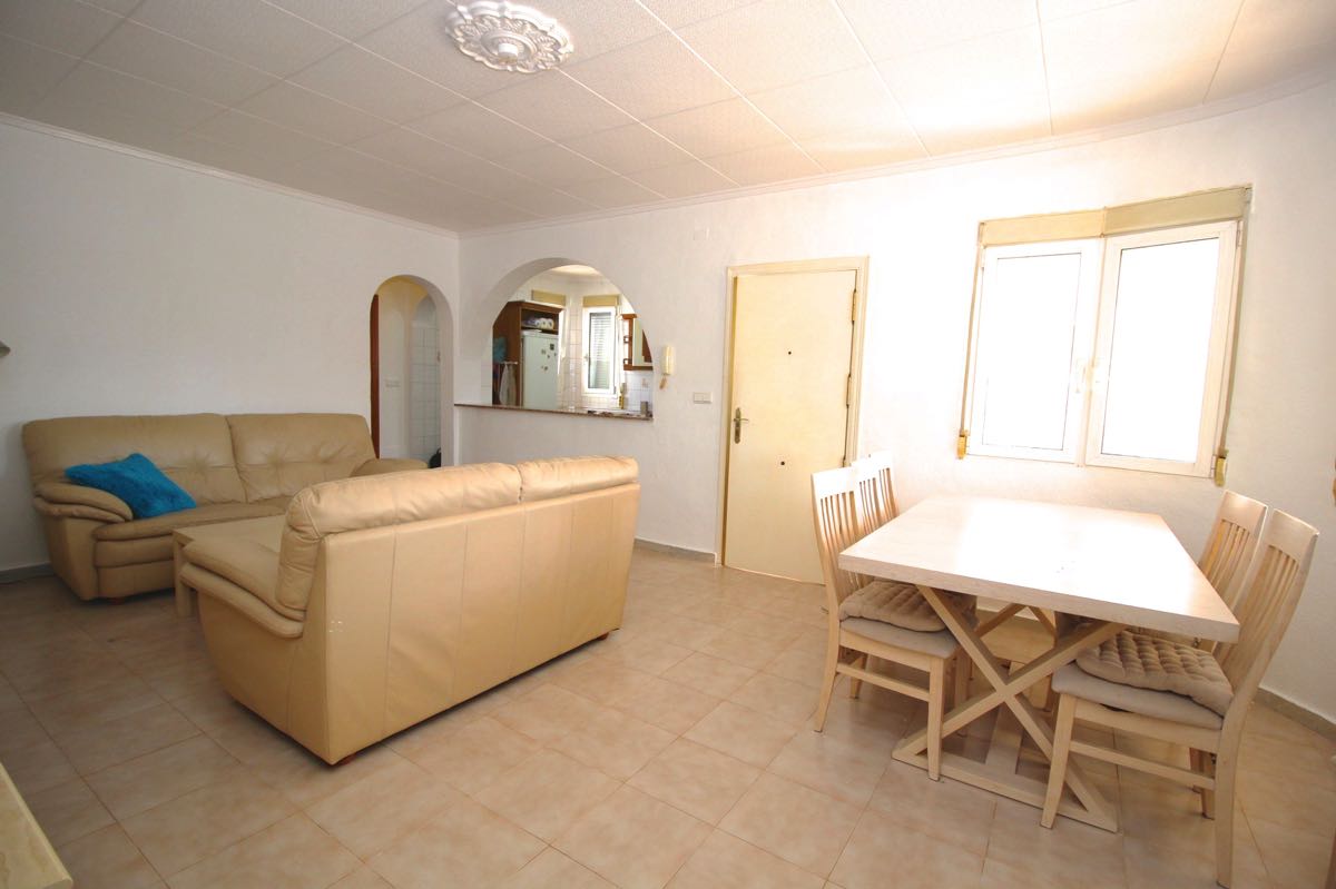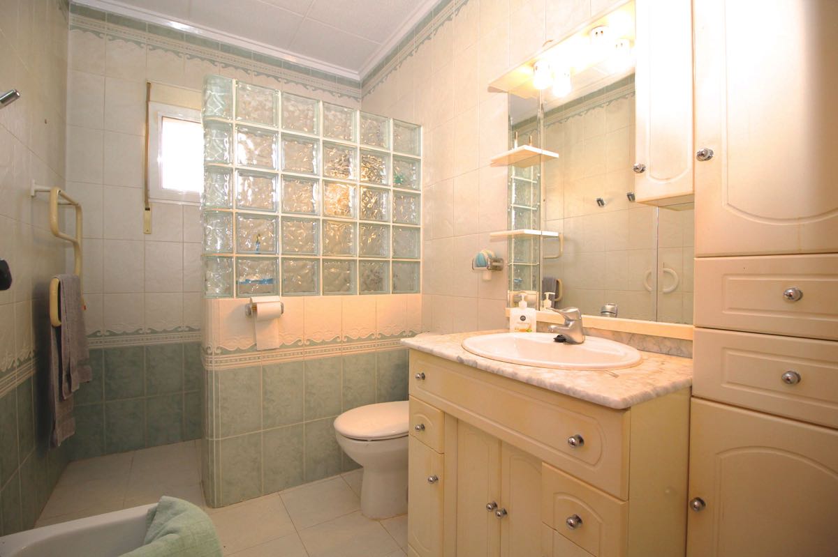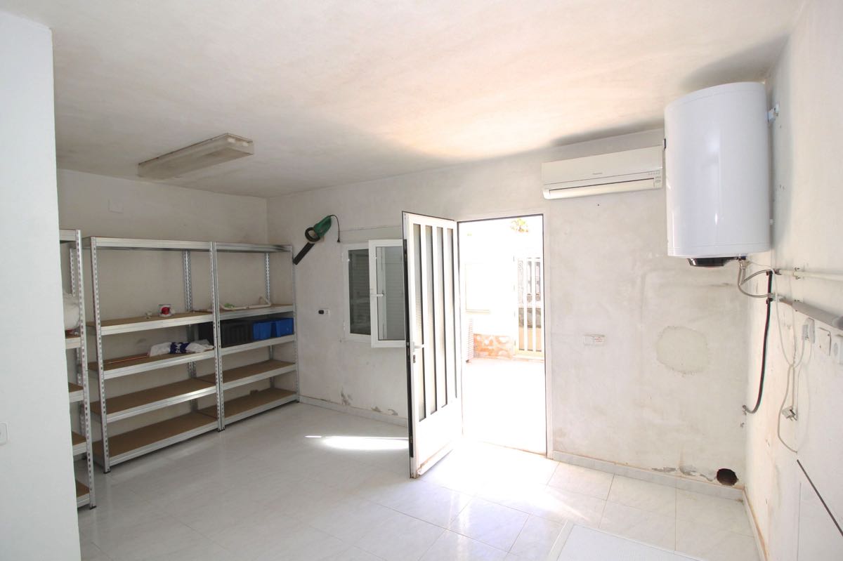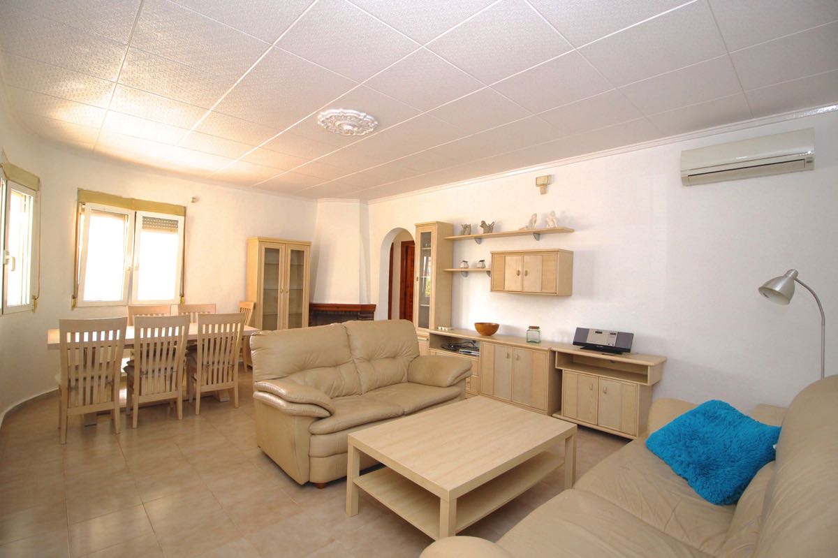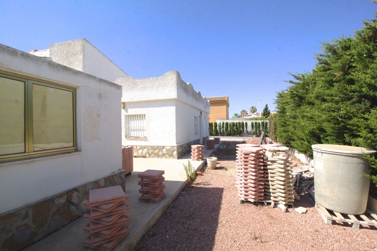 Lovely traditional 4 bedroom spanish villa in La Siesta, Torrevieja. The villa is located on a more than 800 m2 big plot, offering lots of terrace area and a private swimming pool. When entering the villa you will find a glazed-in terrace. The open kitchen, dining area and living room gets lots of natural sunlight from the windows towards the terrace. In one part of the villa you will find two double bedrooms and a bathroom, while on the other you will find a third bedroom and another bathroom.