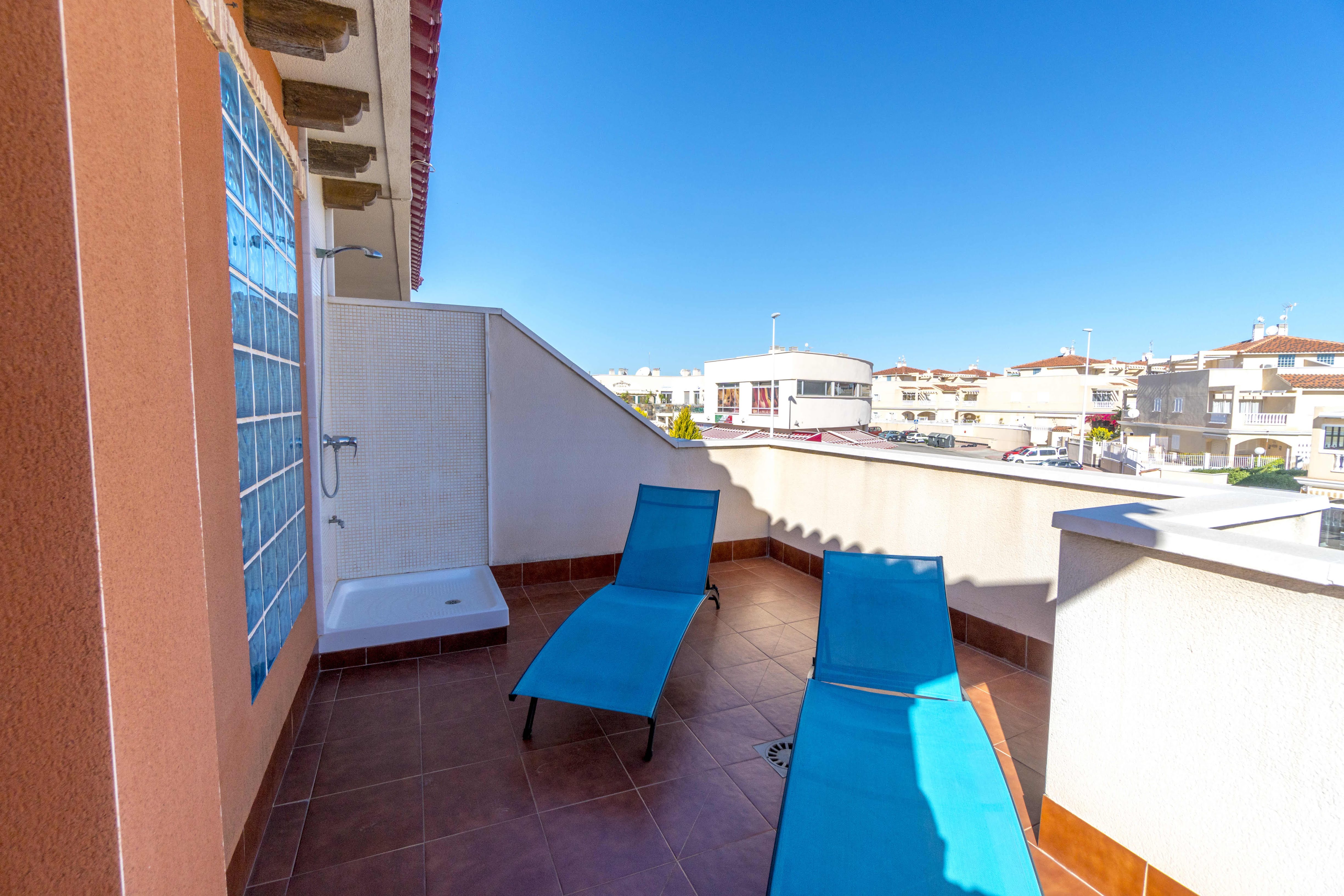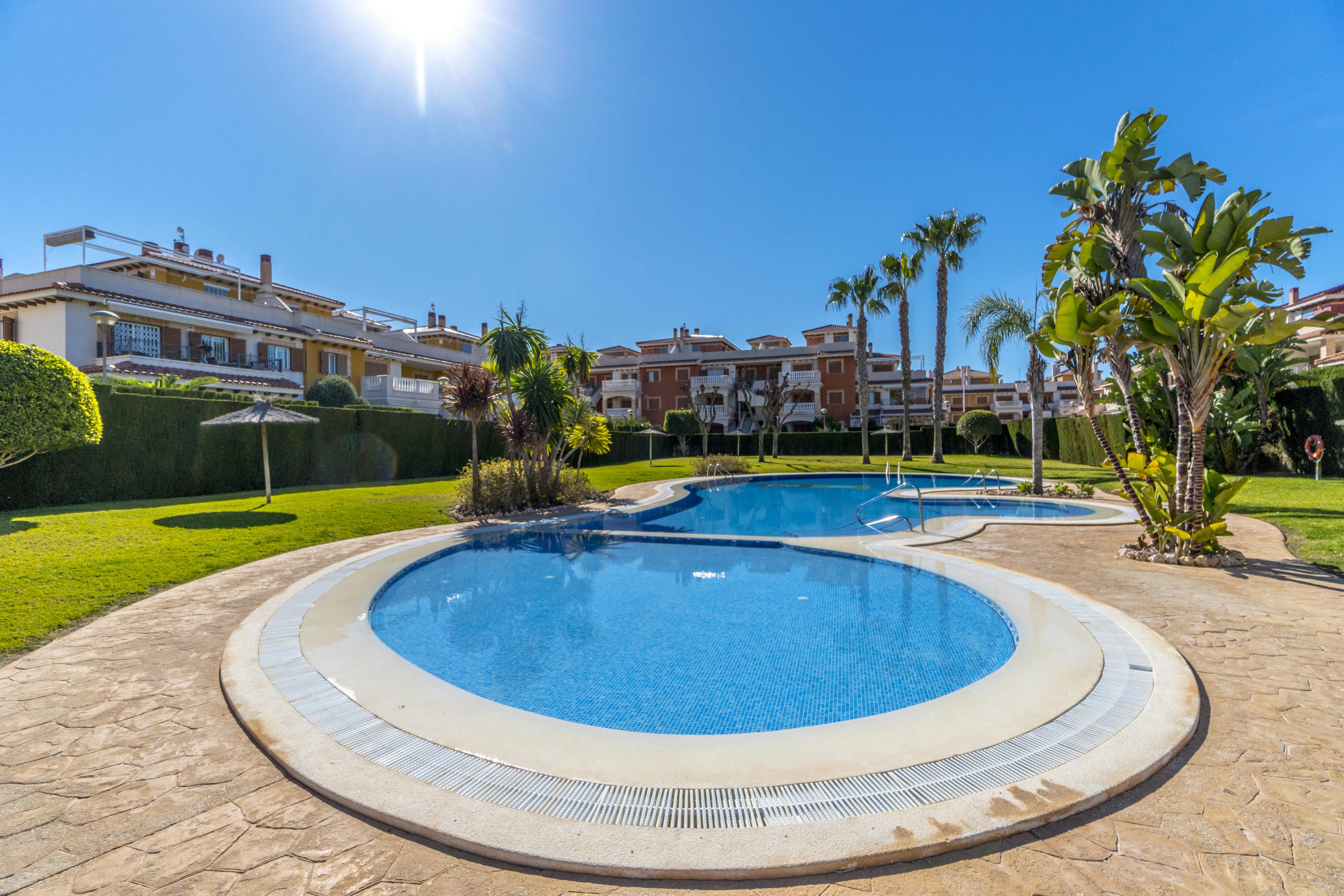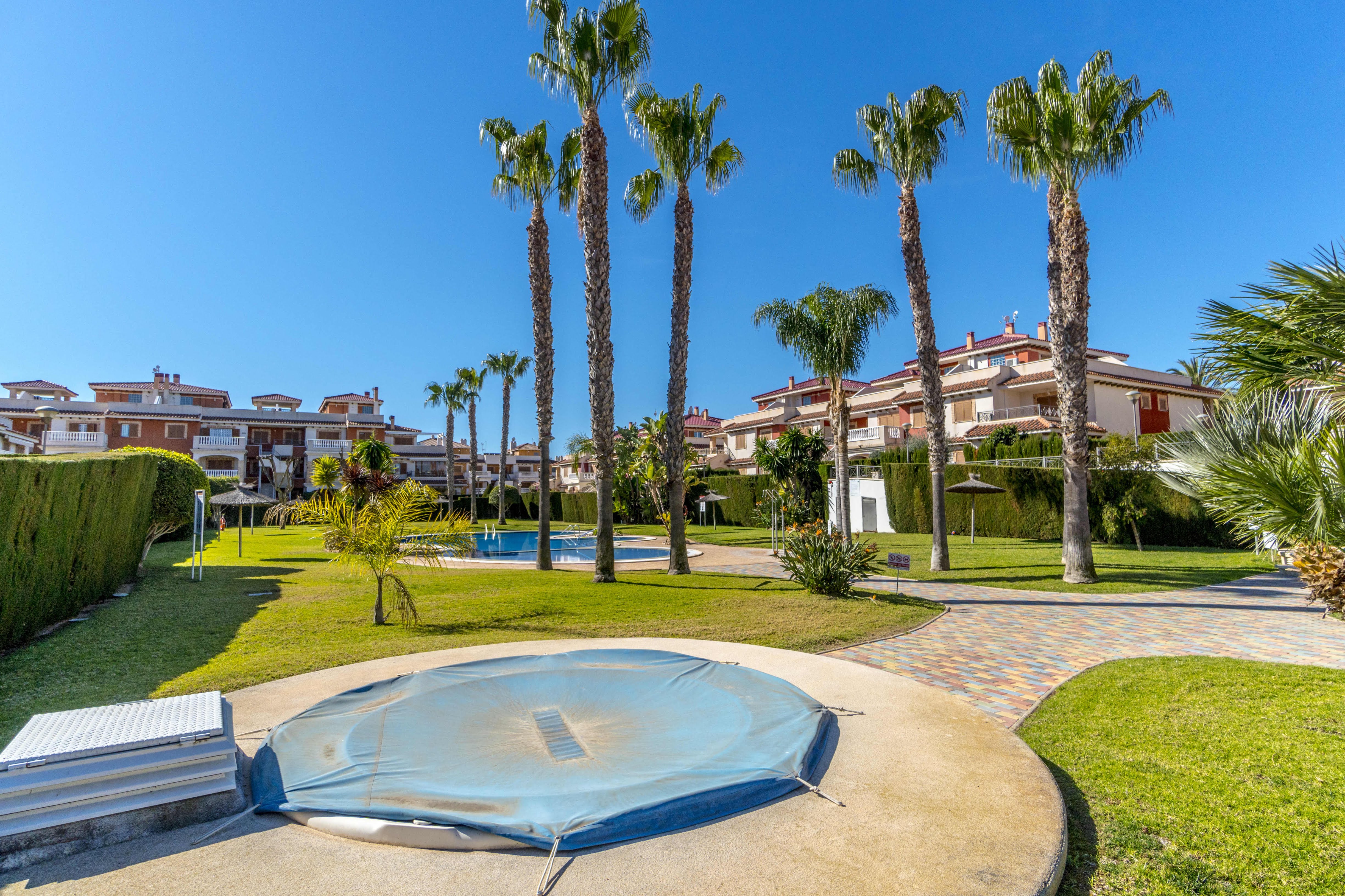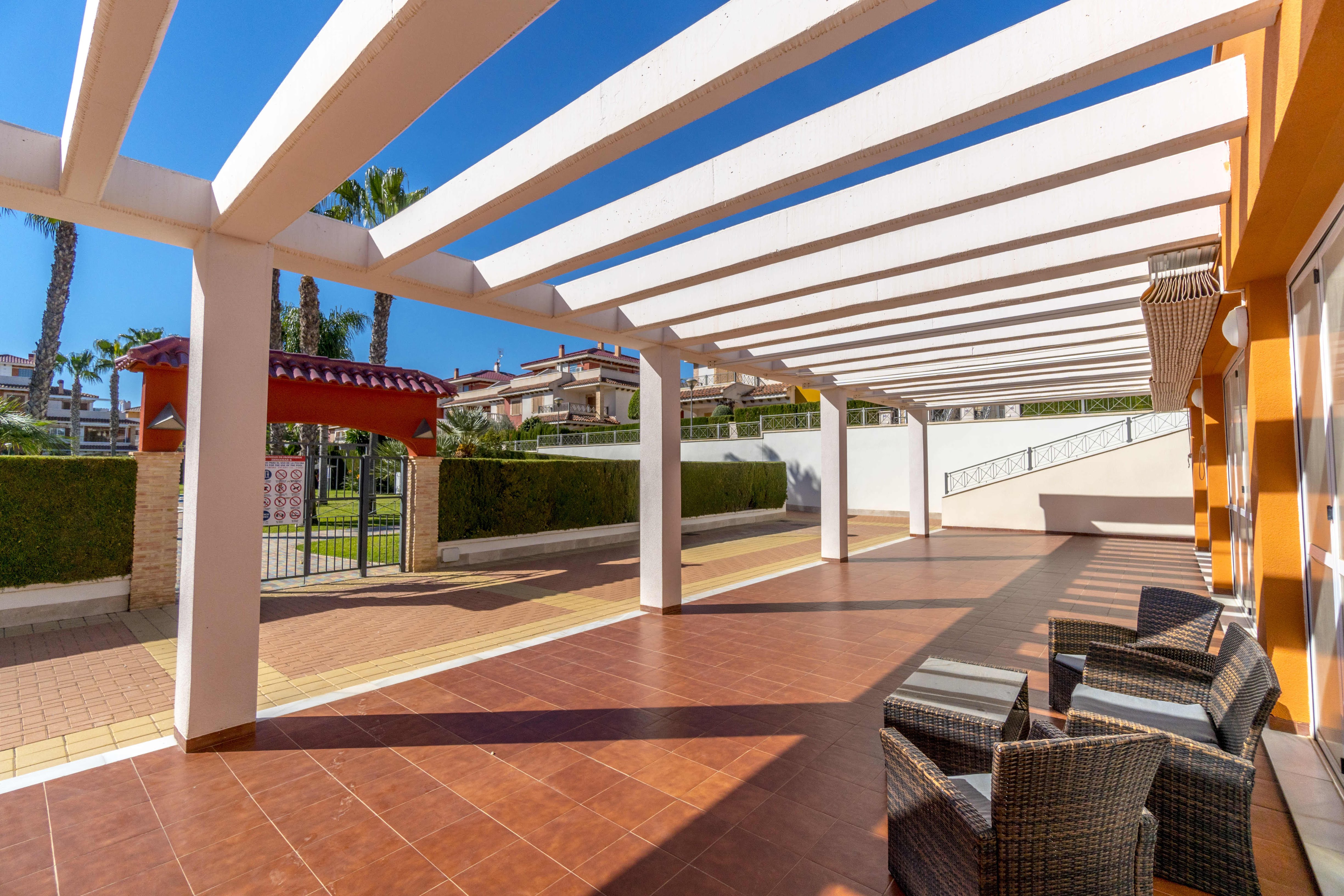 The very well-kept urbanization offers a big green area with many palm trees to provide a little shade on the warm summer days. Here there are two jacuzzies, an infant pool and a normal pool. Furthermore, the urbanization has its own gym and sauna. In the same building there is a big local with bar, football table, tables and chairs, possible to rent for any occasion or celebration.