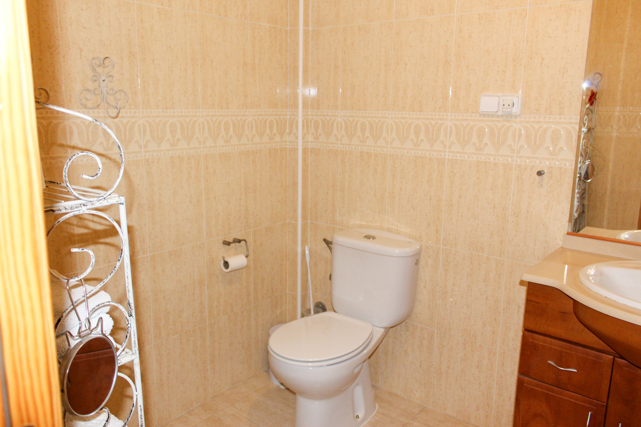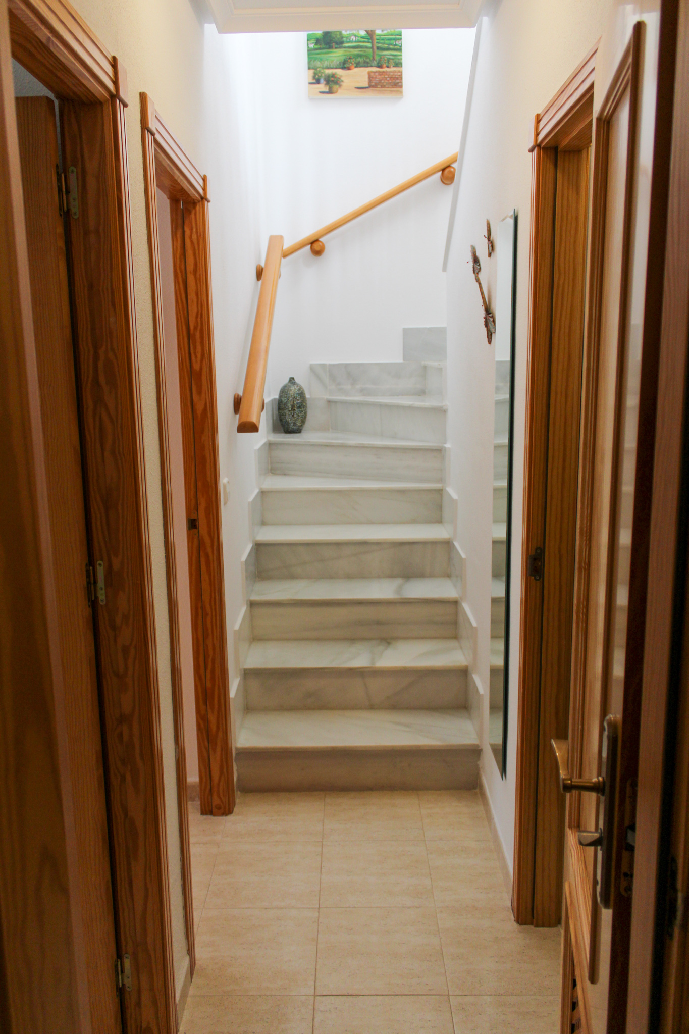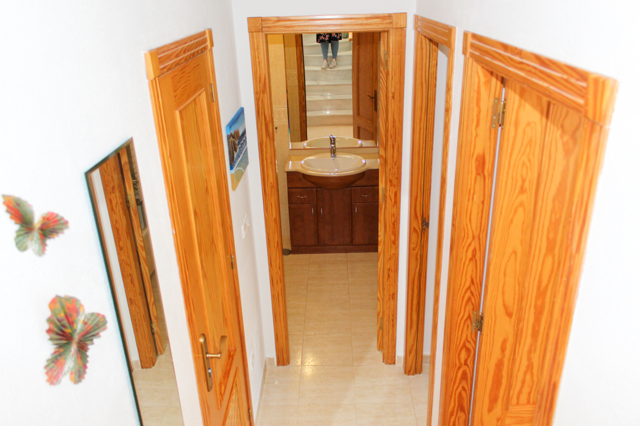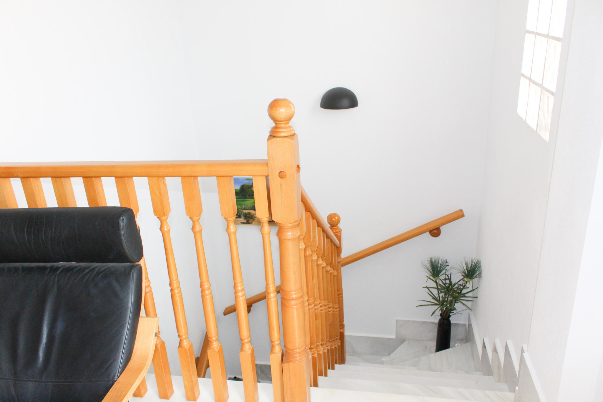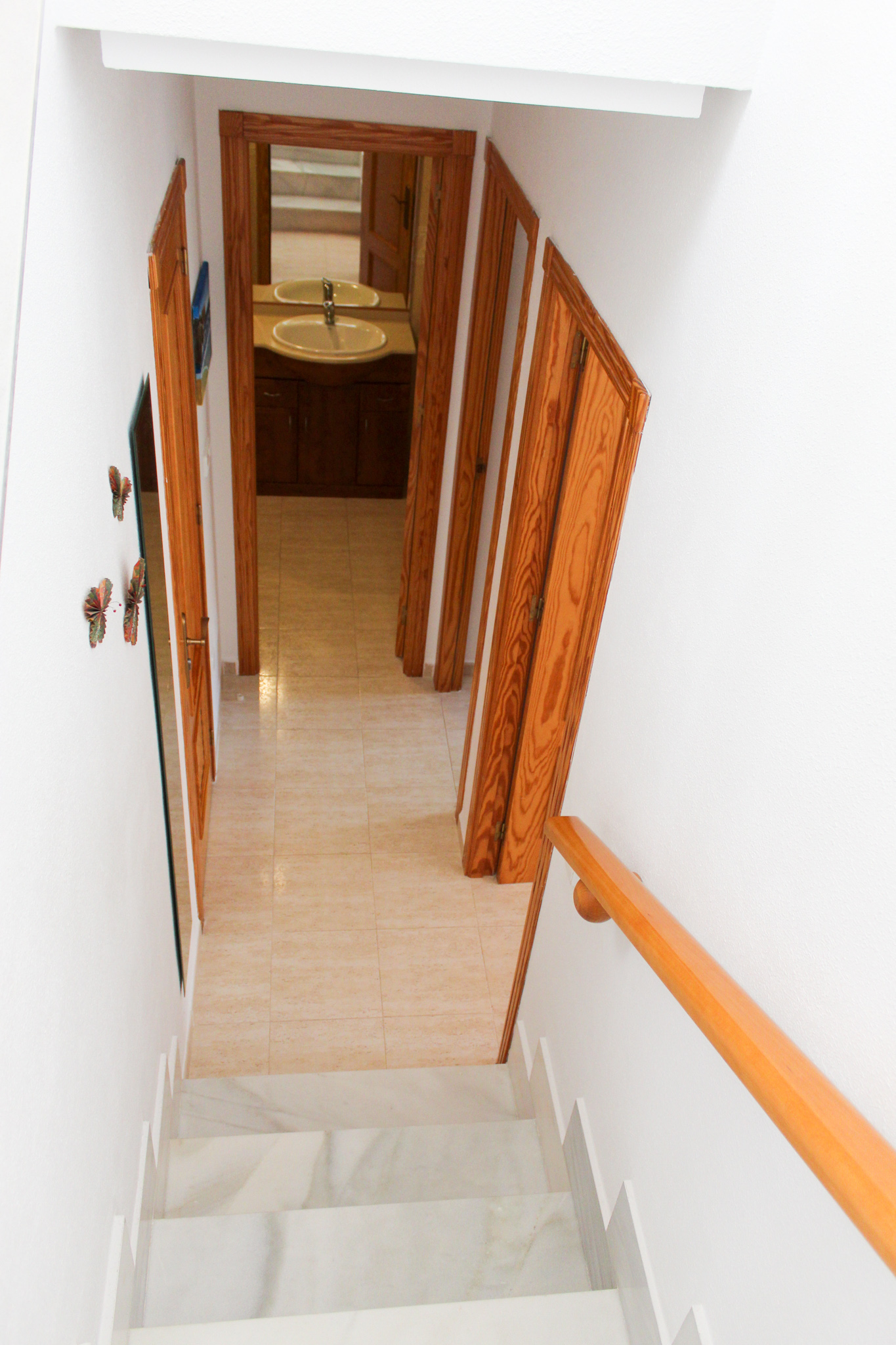 The first floor, which is where you enter the home, consists of an entrance hall, large kitchen/ living room with access to a utility/storage room and bathroom. From the bright living room, which has air con installed, there is also access to the large roof terrace, from which you have a view of the neighbouring town, Los Arenales del Sol, and not least to the Mediterranean. On the terrace there is sun all day.