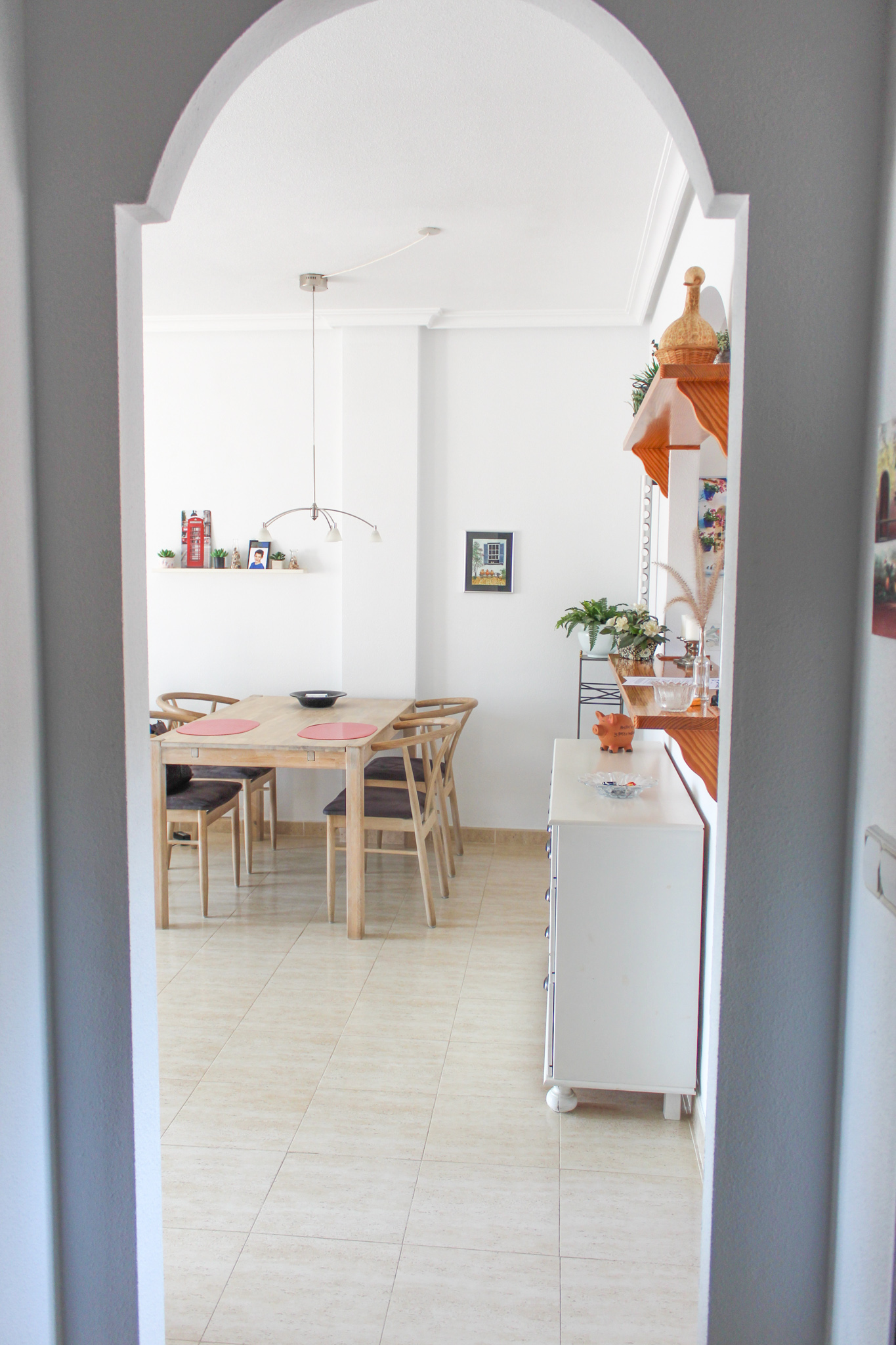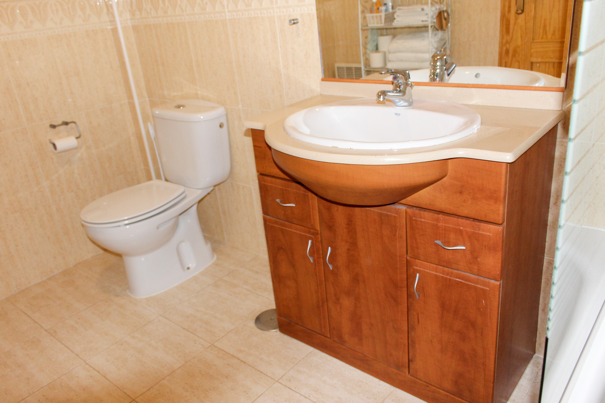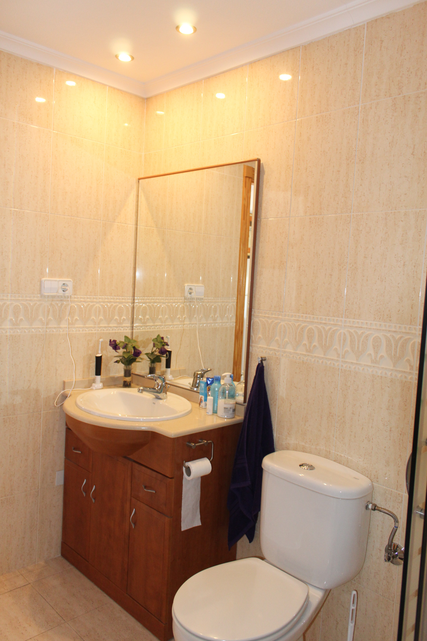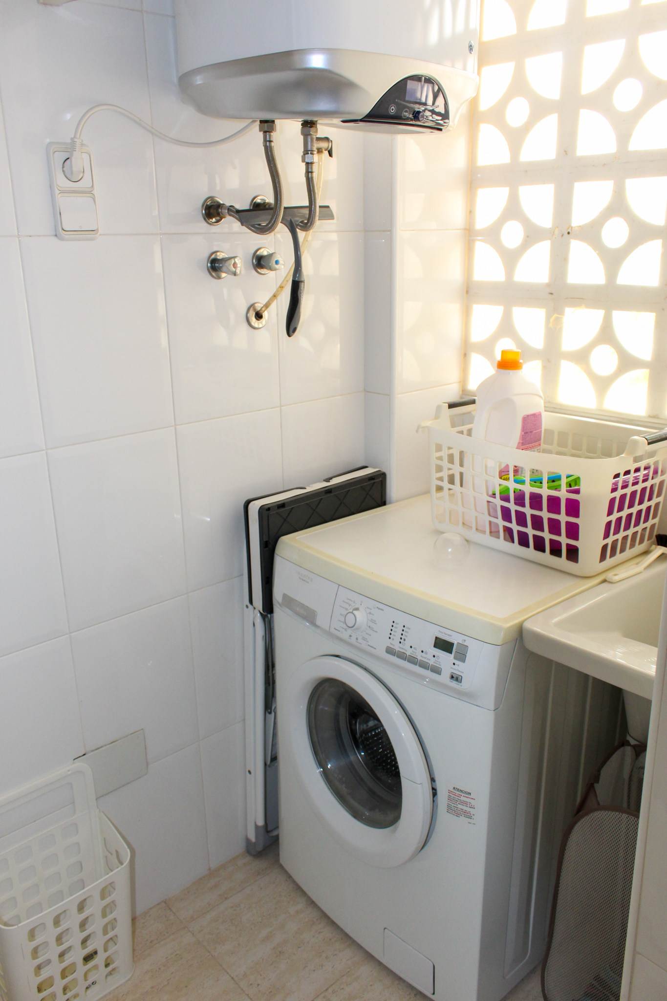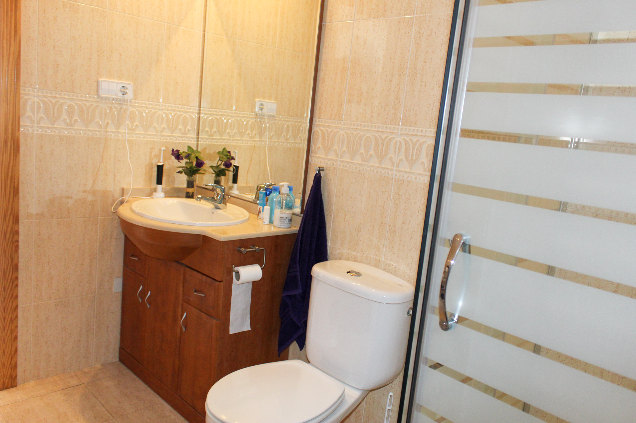 The first floor, which is where you enter the home, consists of an entrance hall, large kitchen/ living room with access to a utility/storage room and bathroom. From the bright living room, which has air con installed, there is also access to the large roof terrace, from which you have a view of the neighbouring town, Los Arenales del Sol, and not least to the Mediterranean. On the terrace there is sun all day.