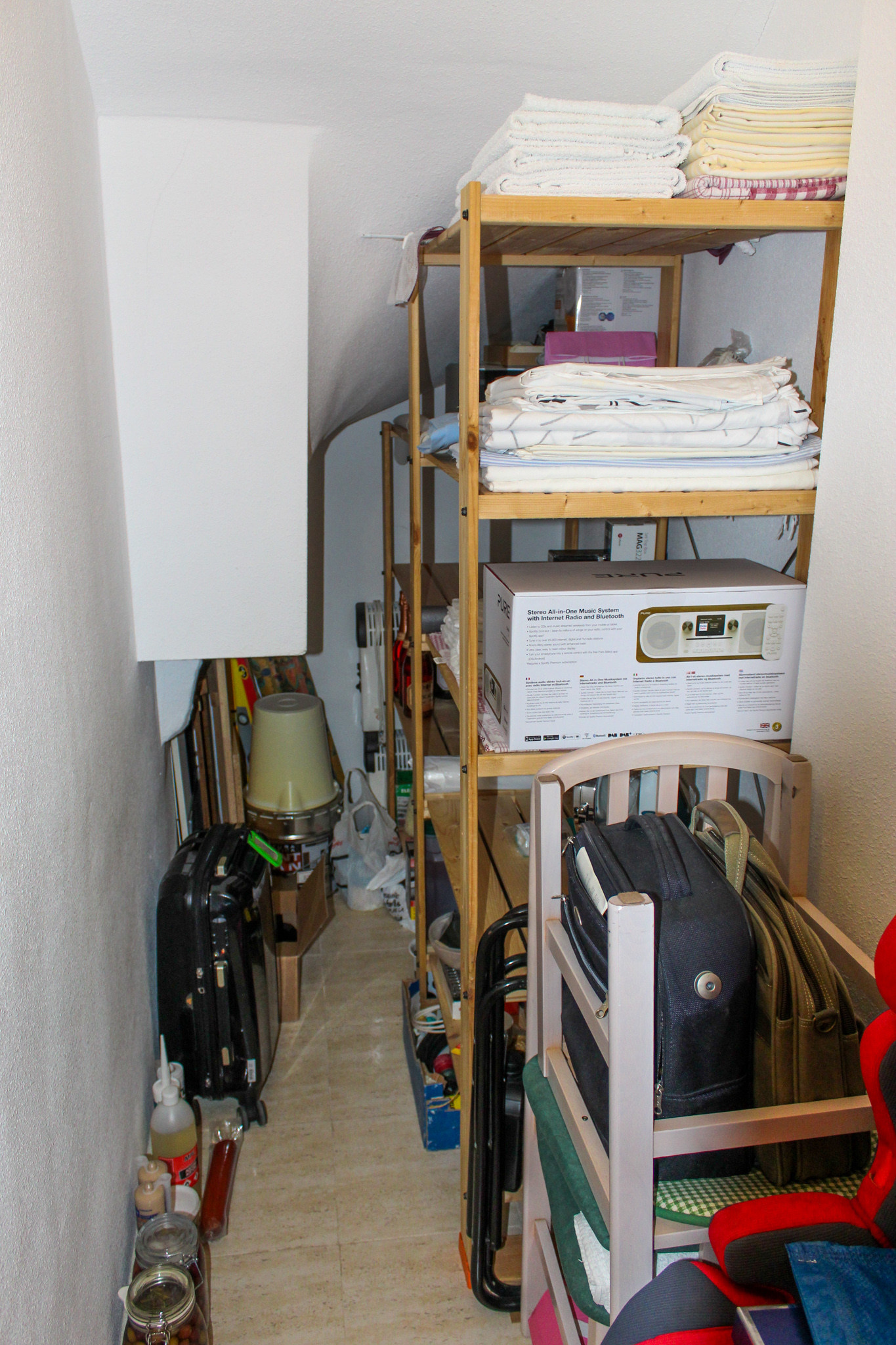 This floor consists of 2 spacious rooms with air con, one of which has access to the cozy front garden. There is also a bathroom and a large, practical storage room.