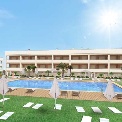 In the urbanization is a large, communal pool area with palm trees and parasols, from which you have a view of the beautiful mountain landscape in the background. There is also an underground car park as well as storage included in the price.