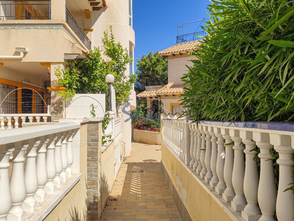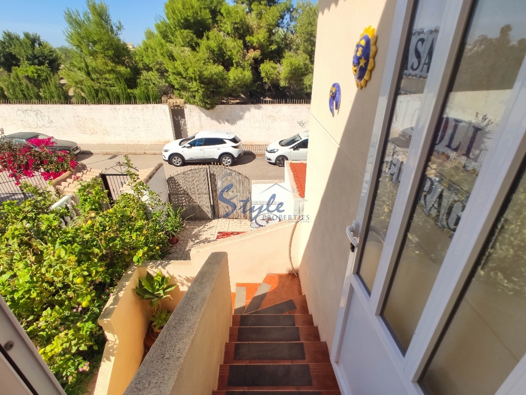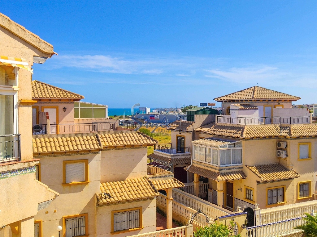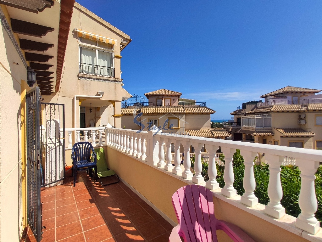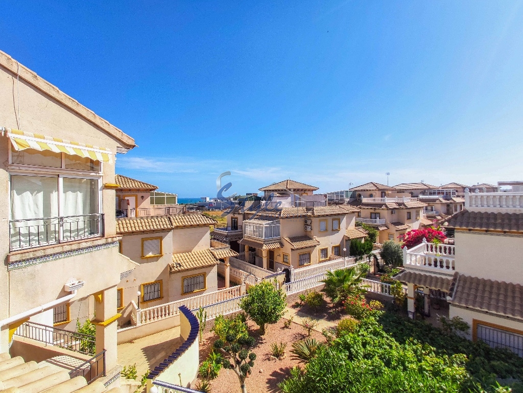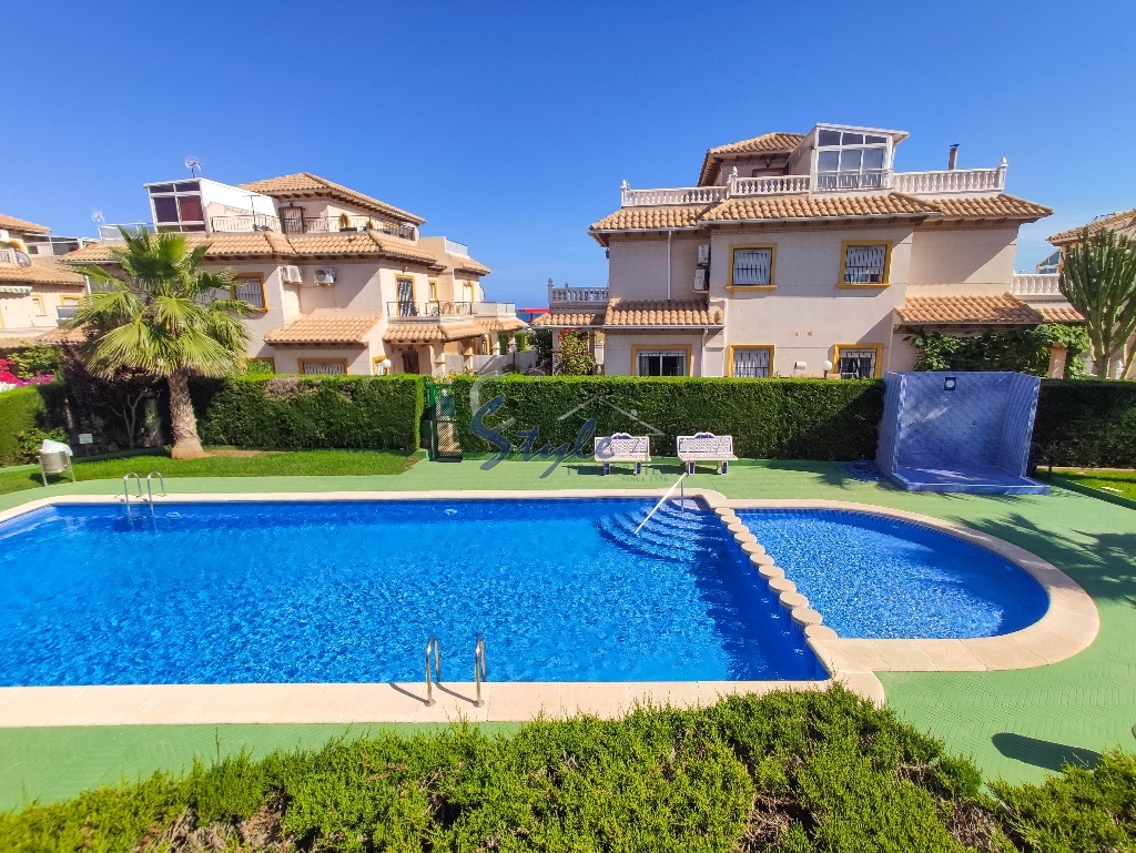 Cozy and bright top floor bungalow with patio, large terrace and private solarium, from where you can enjoy views of the sea, in a cozy and perfectly located urbanization La Campana, in the heart of Punta Prima, with nice communal areas and a swimming pool.