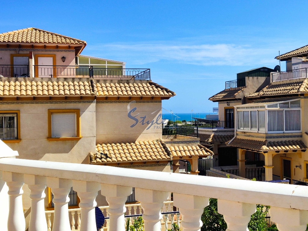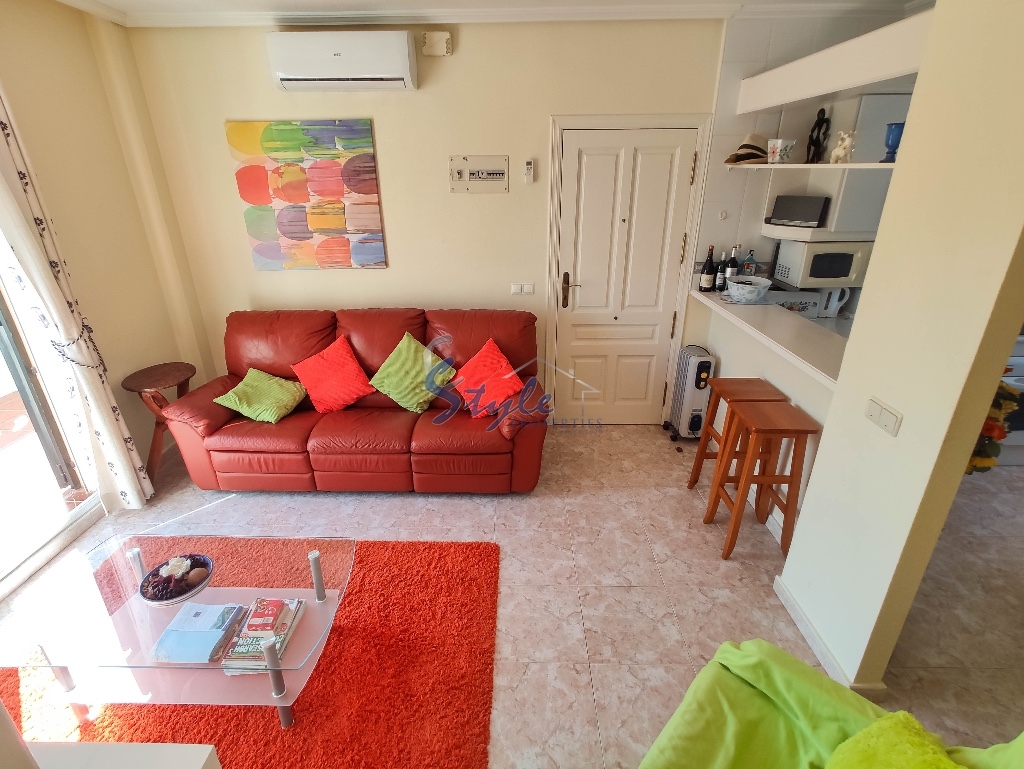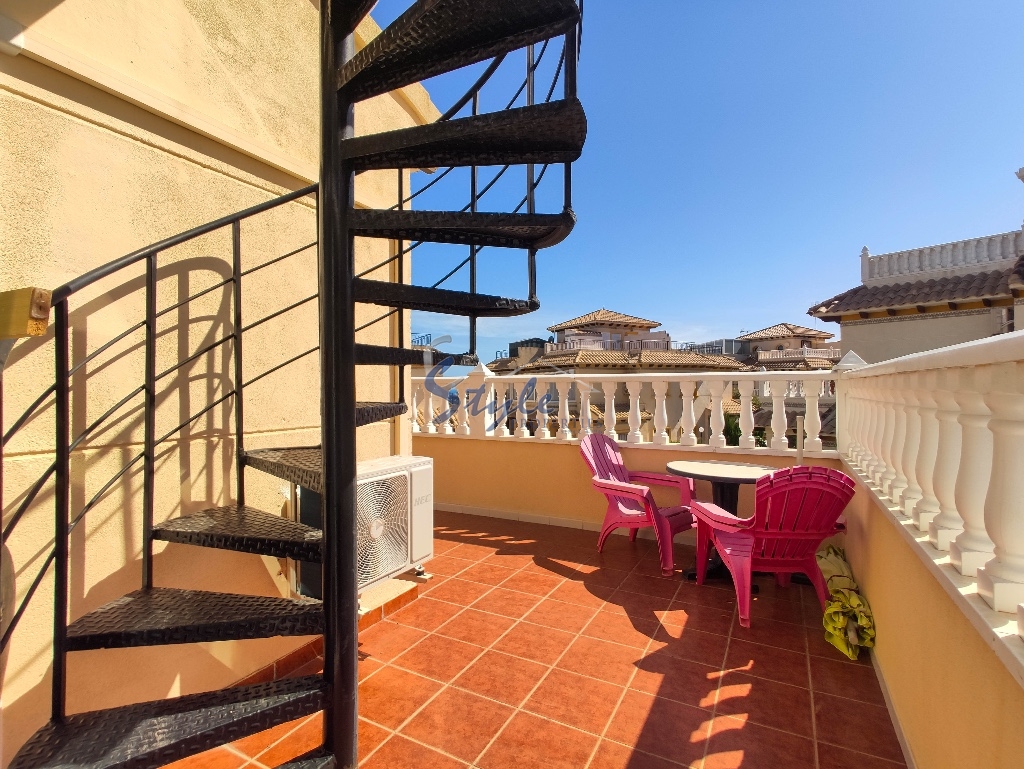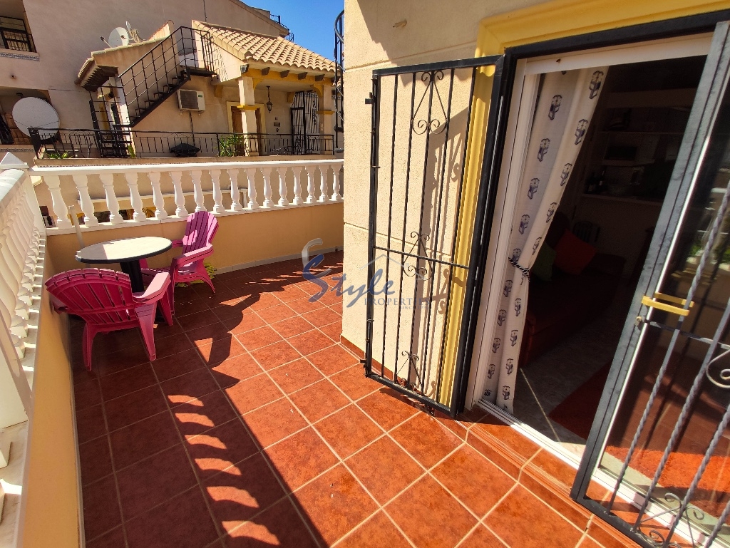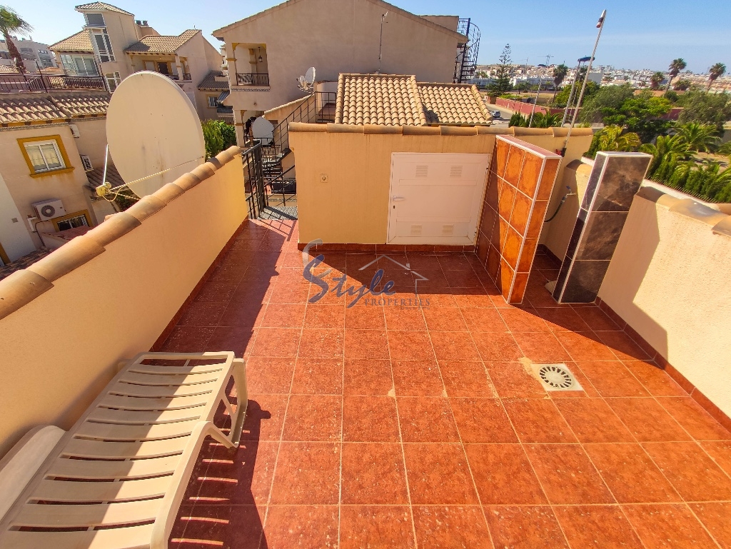 Cozy and bright top floor bungalow with patio, large terrace and private solarium, from where you can enjoy views of the sea, in a cozy and perfectly located urbanization La Campana, in the heart of Punta Prima, with nice communal areas and a swimming pool.
