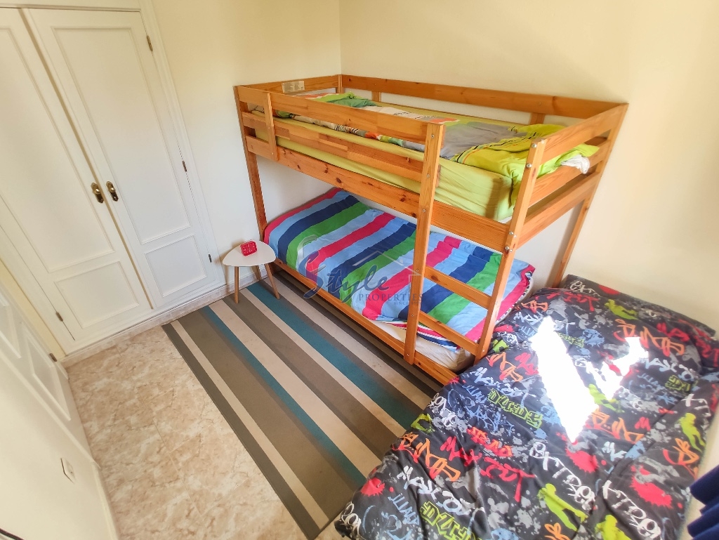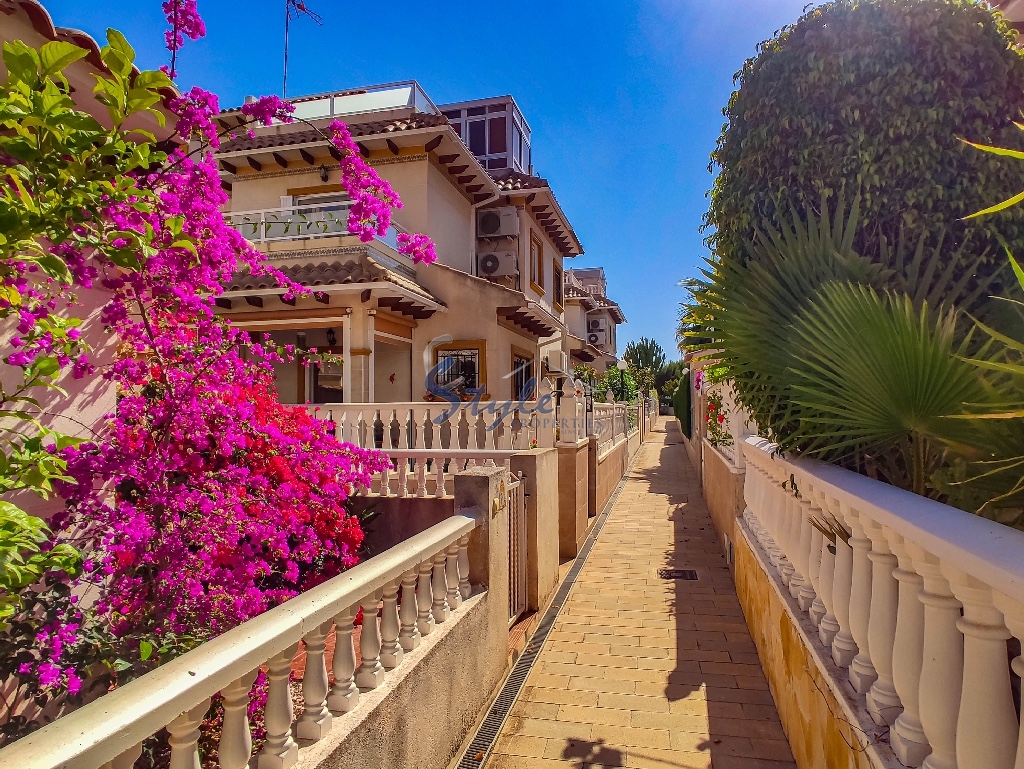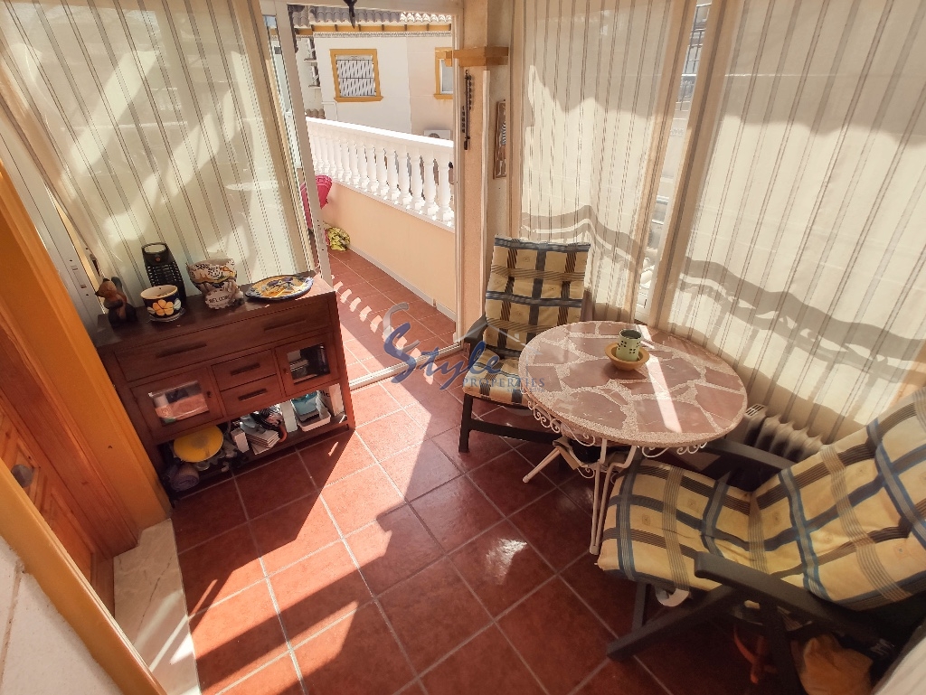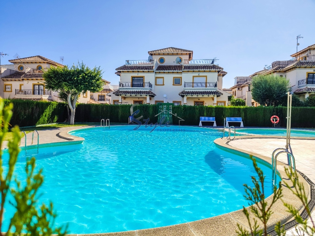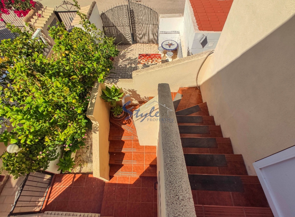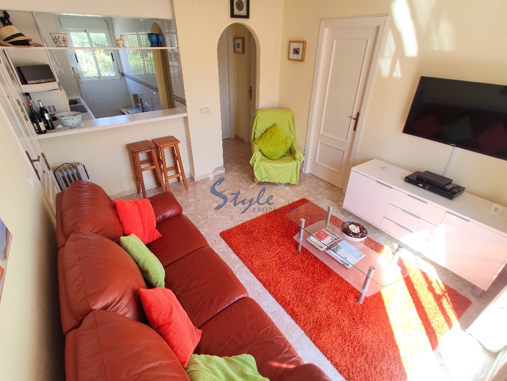 Cozy and bright top floor bungalow with patio, large terrace and private solarium, from where you can enjoy views of the sea, in a cozy and perfectly located urbanization La Campana, in the heart of Punta Prima, with nice communal areas and a swimming pool.