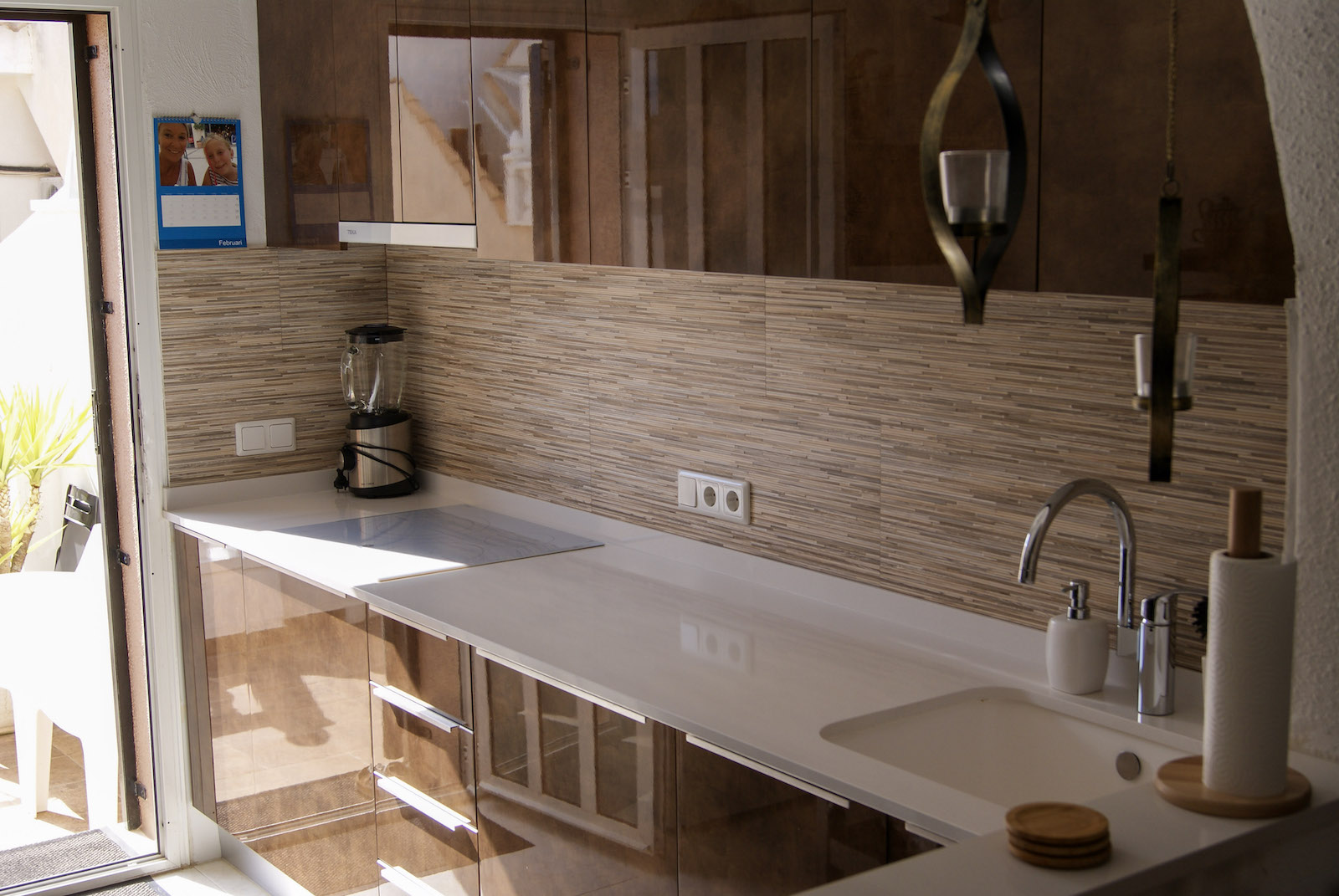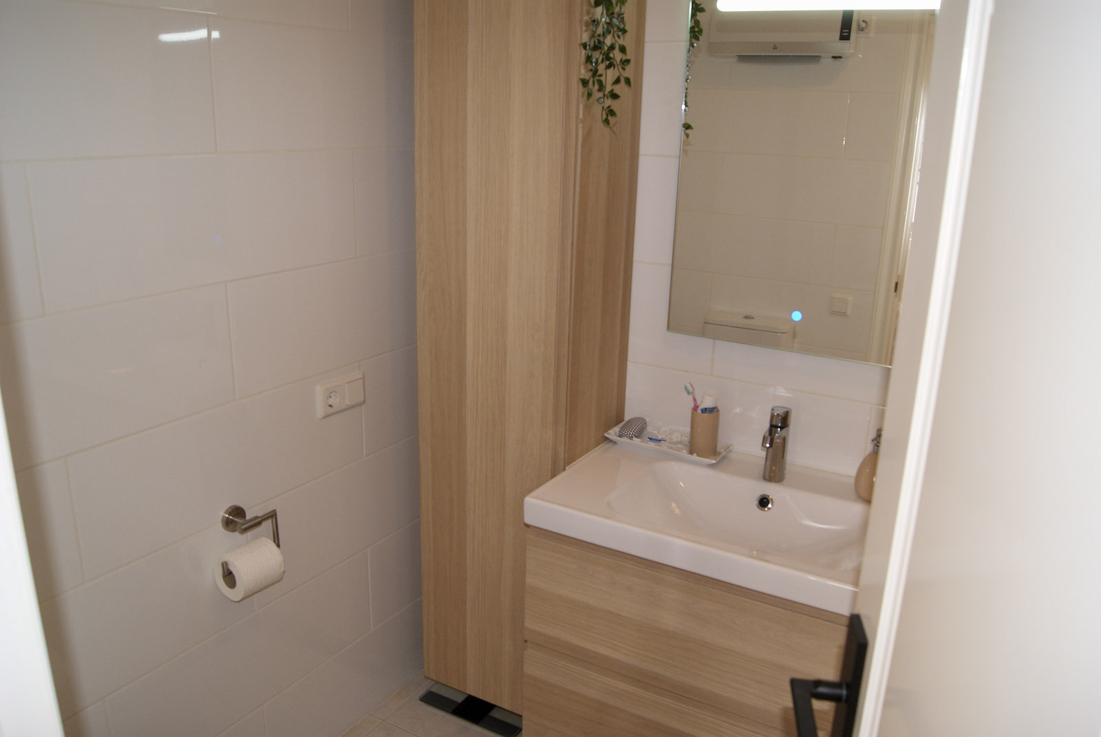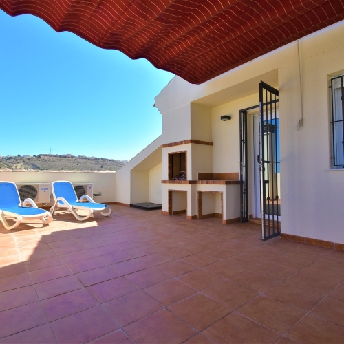 In this newly renovated house you will find a kitchen, 1 living room, 2 bathrooms, and 2 bedrooms. From the street you enter a little environment covered with stones, from there you go up to a small terrace which is north facing. You enter the living room from the terrace, from which there is access to the kitchen, and 2 rooms. Each room has direct access to a shower / WC. Through the kitchen you will find a south-facing terrace with a staircase up to the solarium. A nice large solarium with installed light.