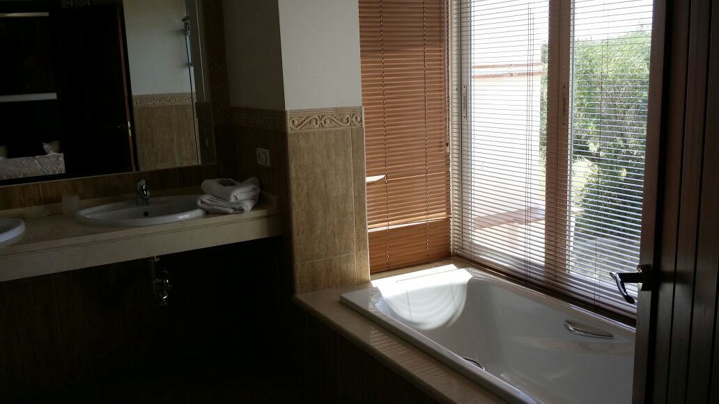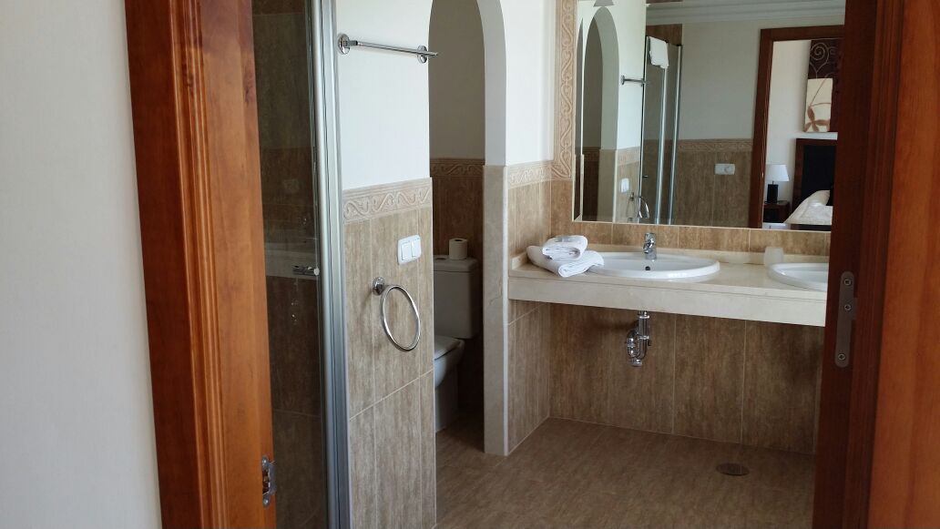 First floor with utility cupboard with washing machine and tumble drier; master bedroom with build in and fitted wardrobe; with terrace and en-suite bathroom with walk-in shower; second bedroom with en-suite shower room, picture balcony and dressing area.