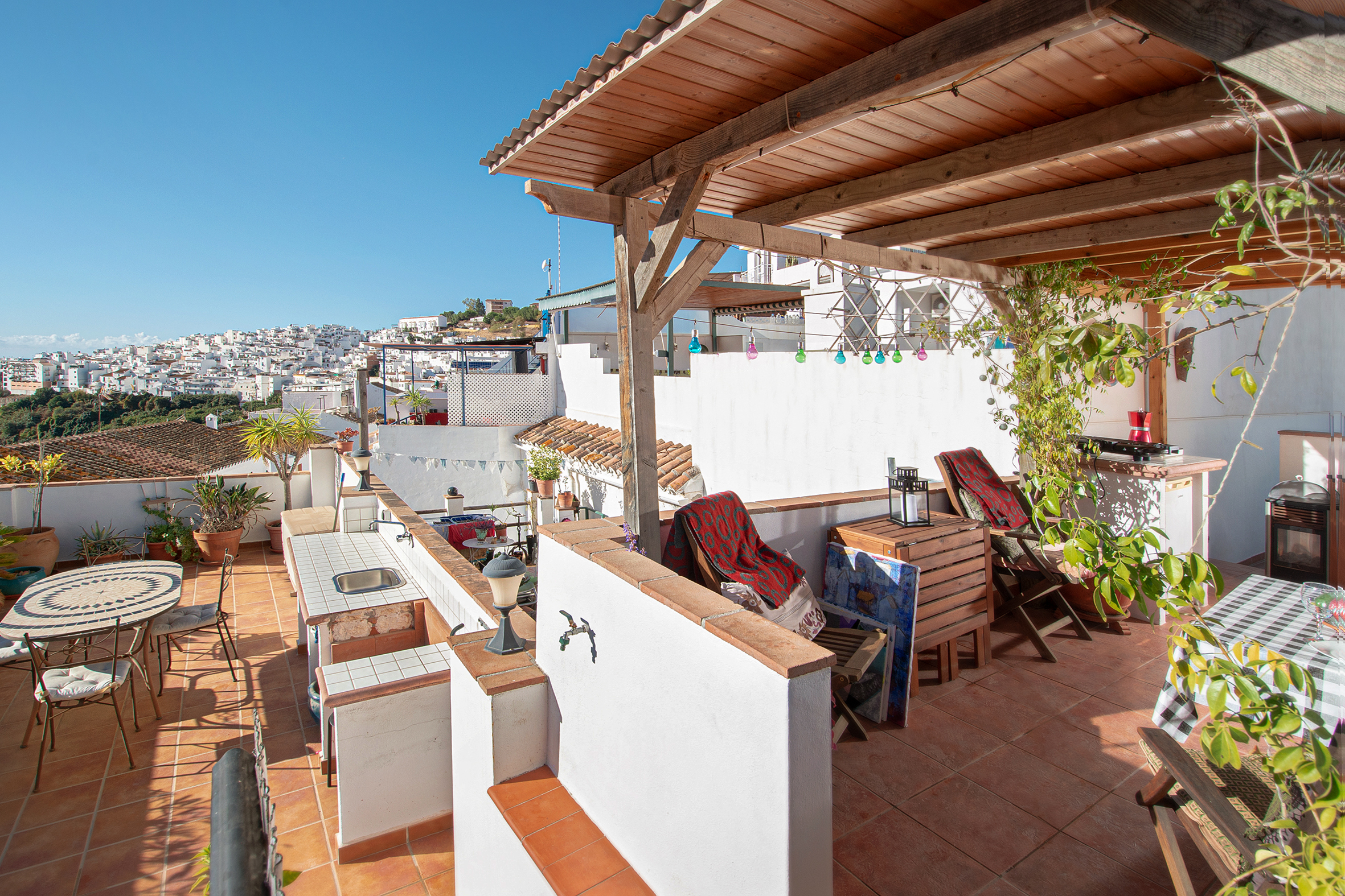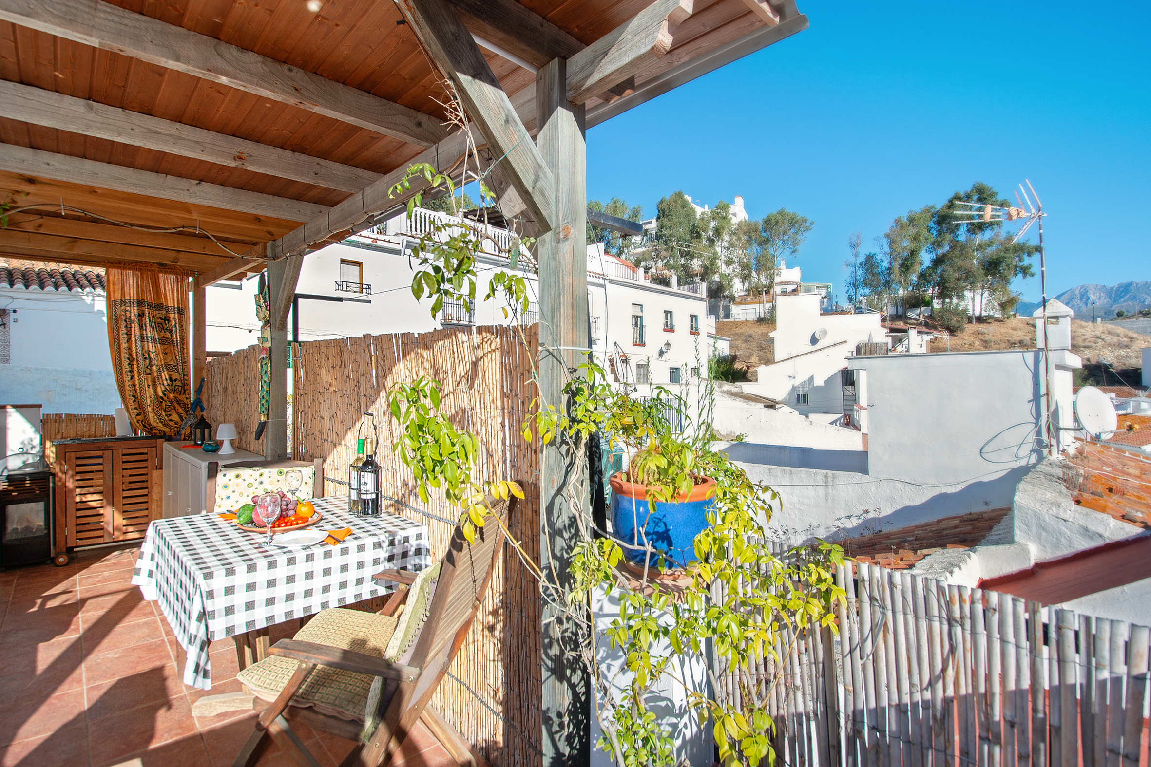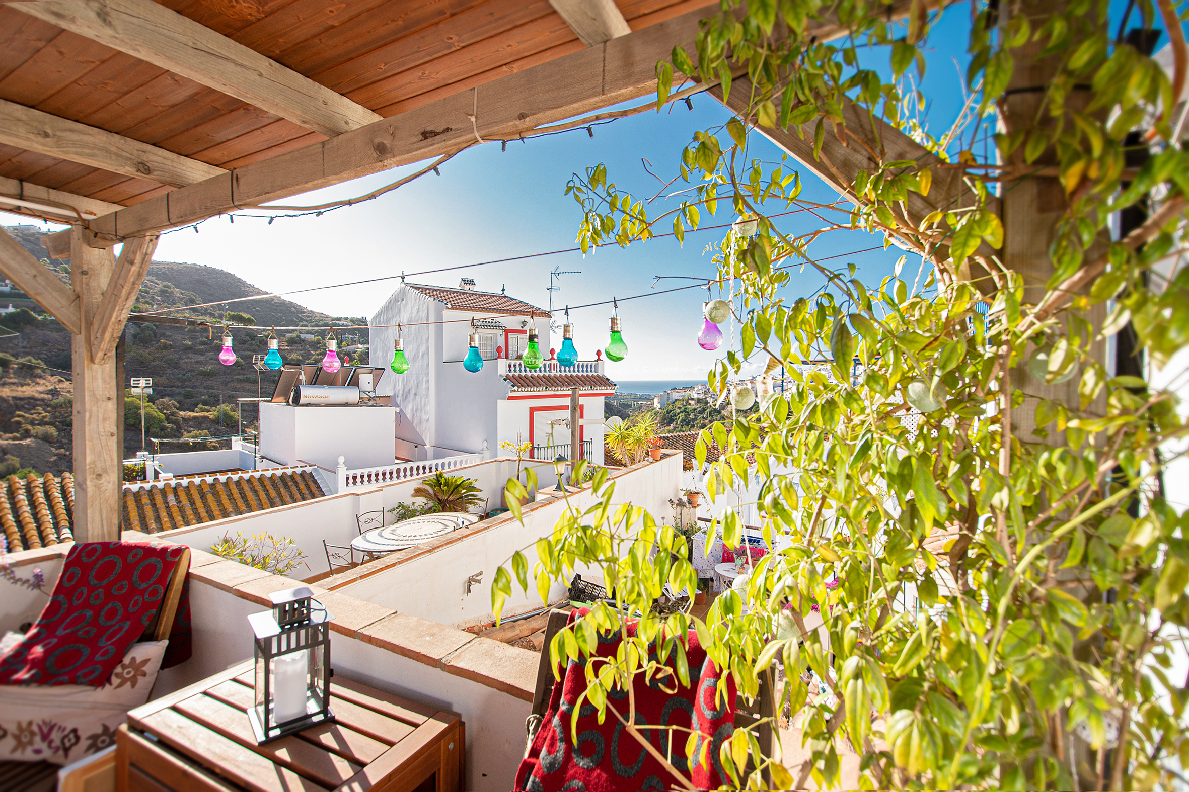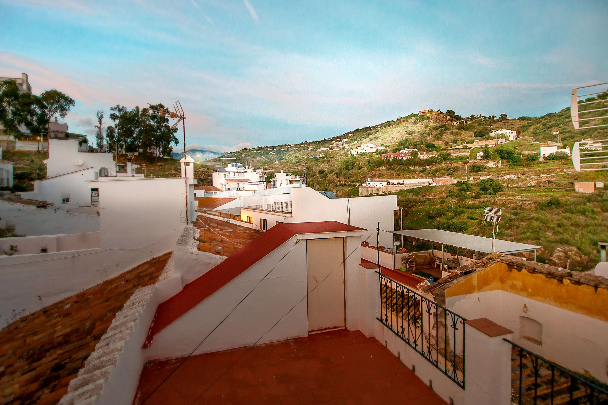 There are two back doors leading up to the two terraces, one down through the kitchen and the other on the first floor through a bedroom. From the terraces you have a fantastic view of the “Pueblo” and the sea. Sun is available from morning to evening! There is also parking outside as well as a parking garage with free spaces near the house.