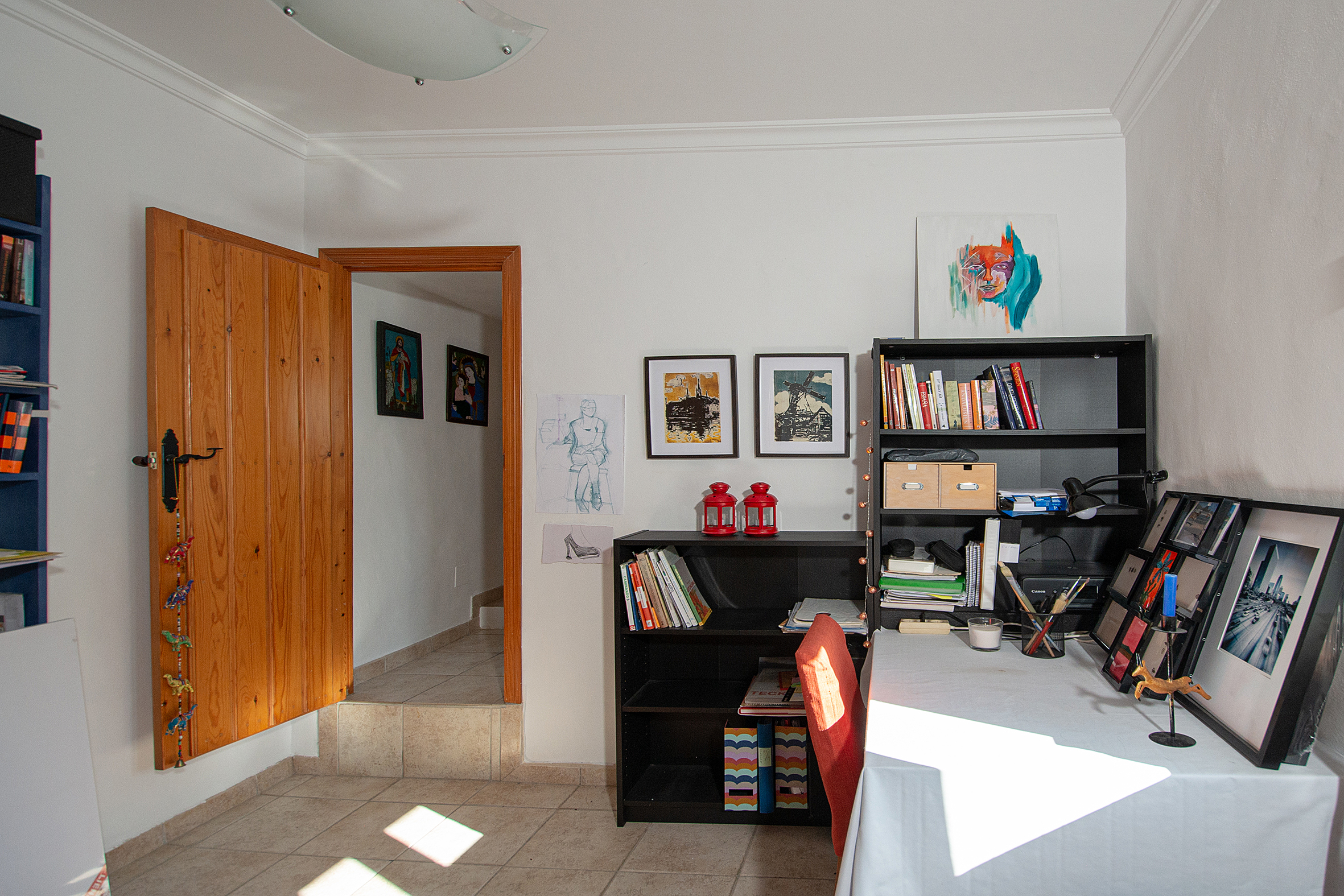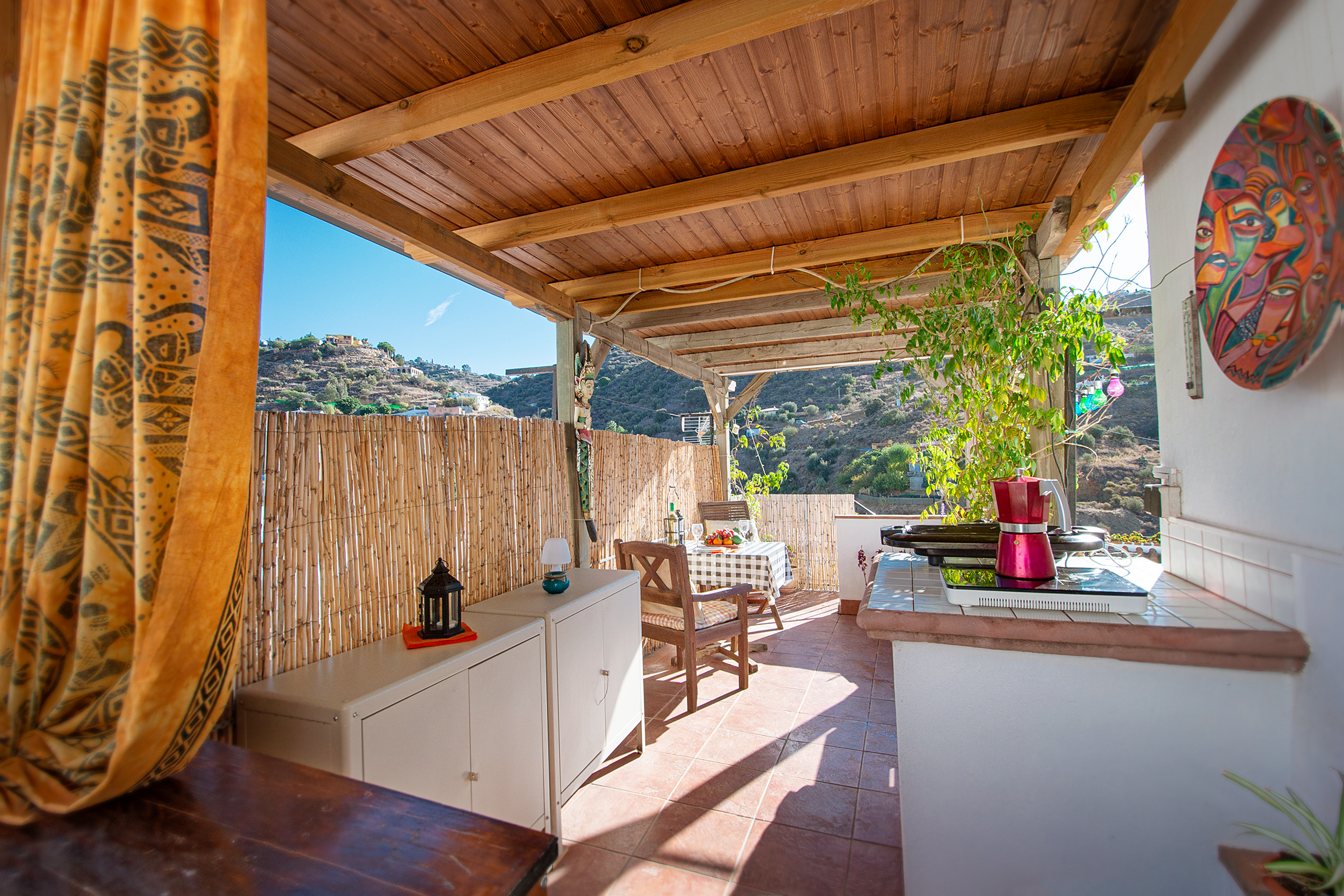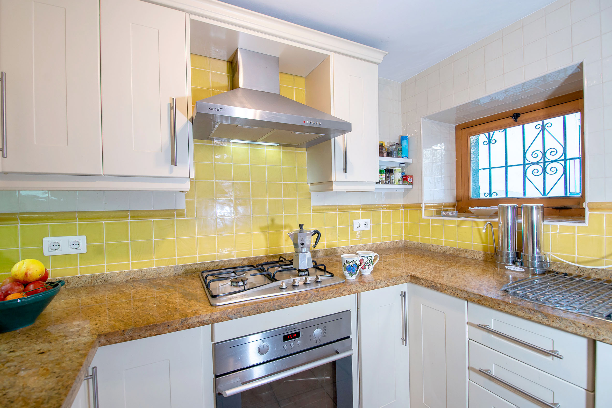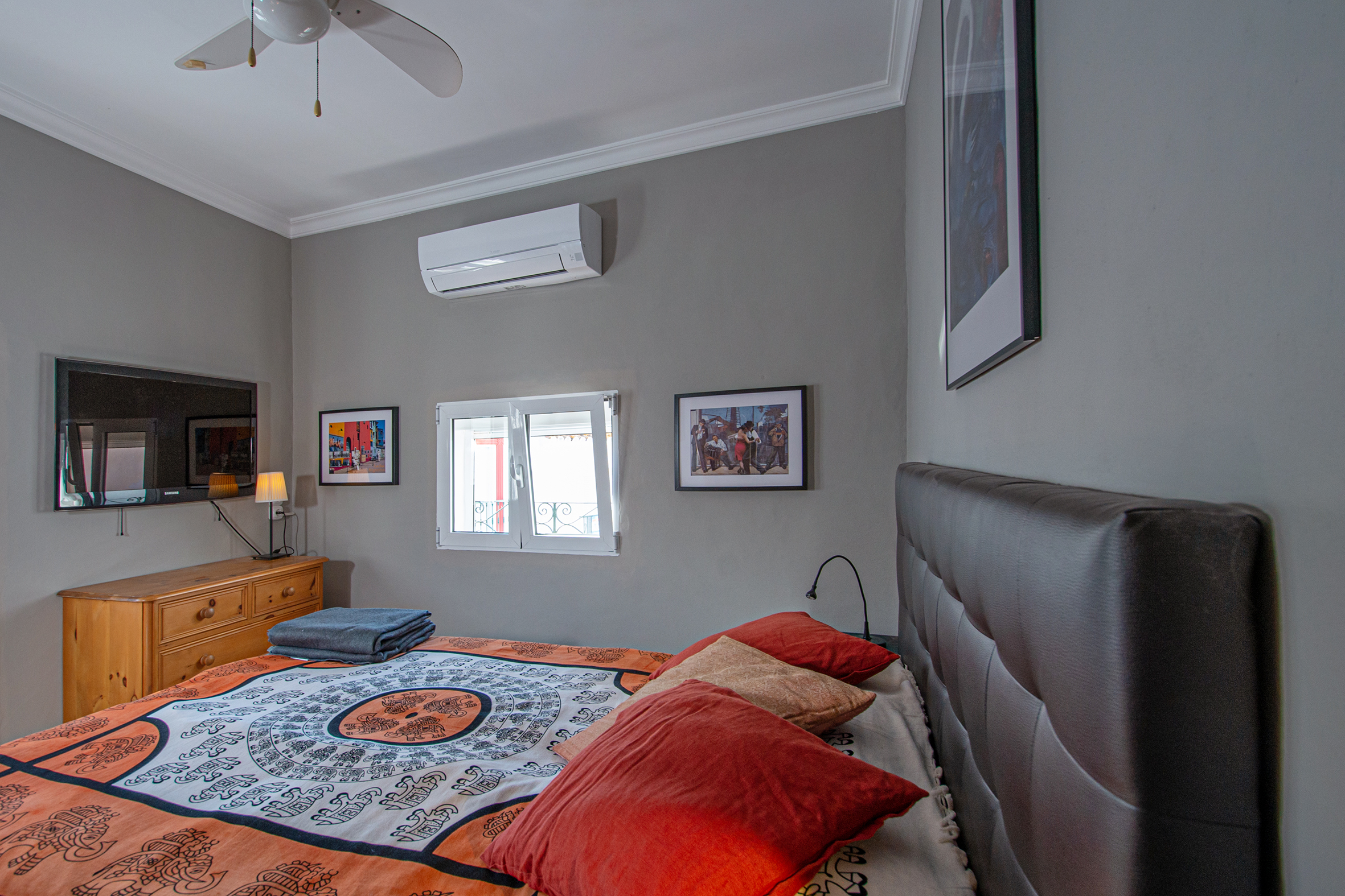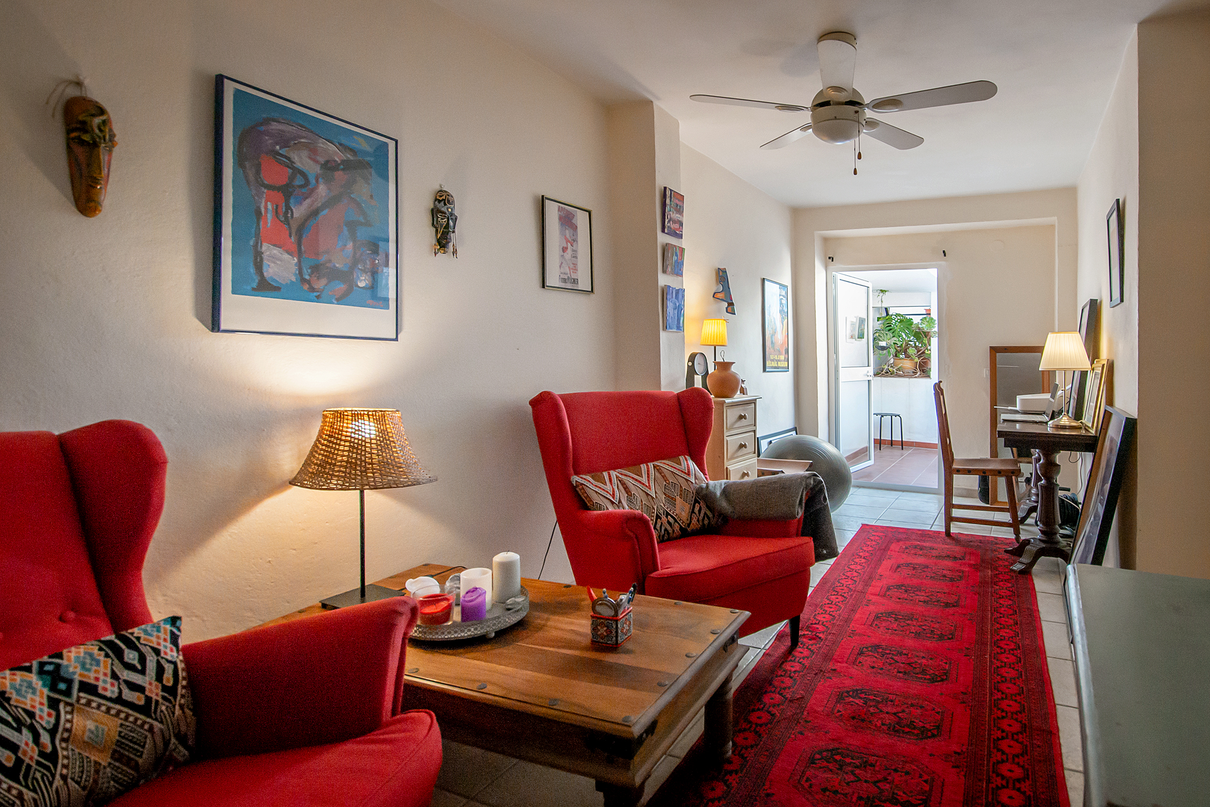 There are two back doors leading up to the two terraces, one down through the kitchen and the other on the first floor through a bedroom. From the terraces you have a fantastic view of the “Pueblo” and the sea. Sun is available from morning to evening! There is also parking outside as well as a parking garage with free spaces near the house.