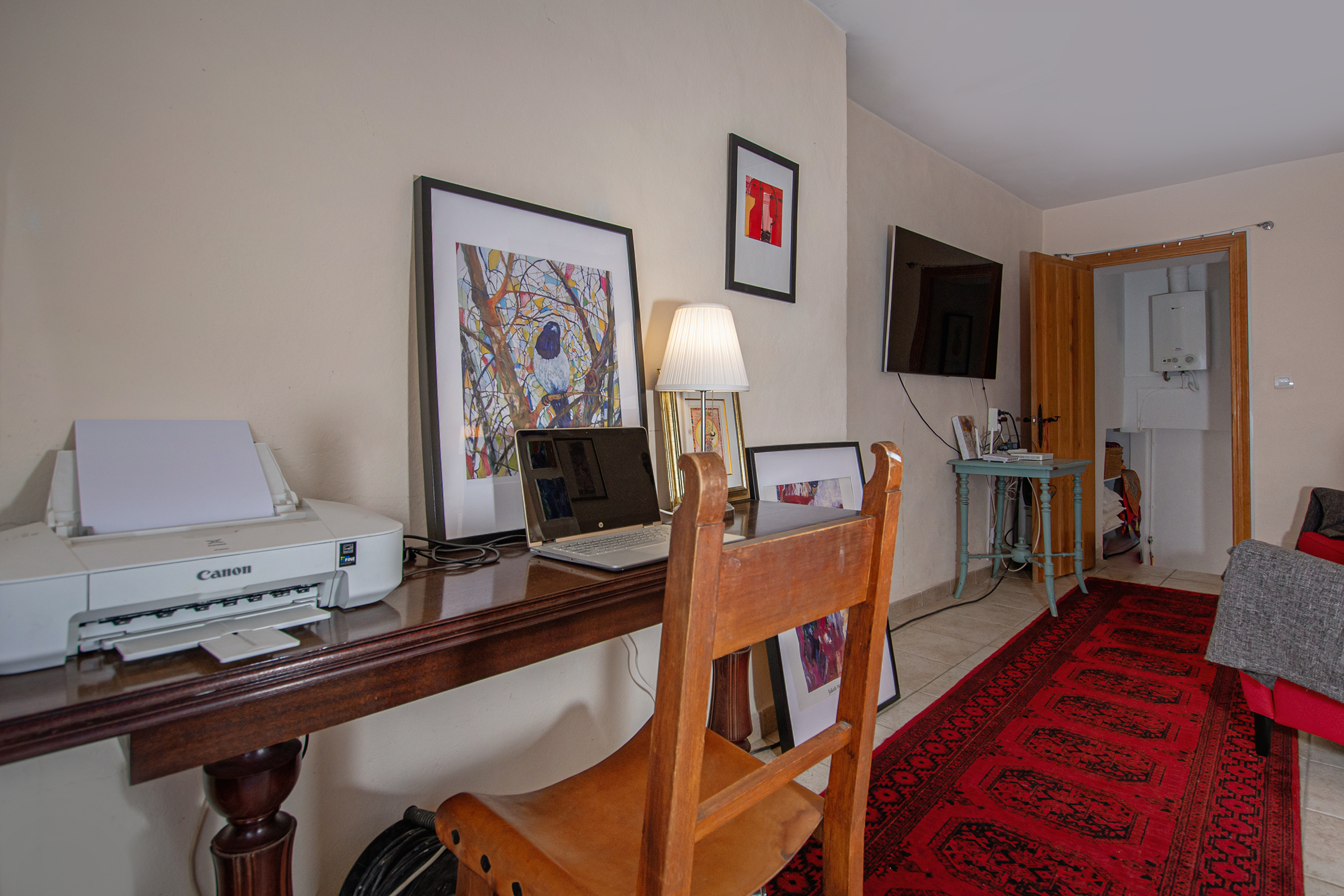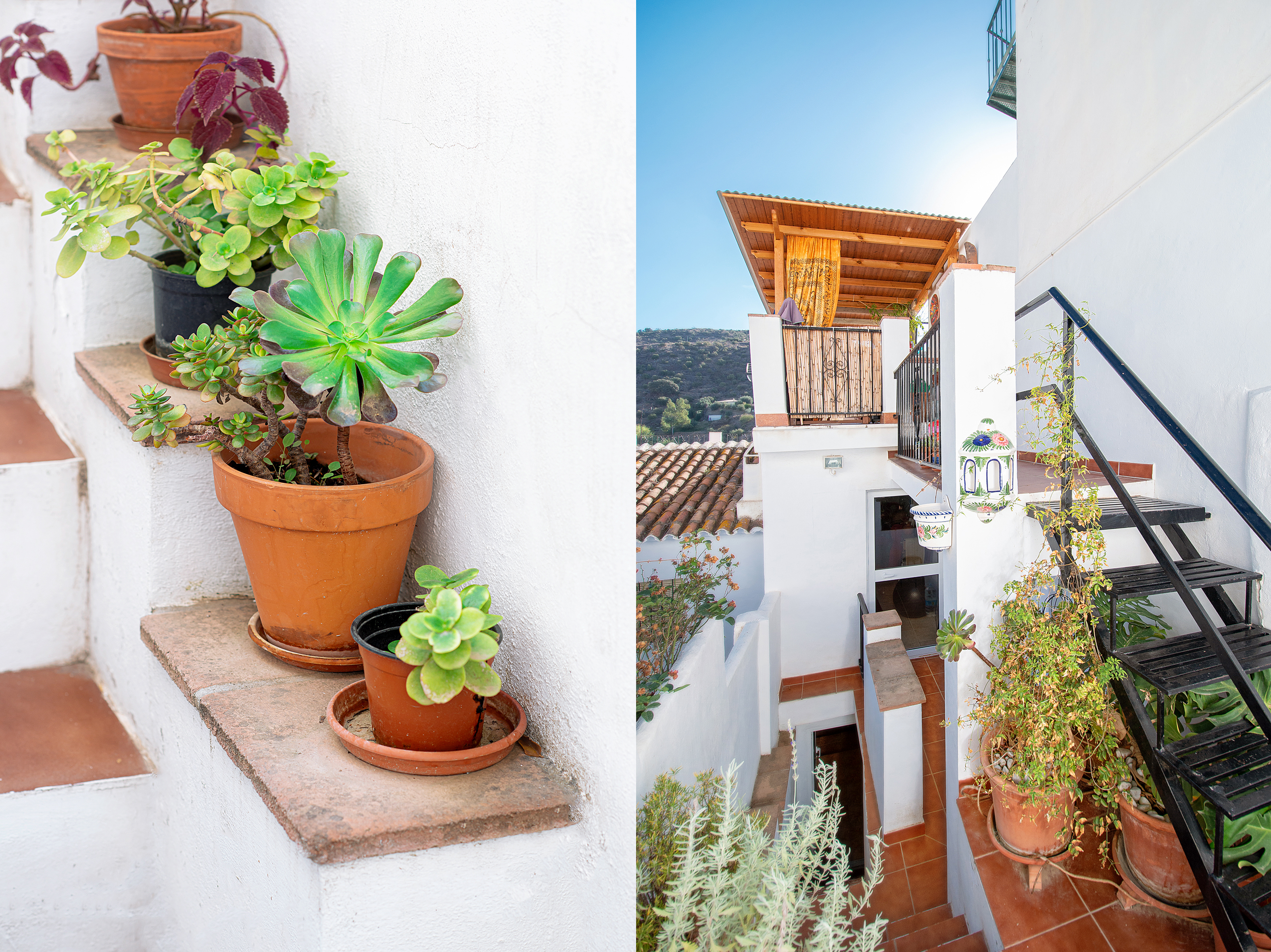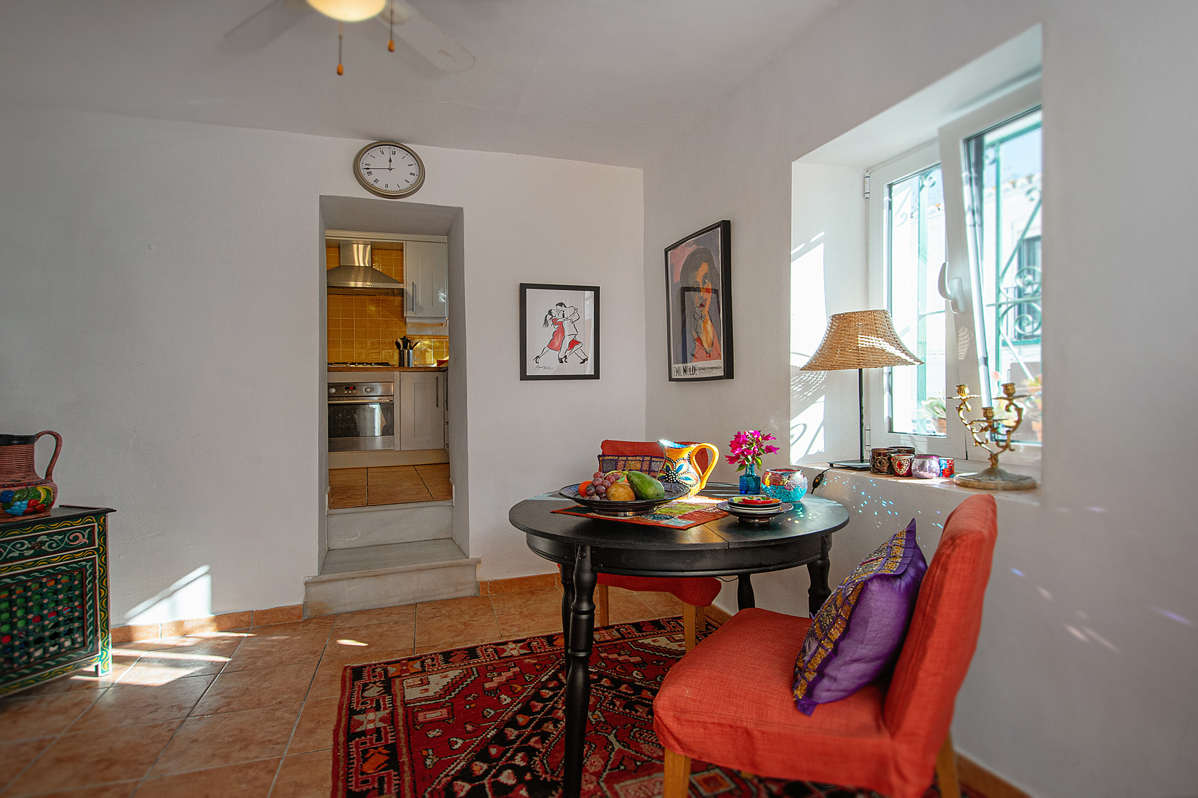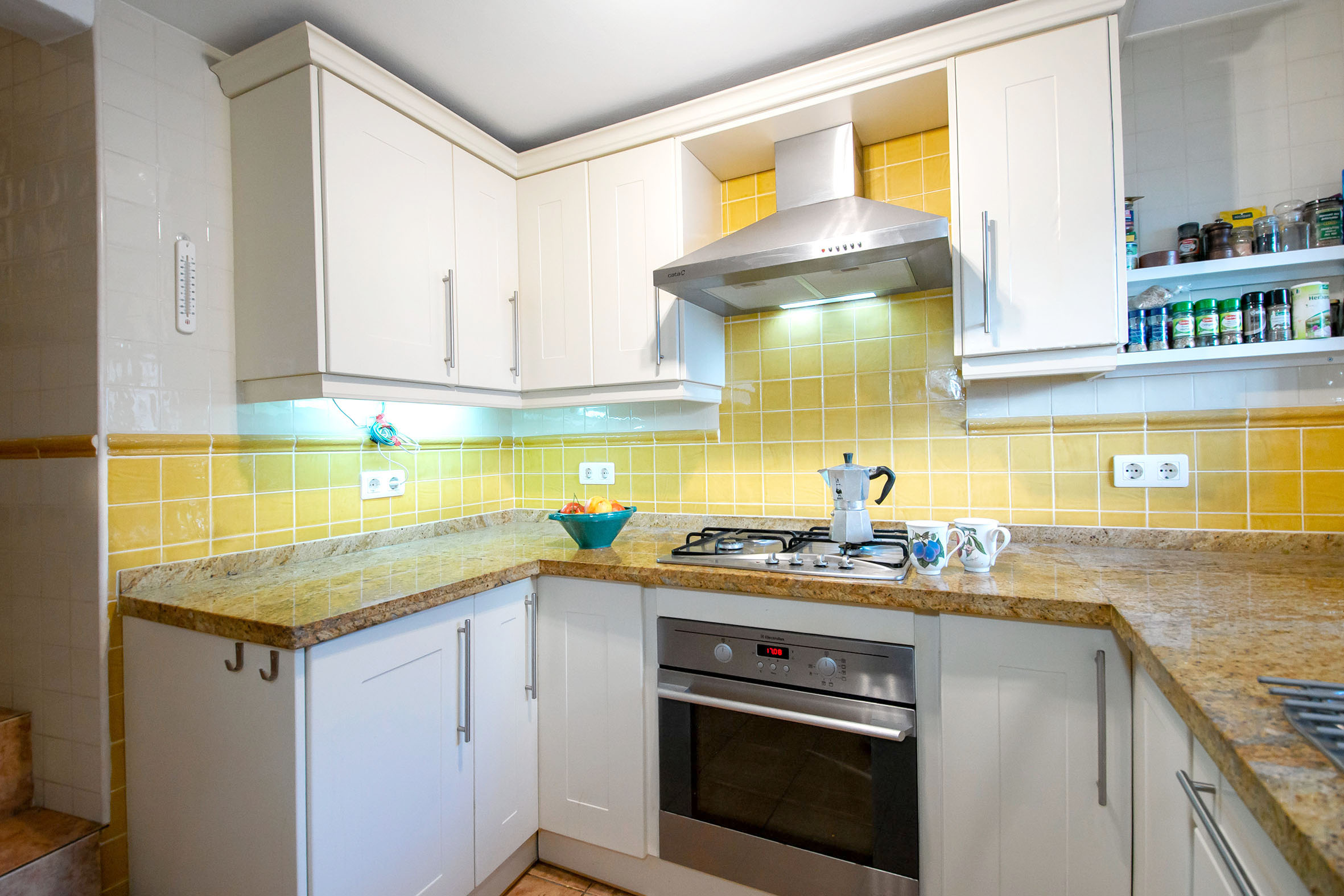 There are two back doors leading up to the two terraces, one down through the kitchen and the other on the first floor through a bedroom. From the terraces you have a fantastic view of the “Pueblo” and the sea. Sun is available from morning to evening! There is also parking outside as well as a parking garage with free spaces near the house.