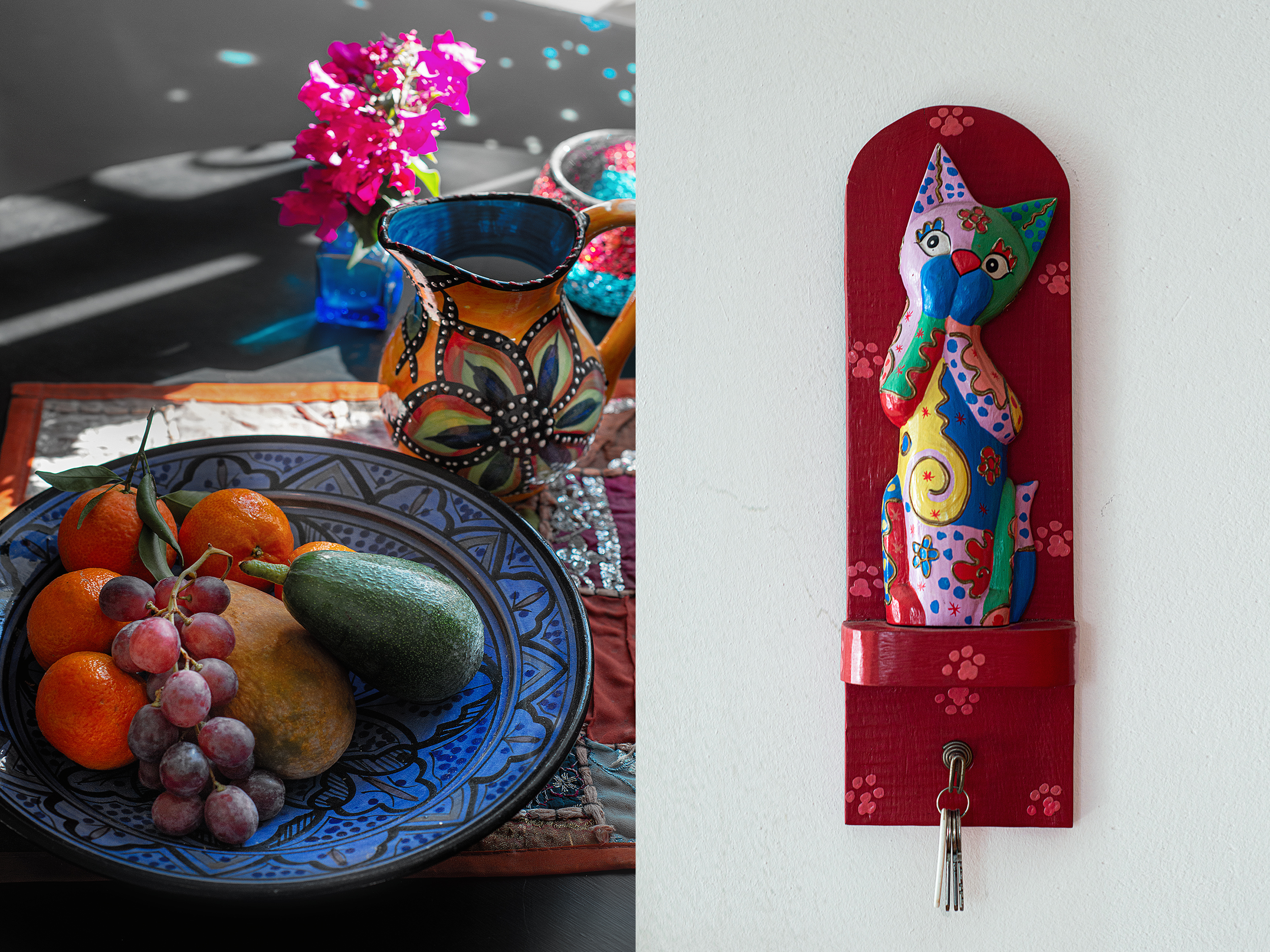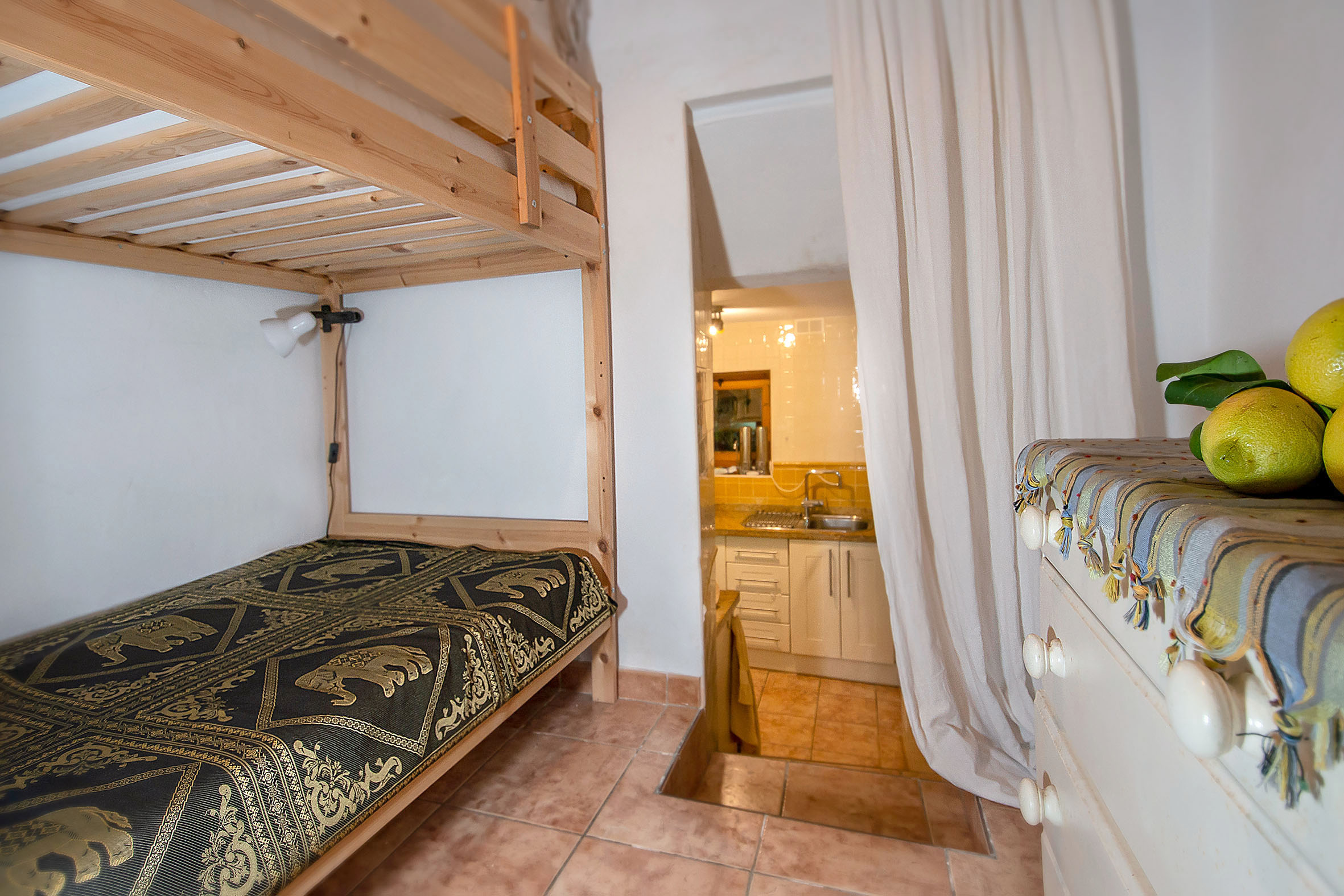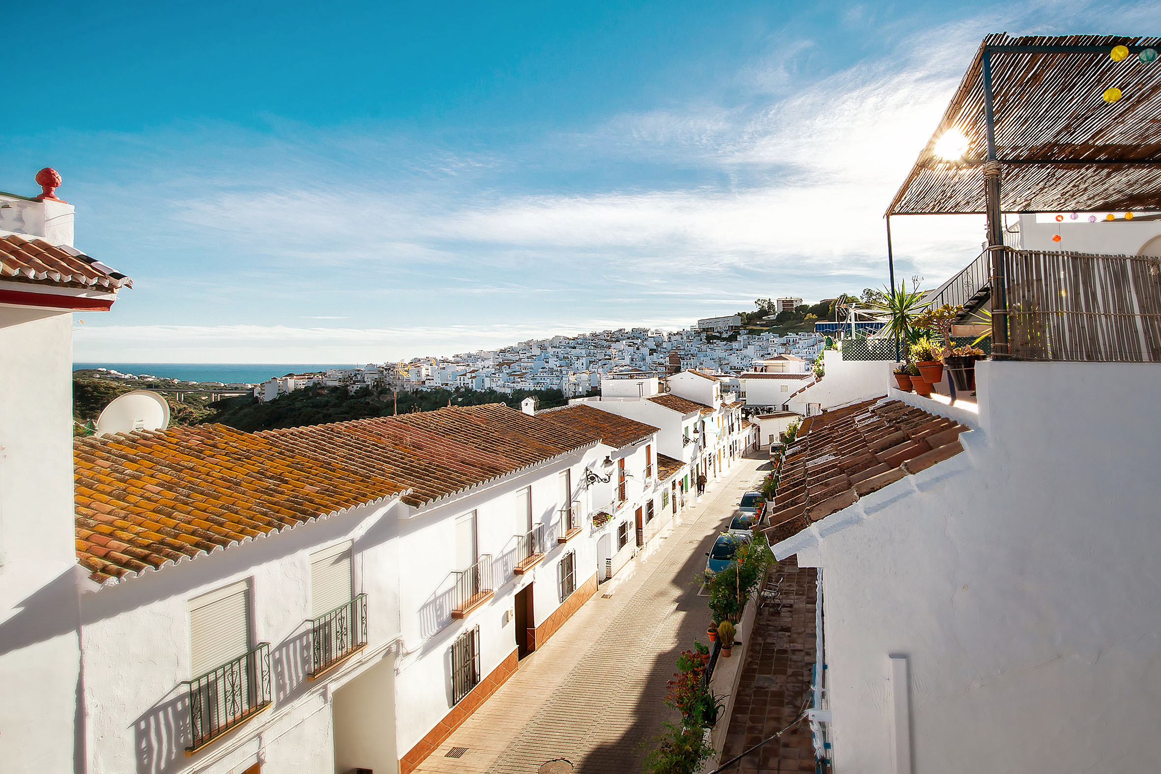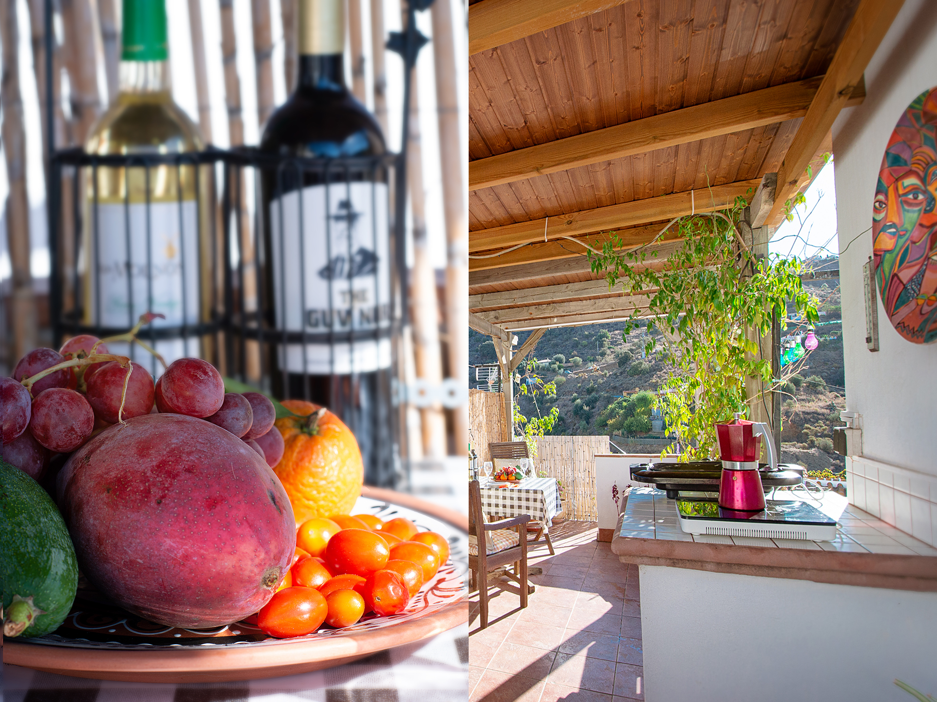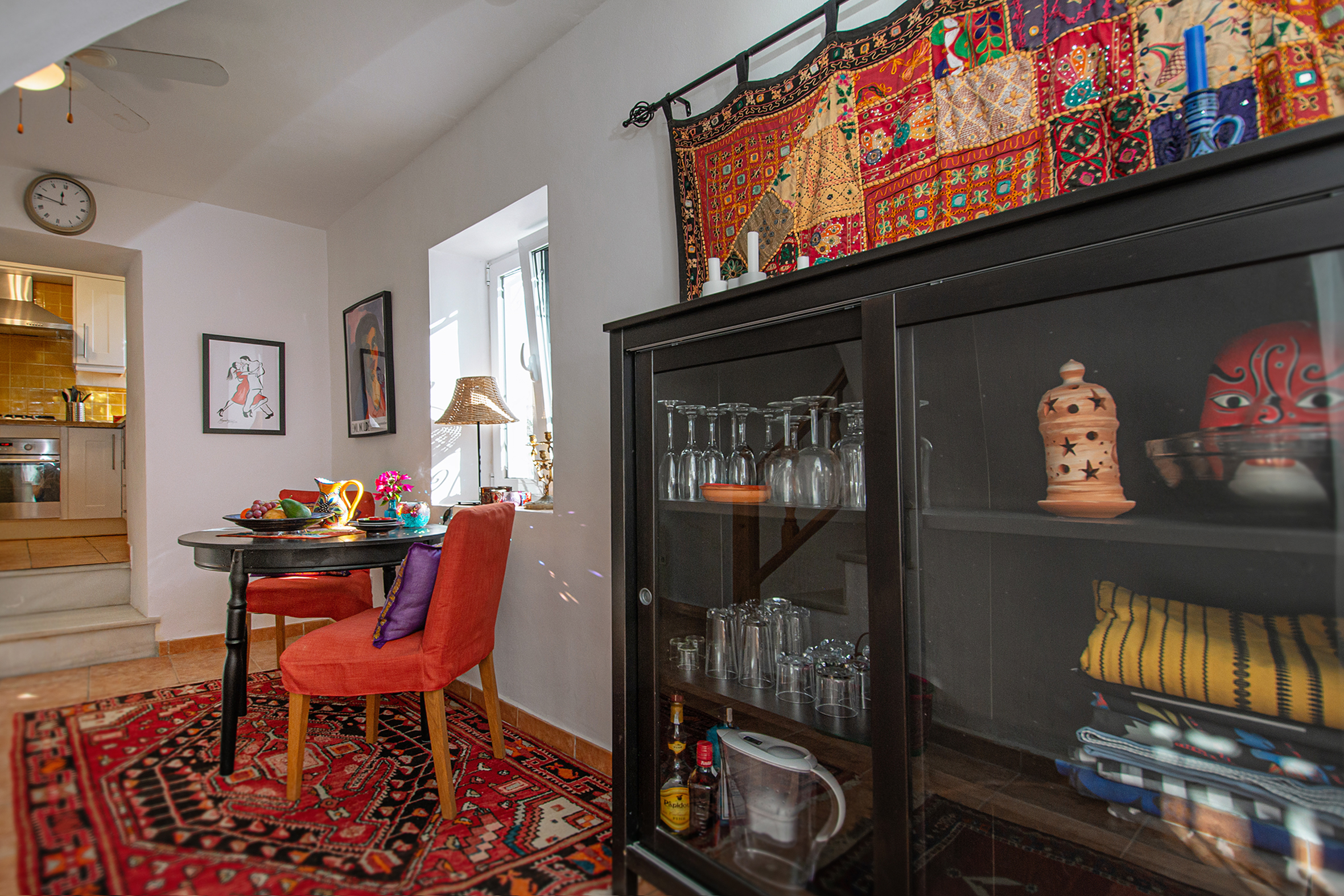 There are two back doors leading up to the two terraces, one down through the kitchen and the other on the first floor through a bedroom. From the terraces you have a fantastic view of the “Pueblo” and the sea. Sun is available from morning to evening! There is also parking outside as well as a parking garage with free spaces near the house.